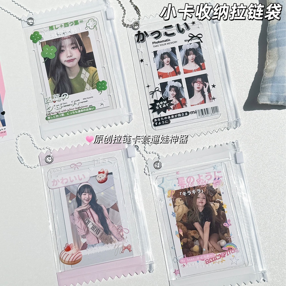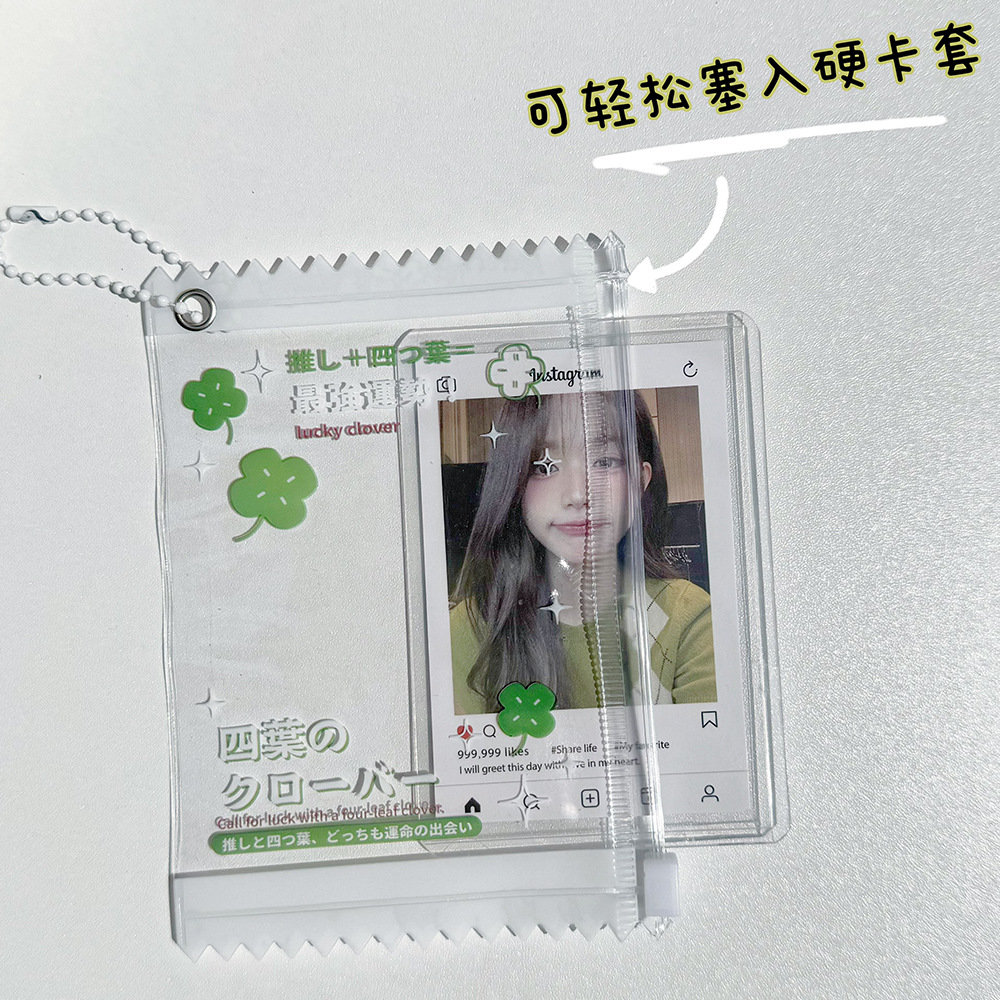 ins原创四叶草蛋糕3寸小卡拉链袋拍立得收纳吧唧袋谷子展示挂件卡