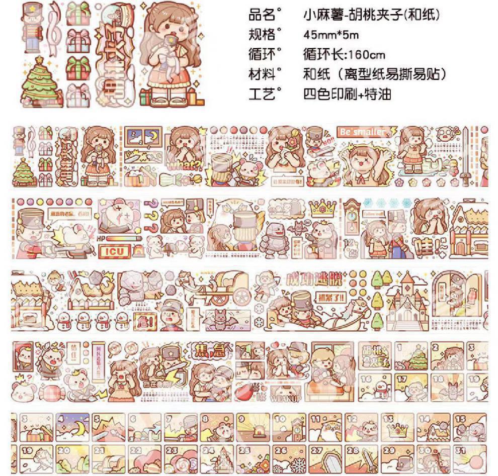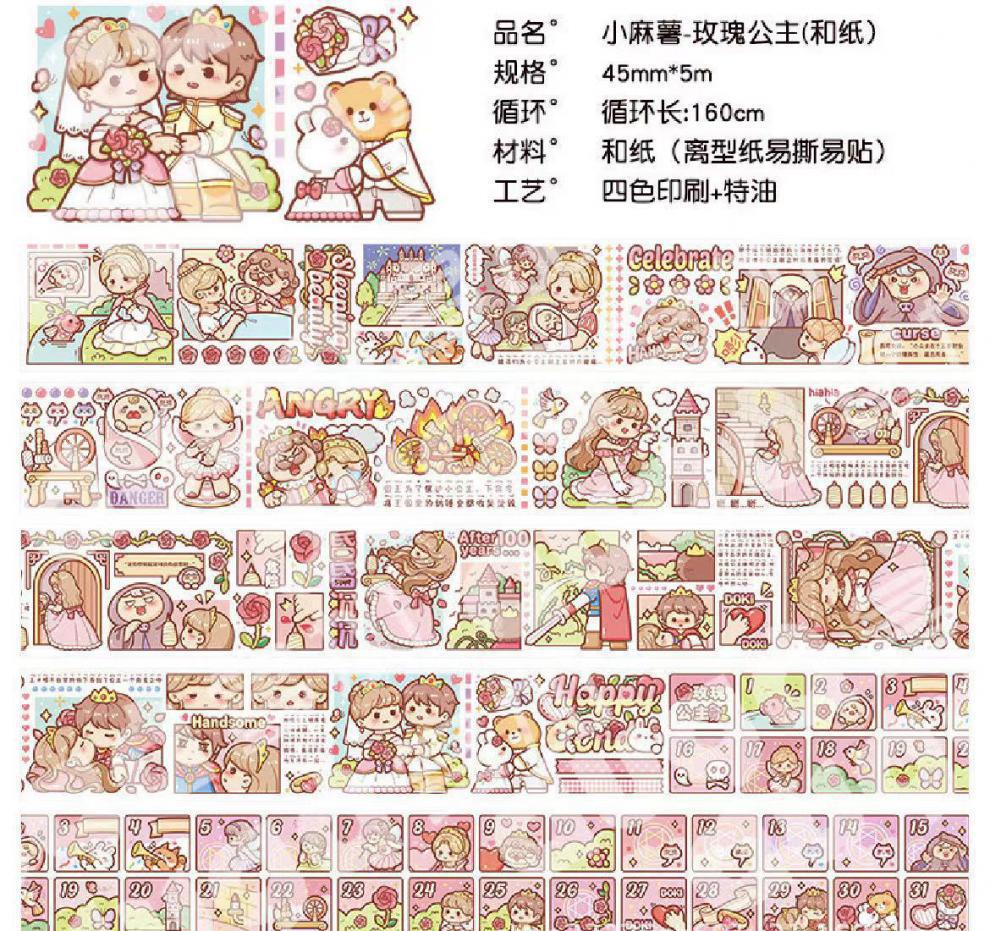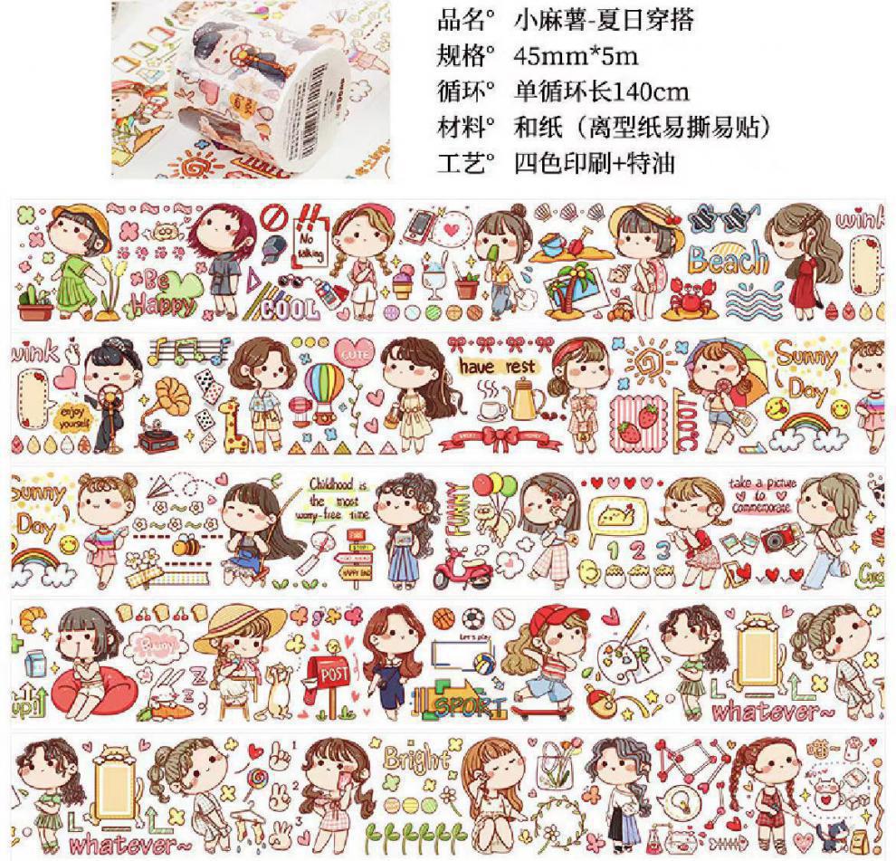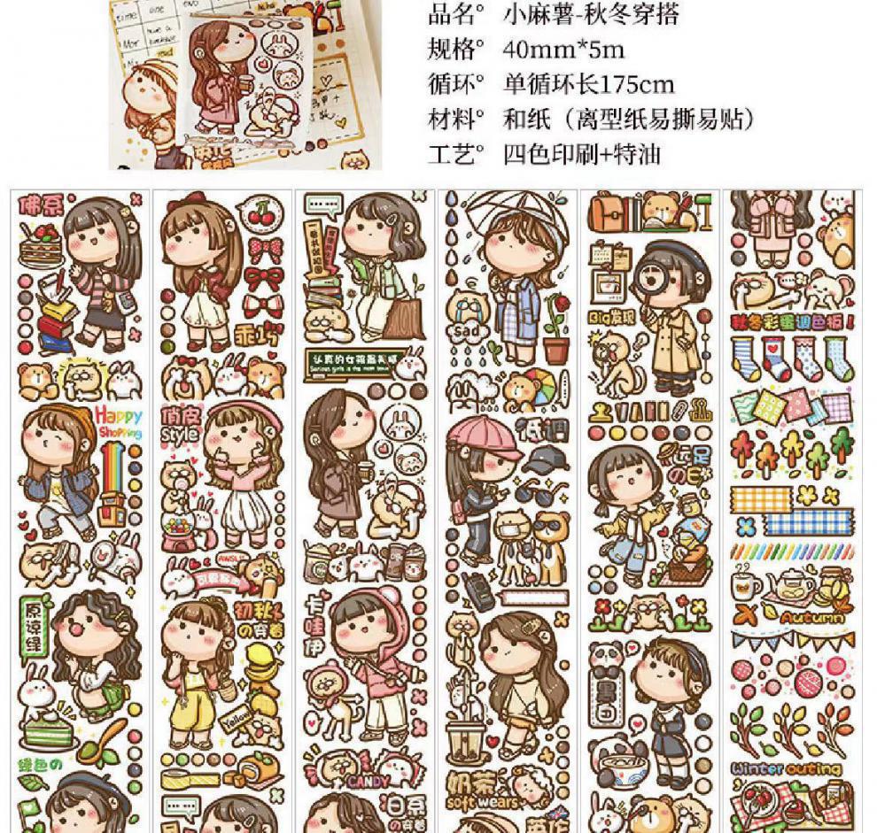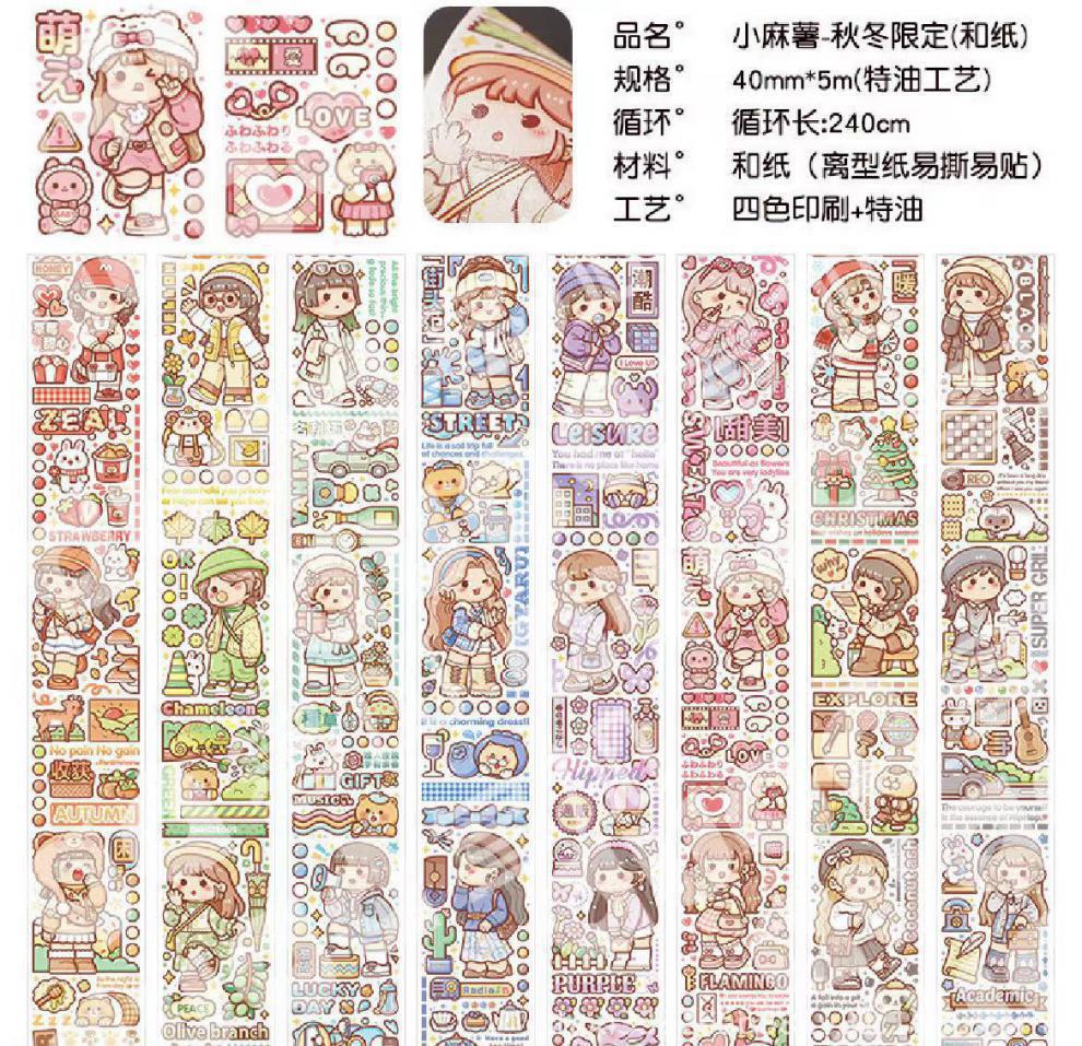 小麻薯胶带分装新品整循环卡通人物社团手账贴纸特油和纸手帐胶带