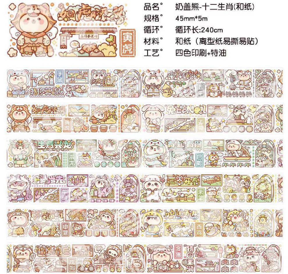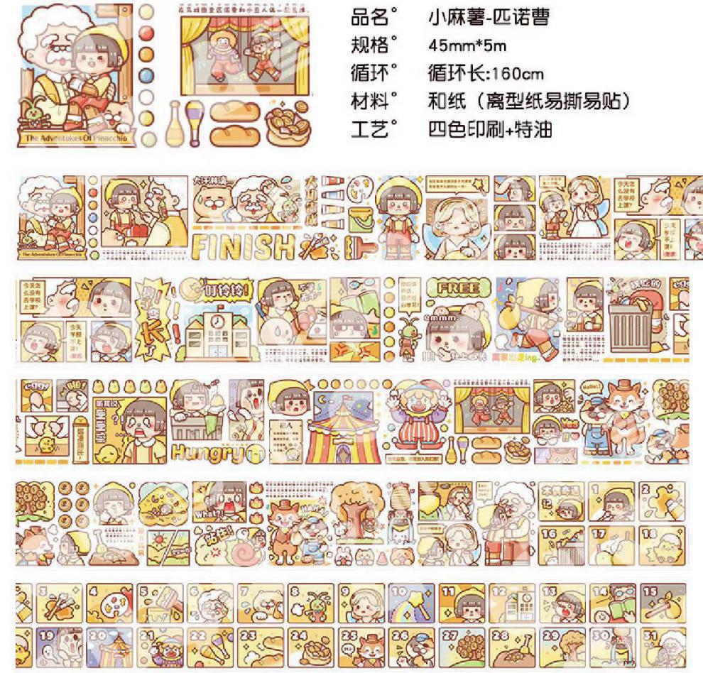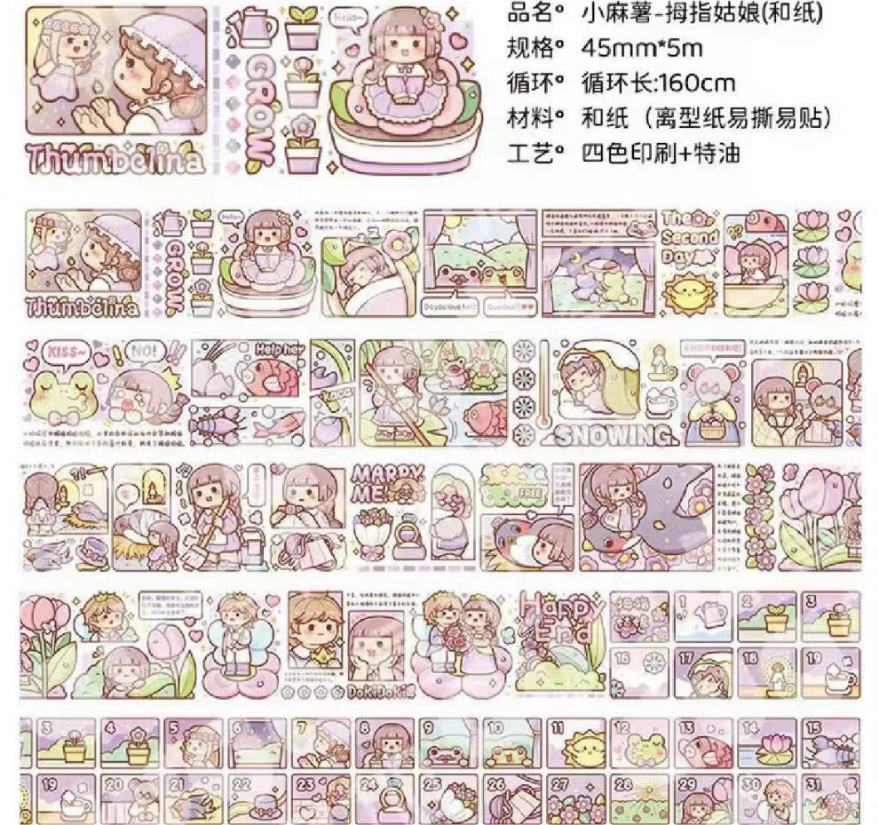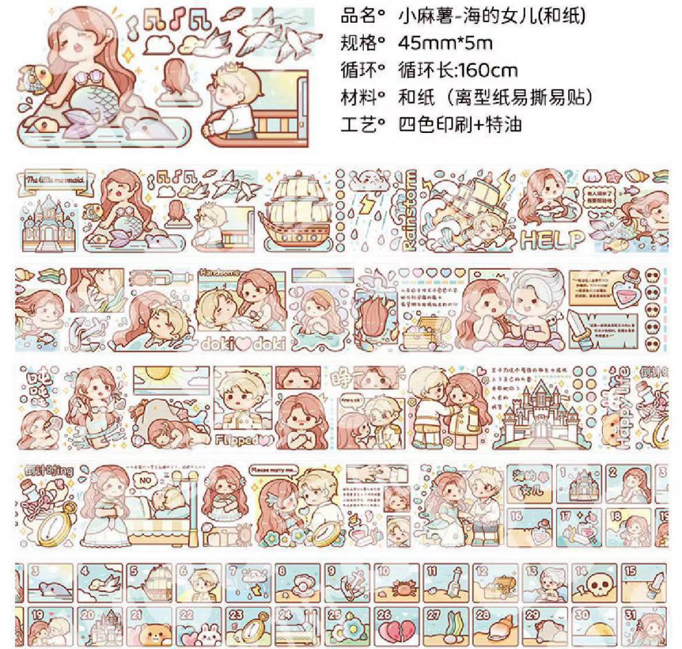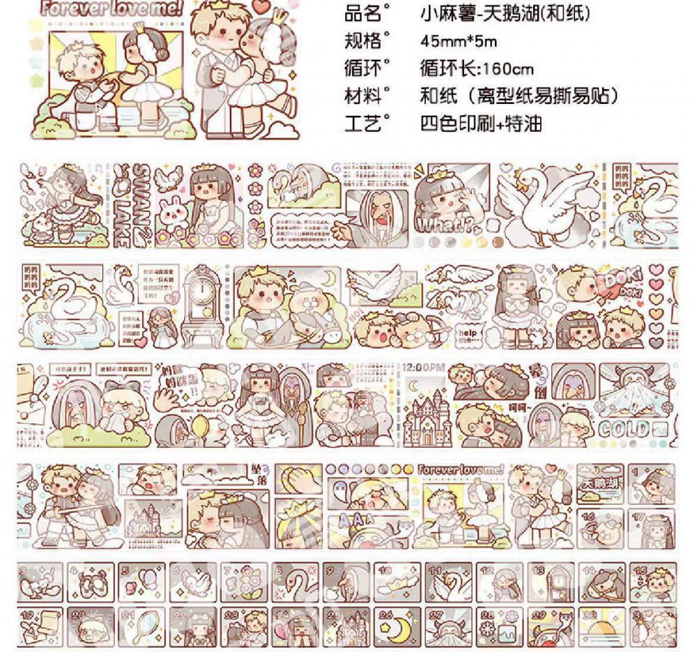 小麻薯胶带分装新品整循环卡通人物社团手账贴纸特油和纸手帐胶带