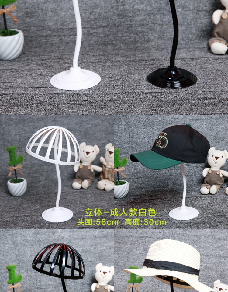 黑色成人帽架帽子帽托帽撑展示架货架卖场道具塑料模型支架白色