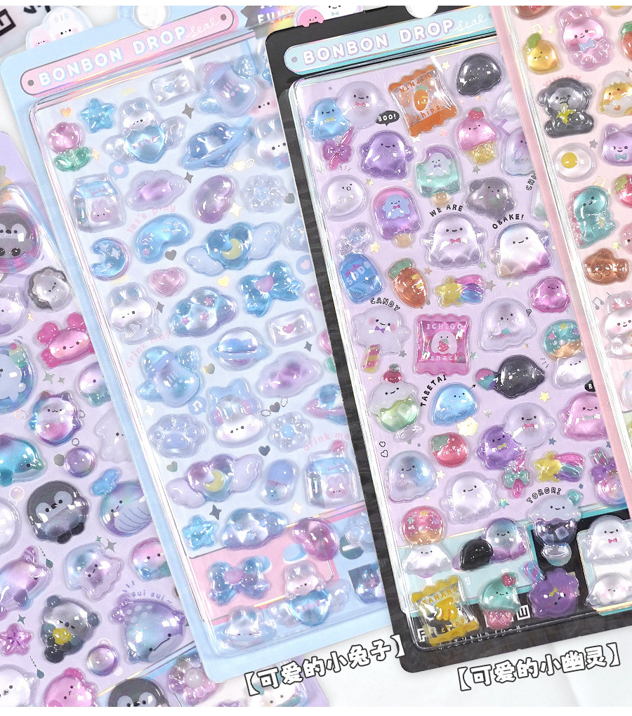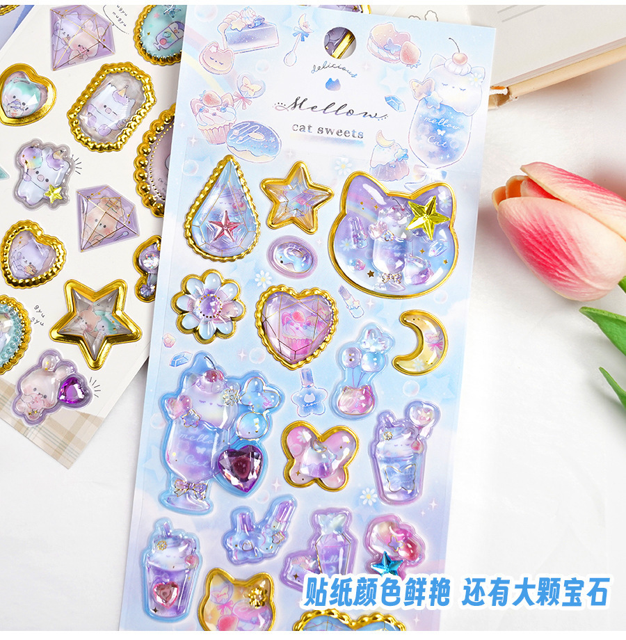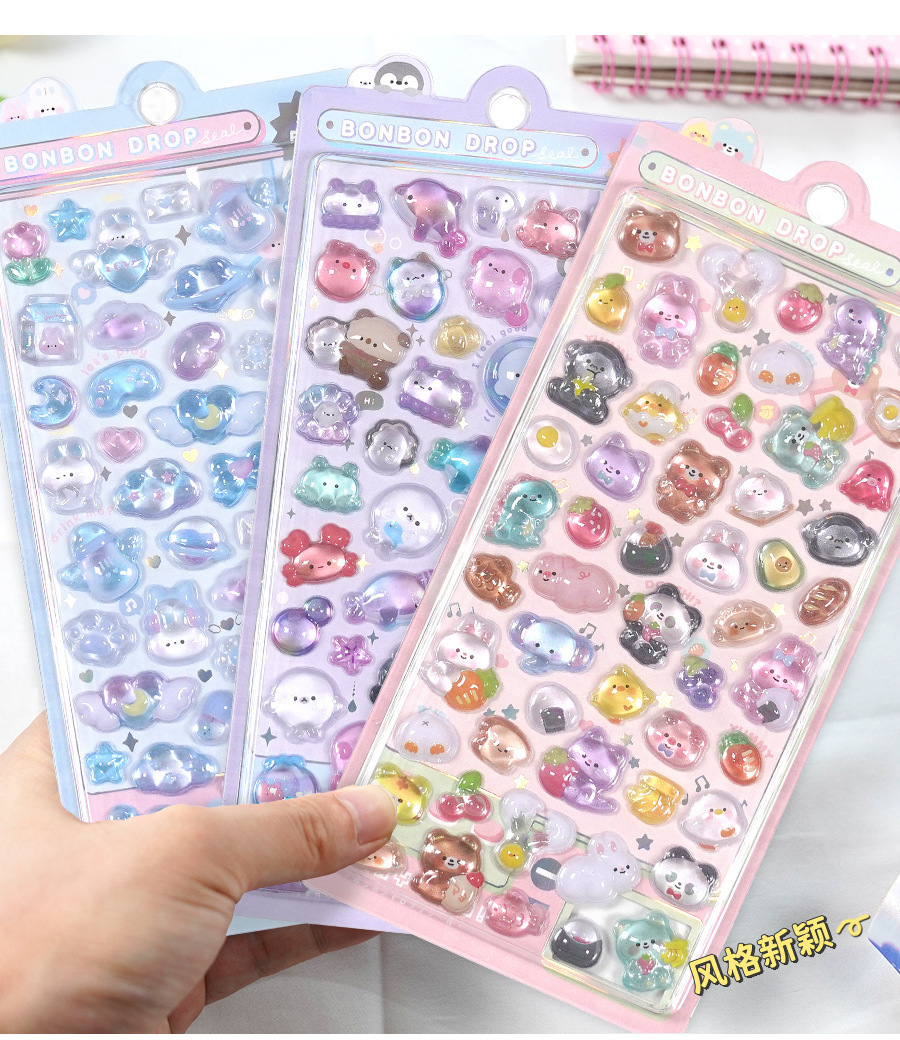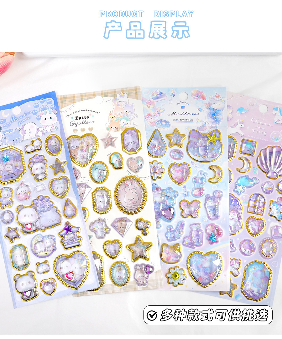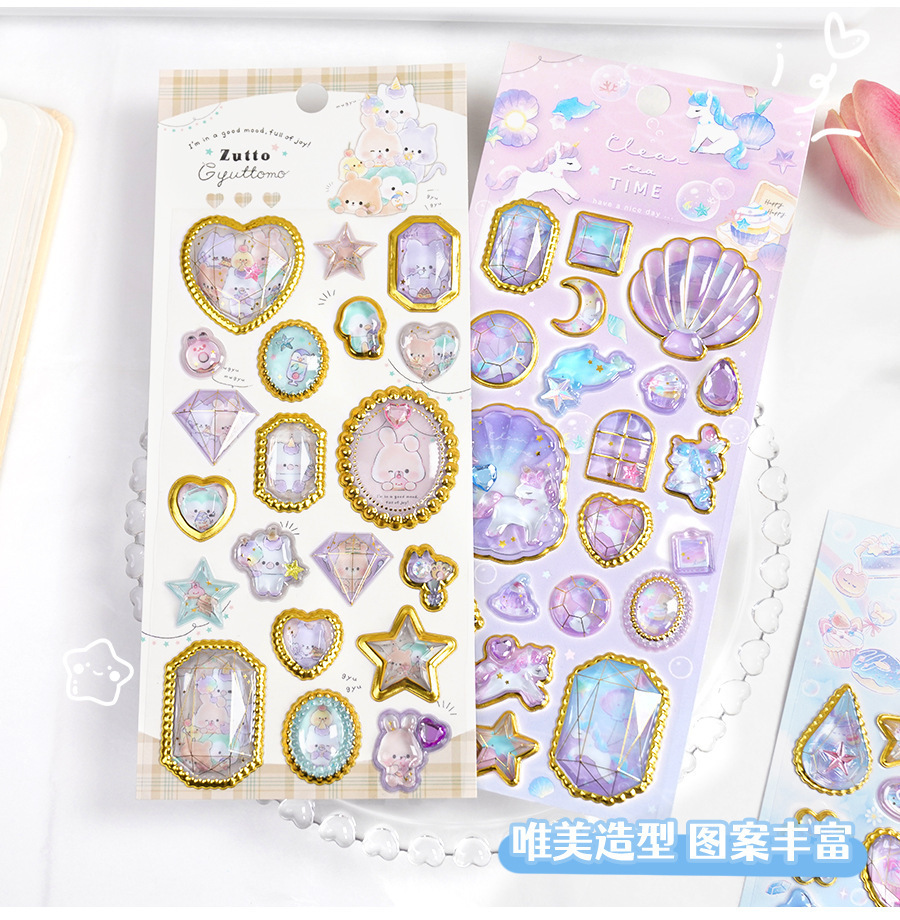 定制3d浮雕趣味贴立体水晶贴纸水晶钻石浮雕贴纸定制创意手账贴纸