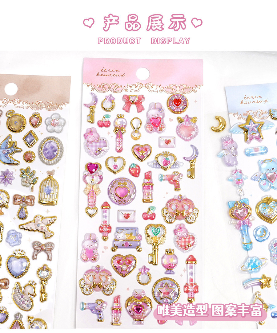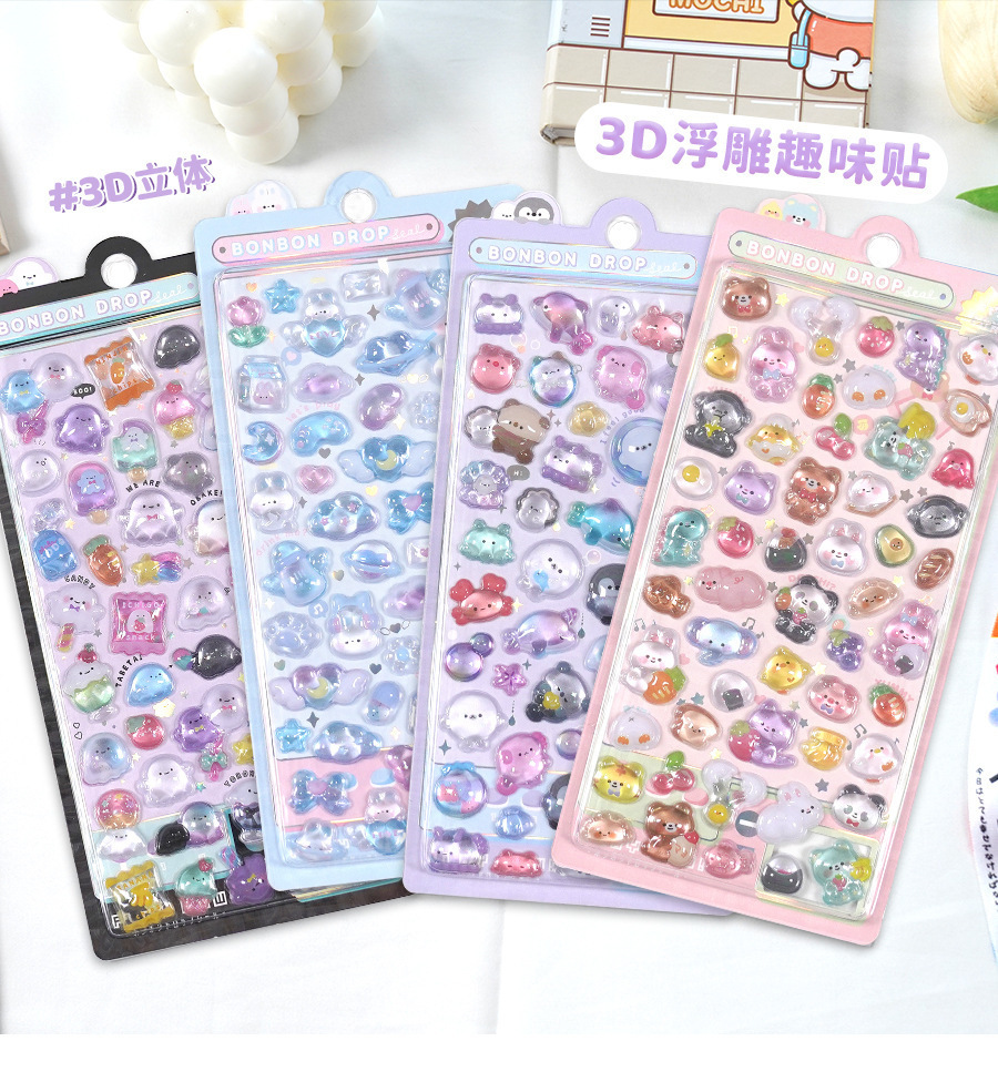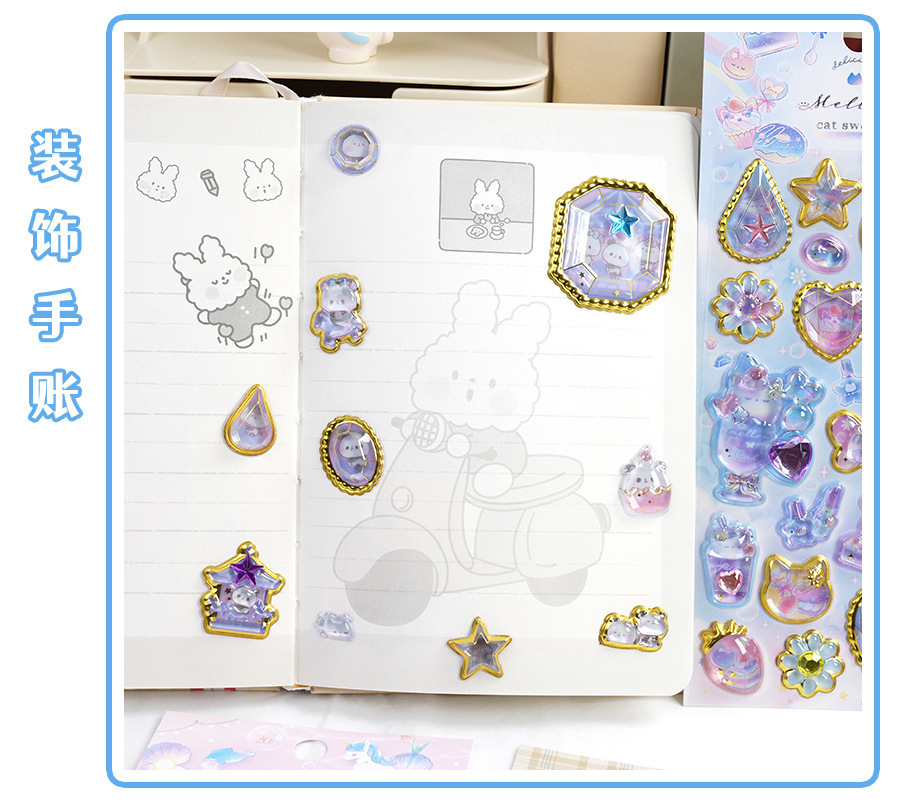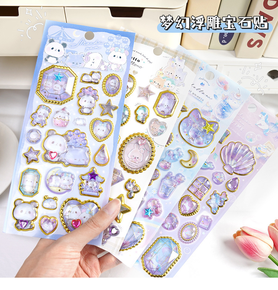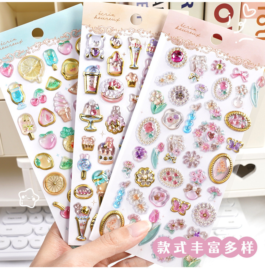 定制3d浮雕趣味贴立体水晶贴纸水晶钻石浮雕贴纸定制创意手账贴纸