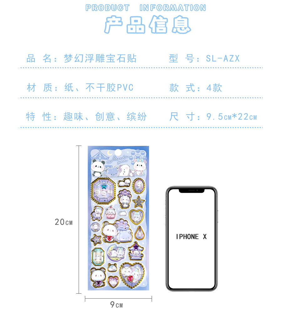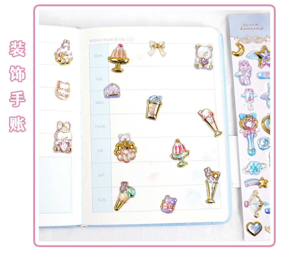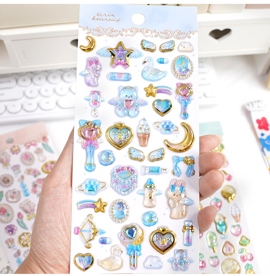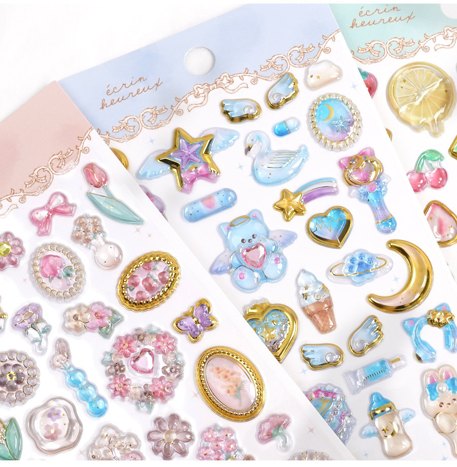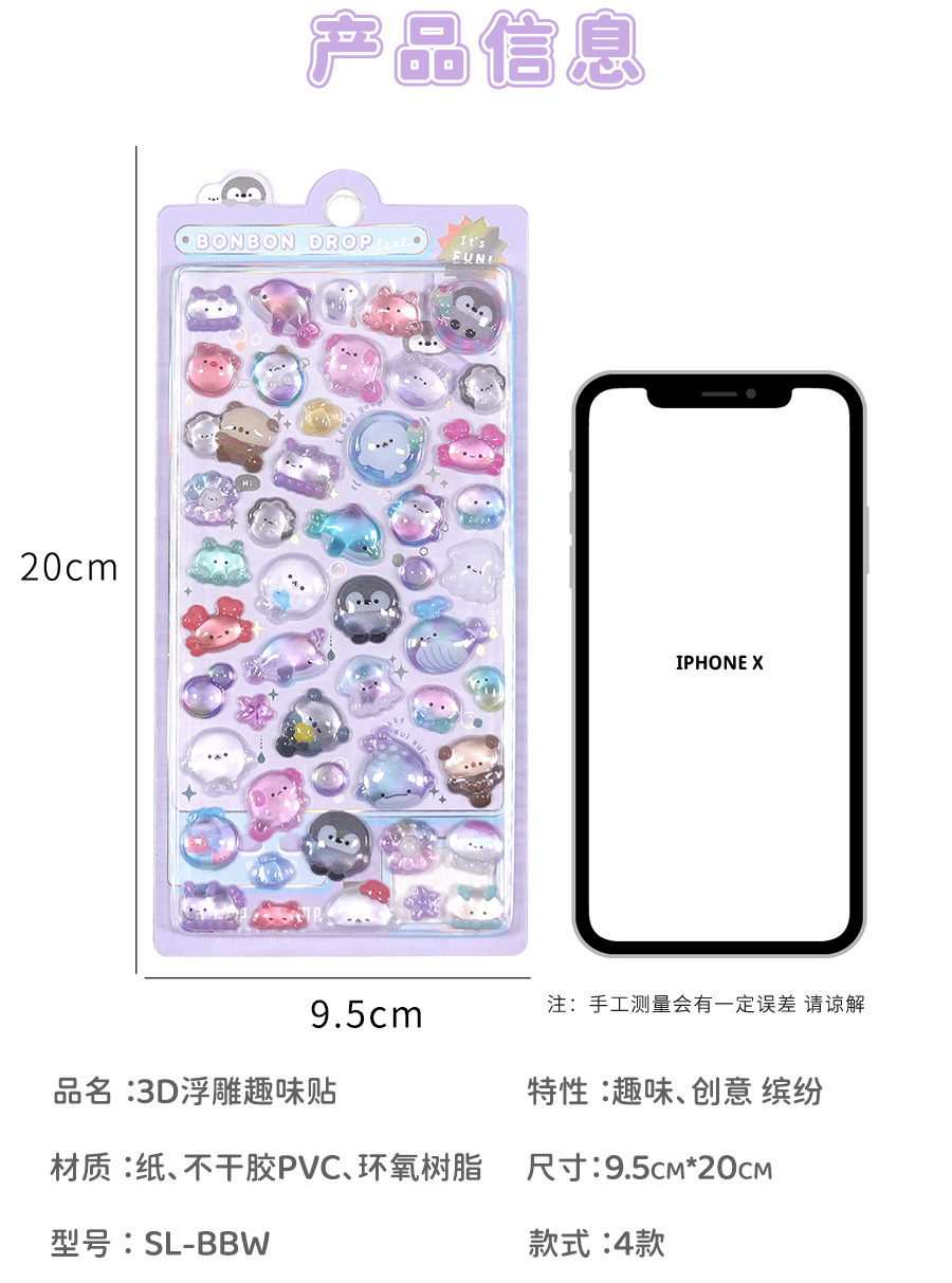 定制3d浮雕趣味贴立体水晶贴纸水晶钻石浮雕贴纸定制创意手账贴纸
