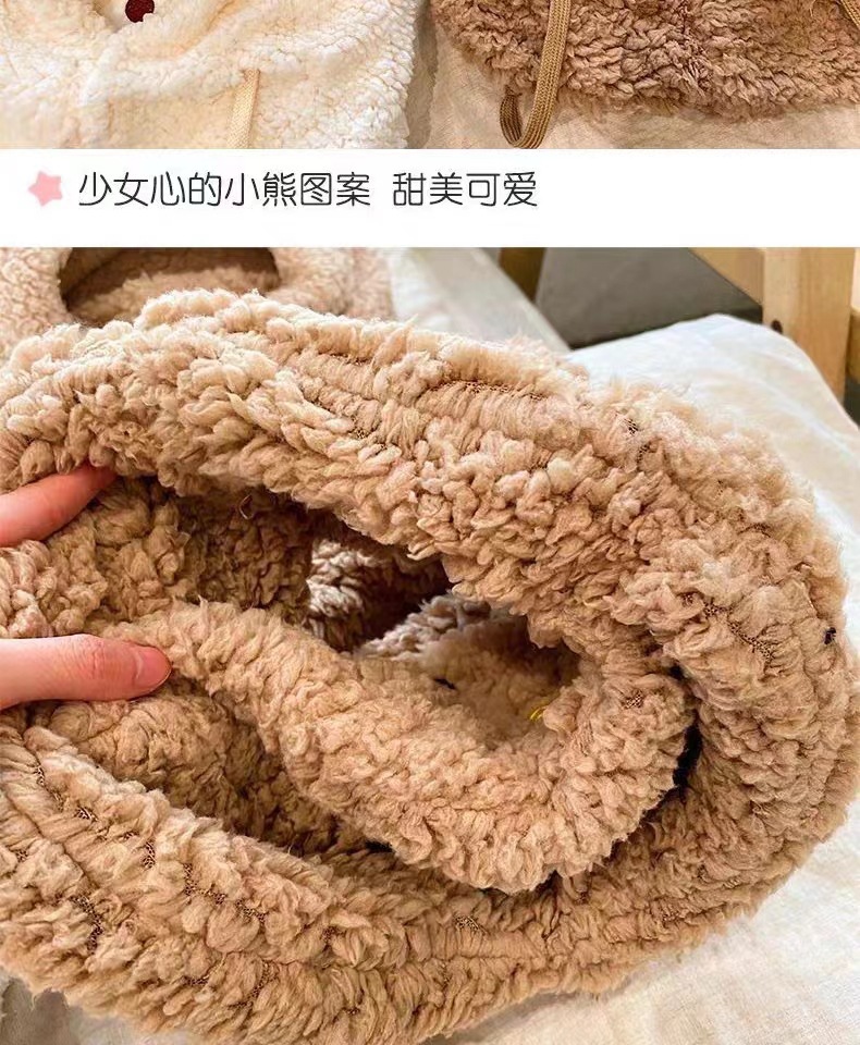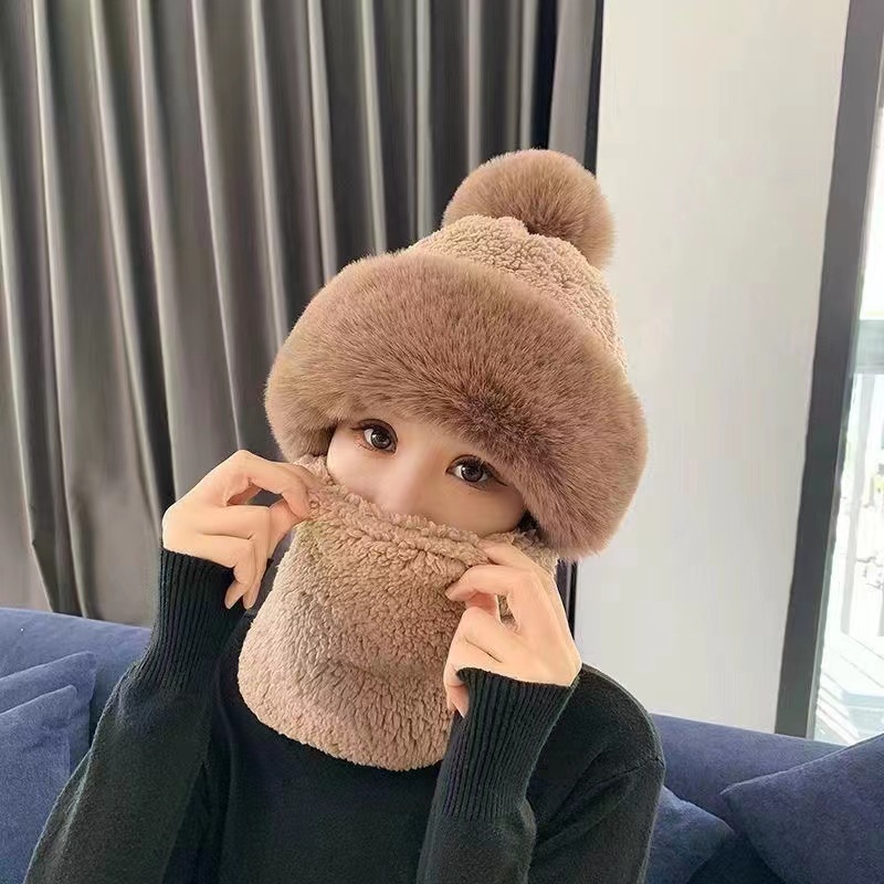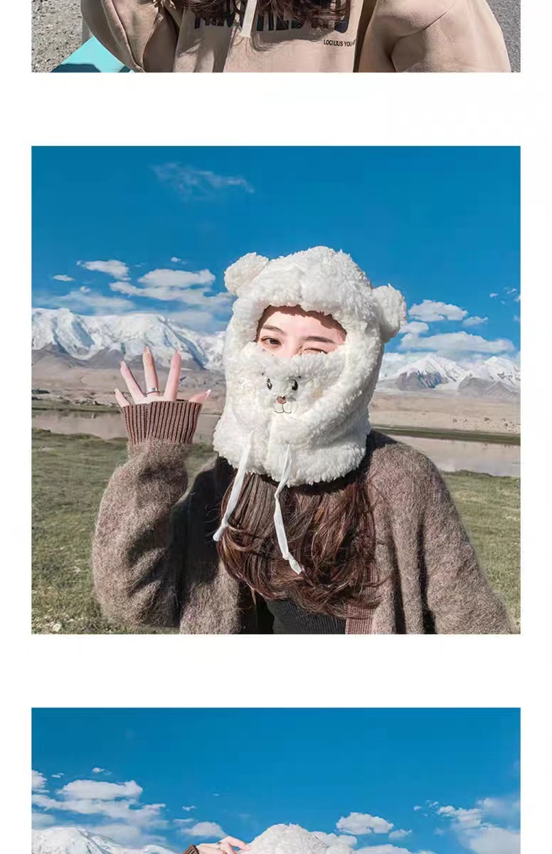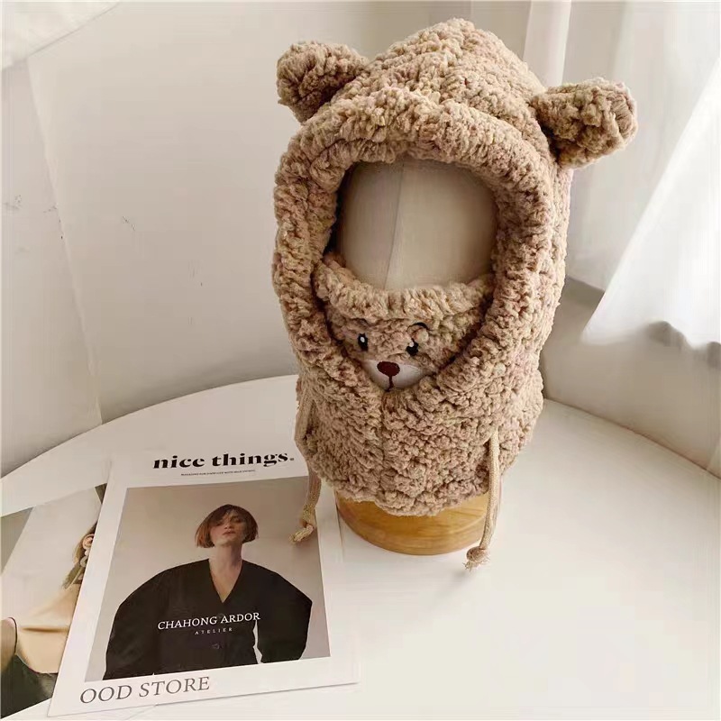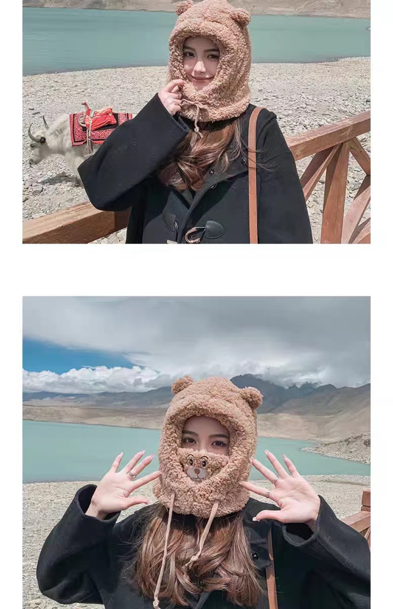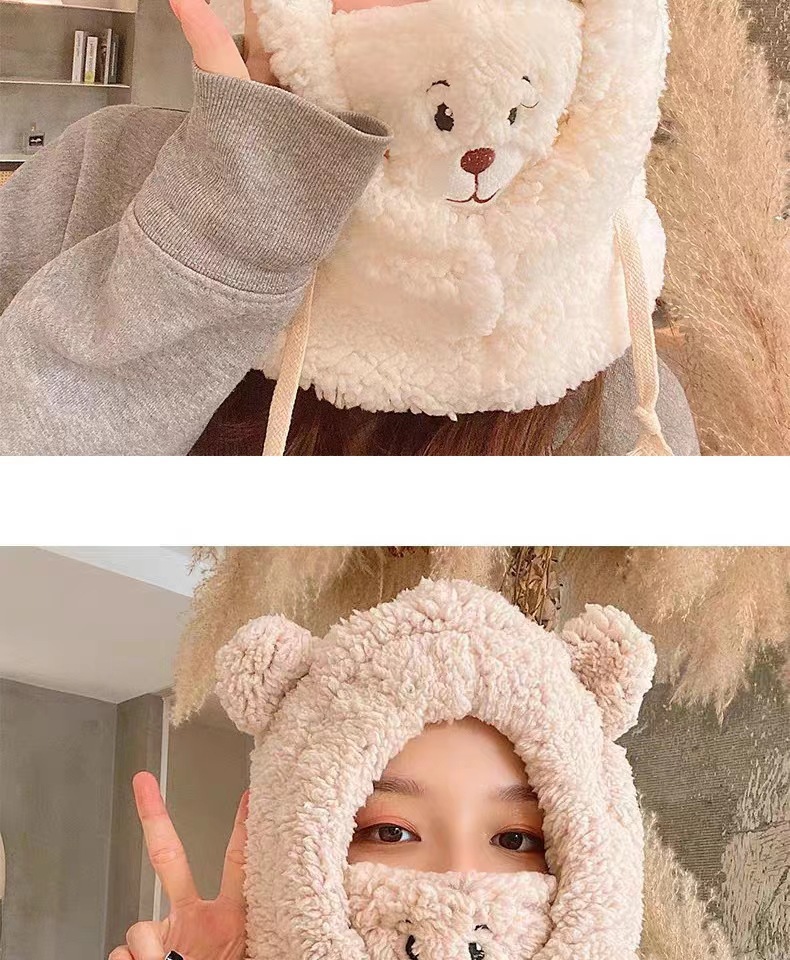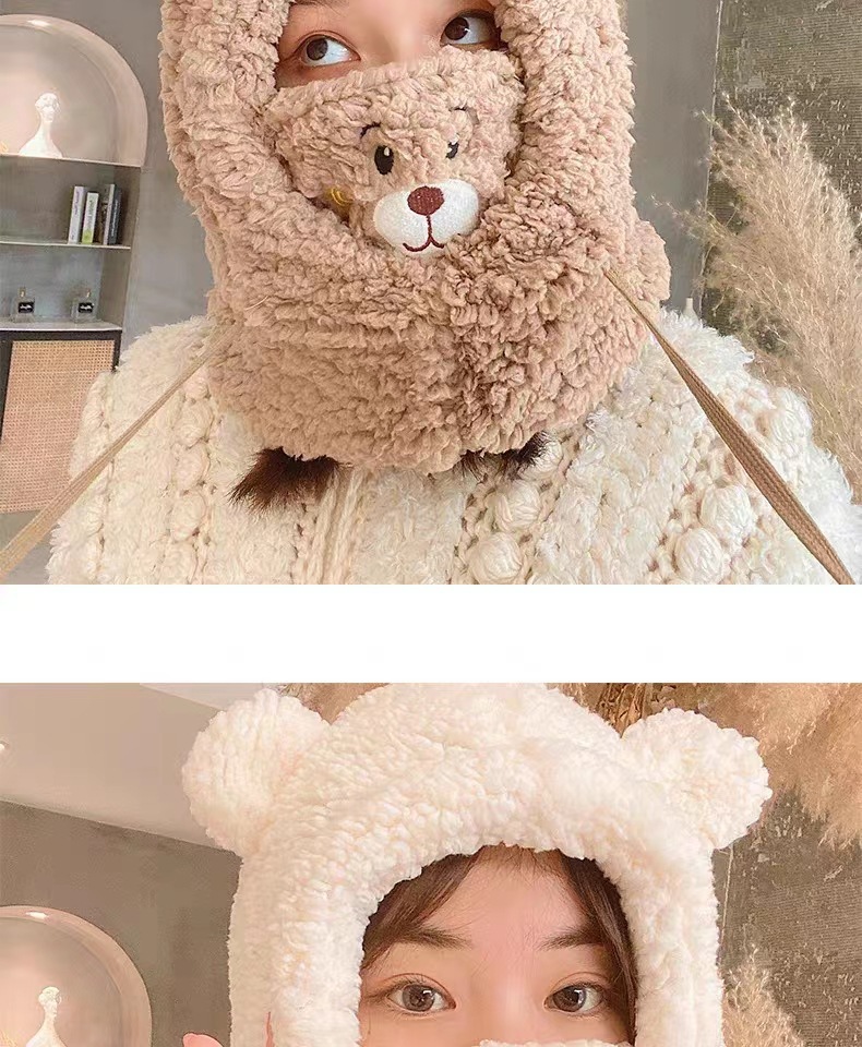 毛绒可爱小熊口罩一体帽子女秋冬韩版骑车防风保暖护耳围脖雷锋帽
