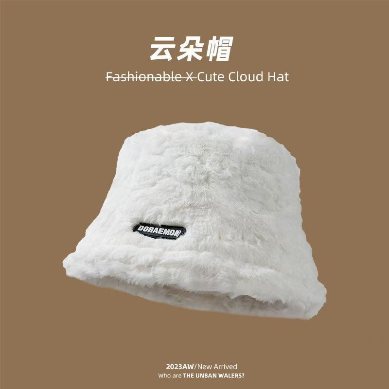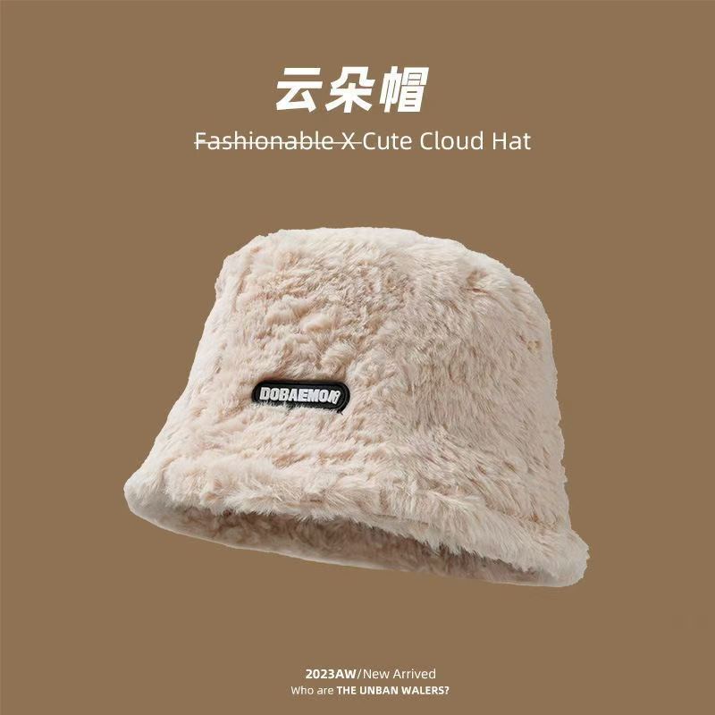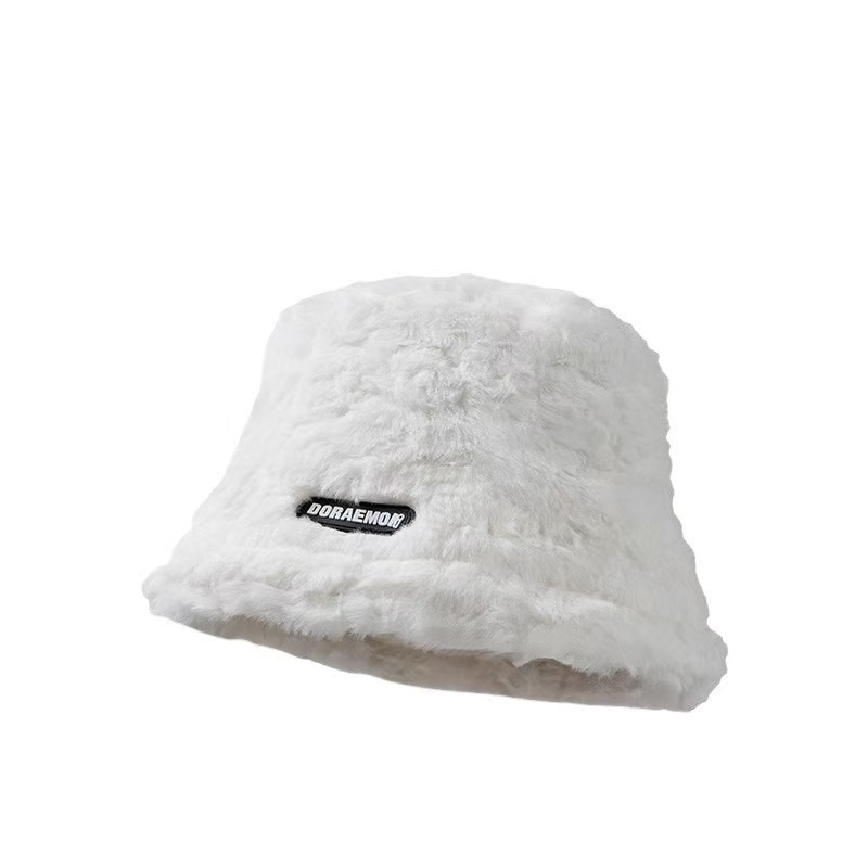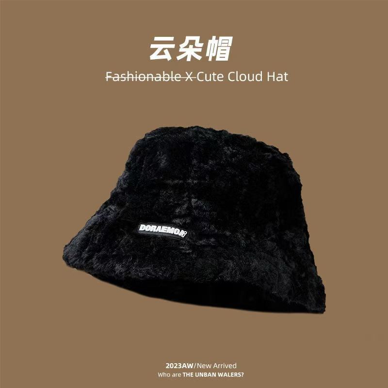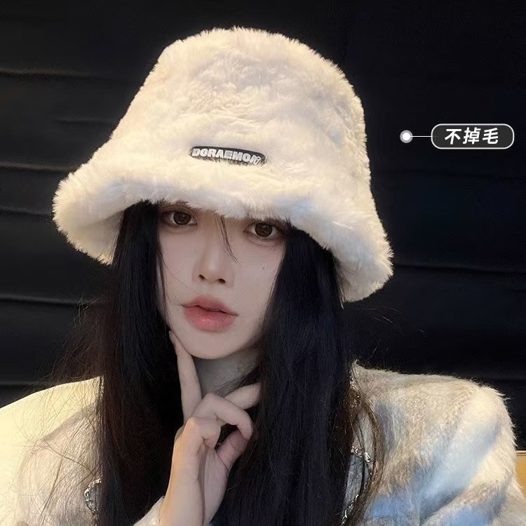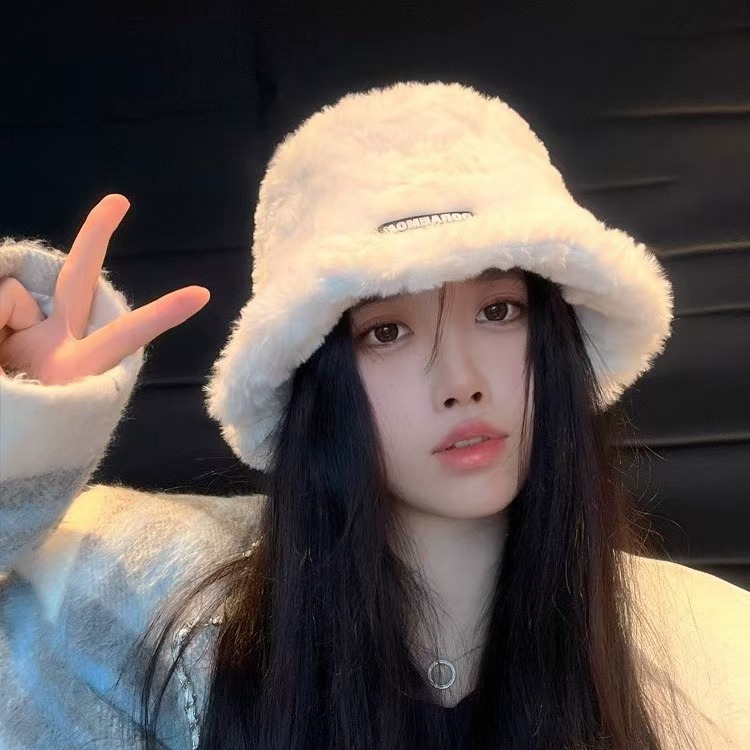 毛绒渔夫帽女秋冬2025年新款显脸小字母百搭保暖大头围水桶盆帽潮