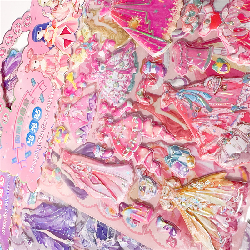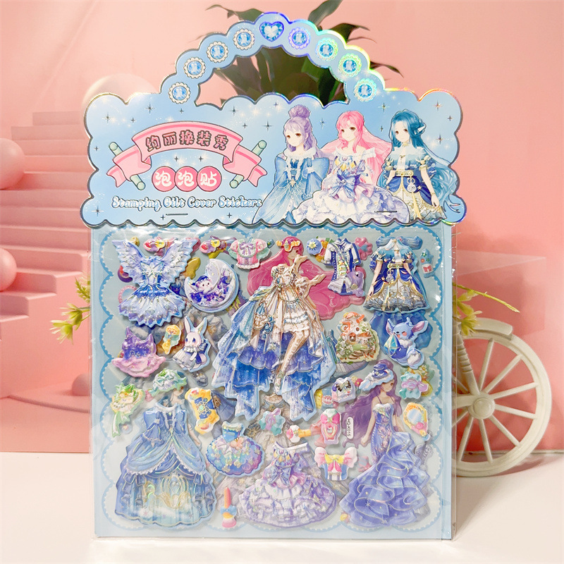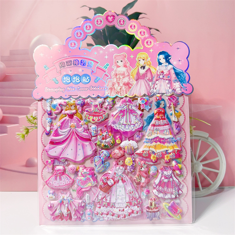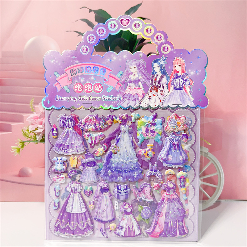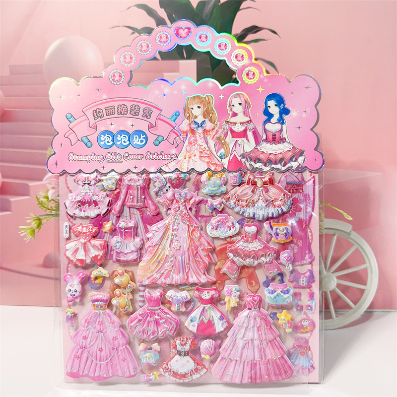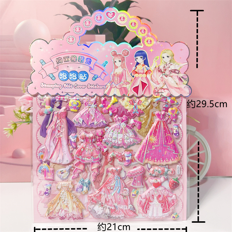 儿童手提烫金换装贴纸双层3d立体卡通泡泡贴公主穿衣服粘贴画益智