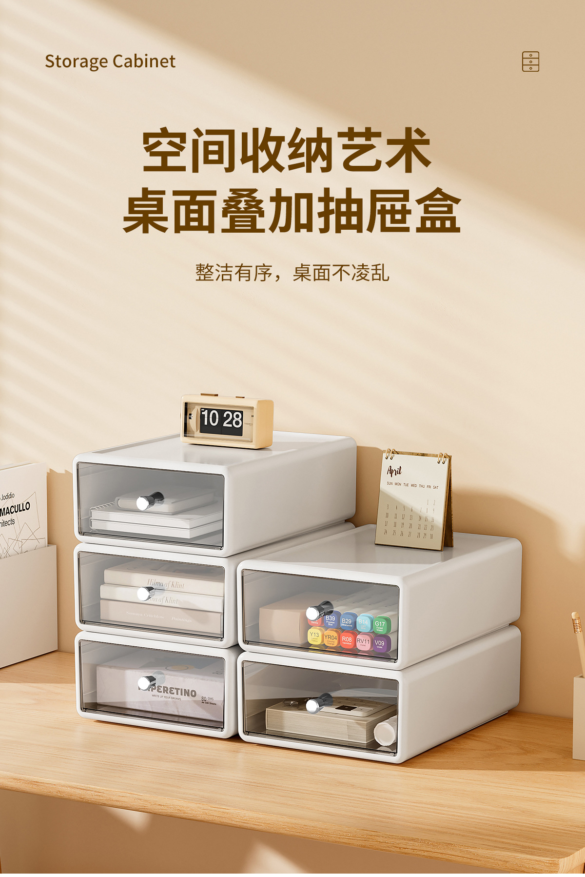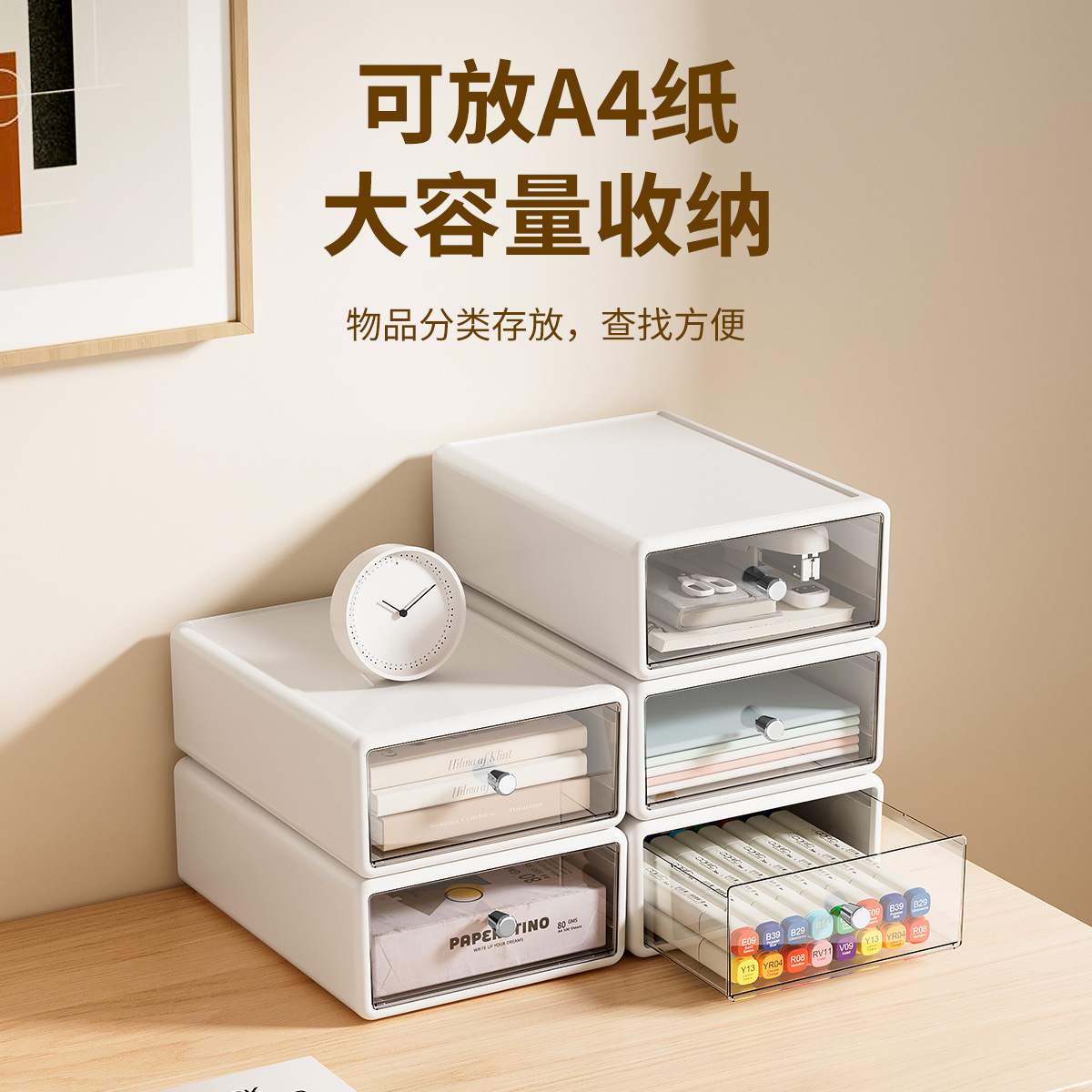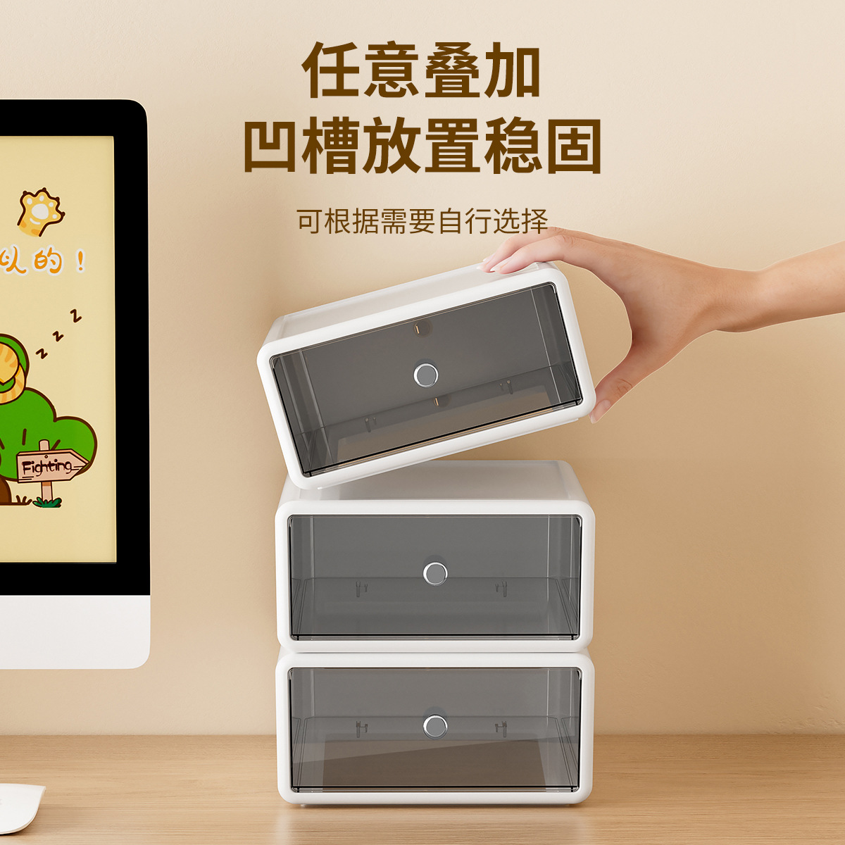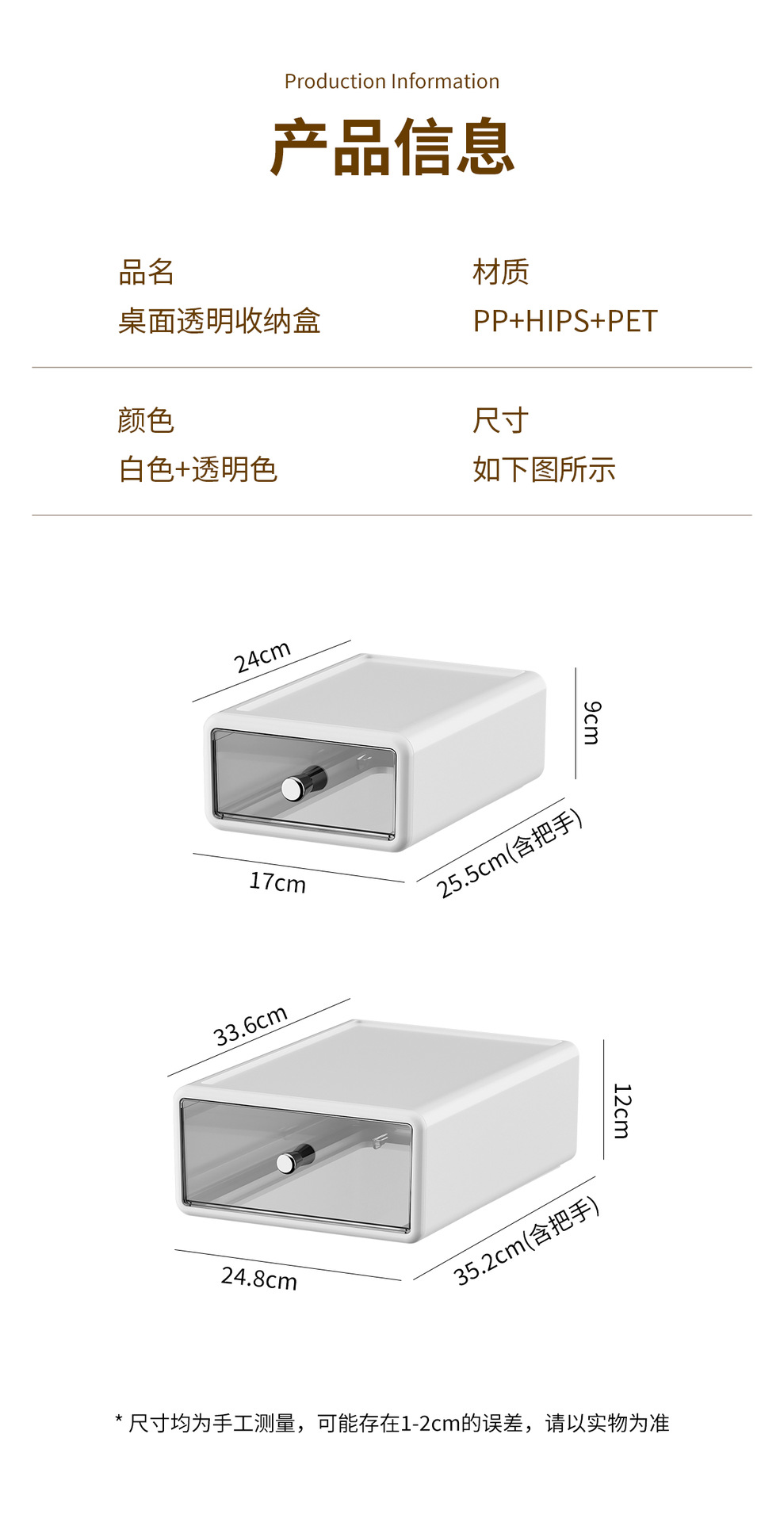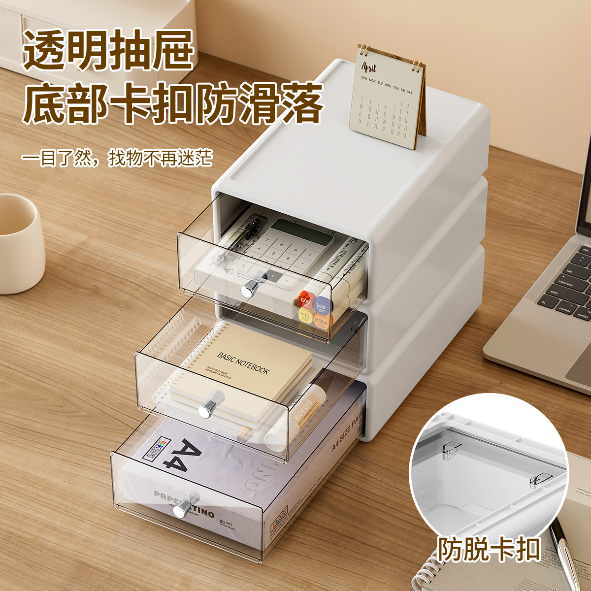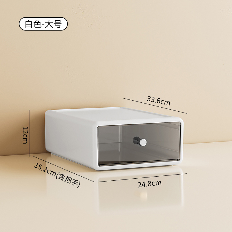 收纳盒办公桌面整理透明杂物盒塑料化妆品多格抽屉式白色收纳箱