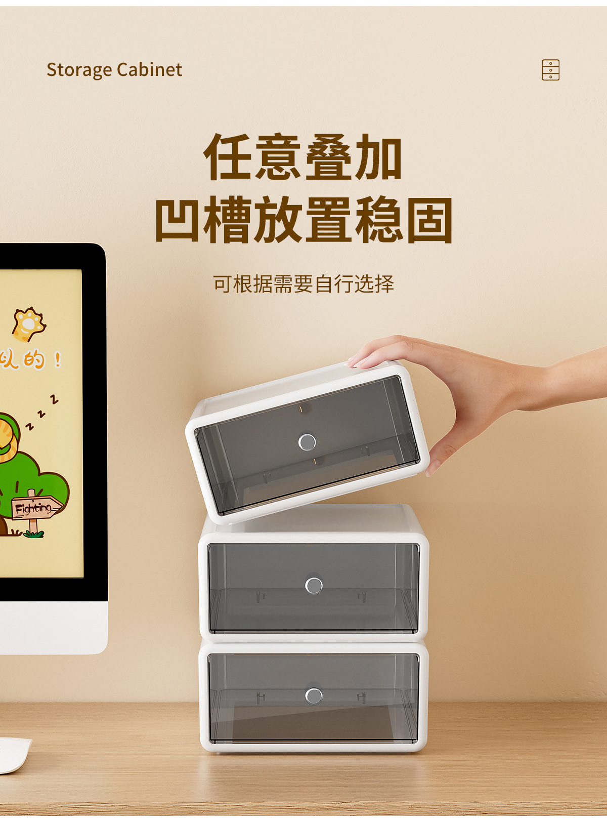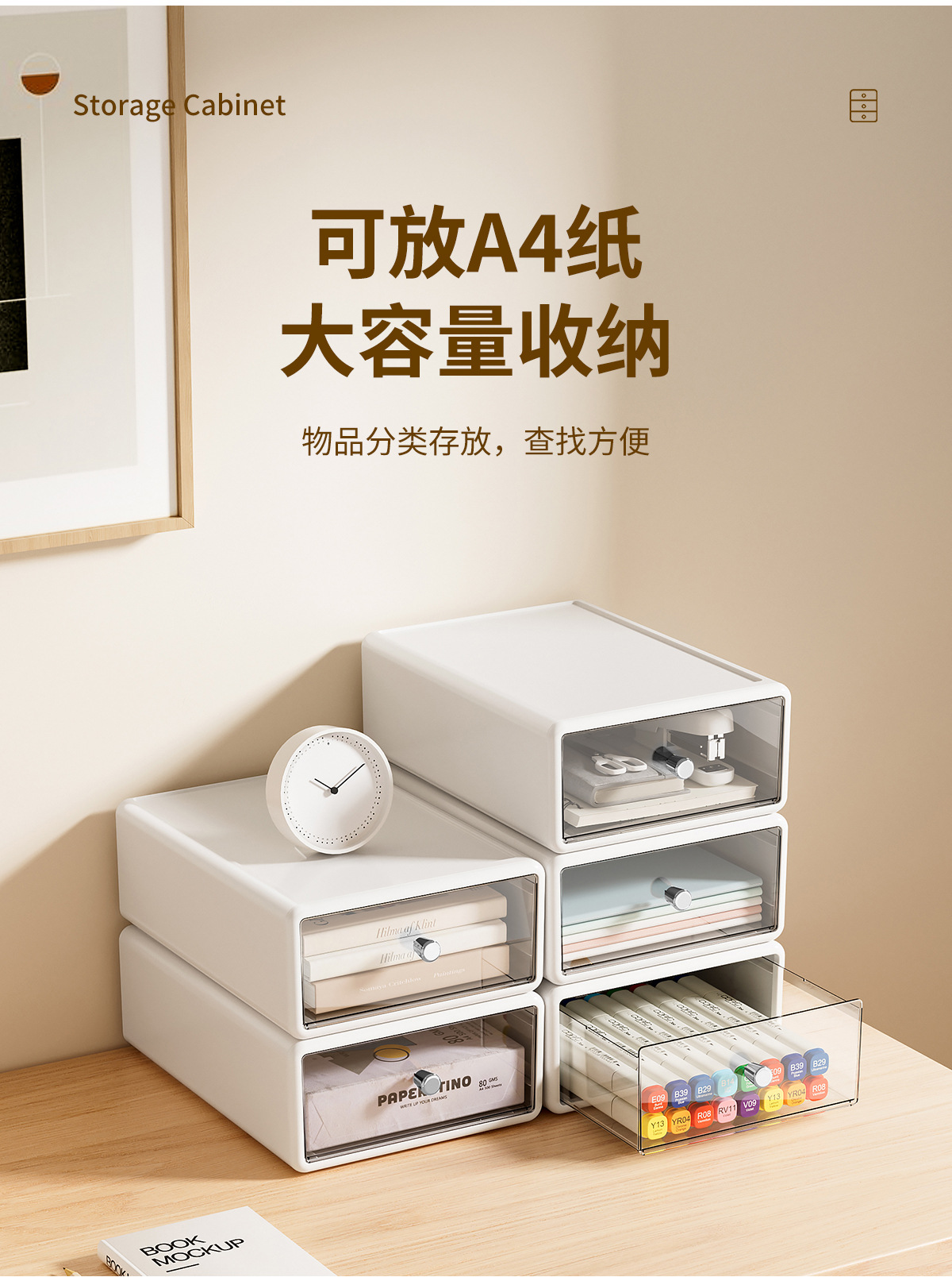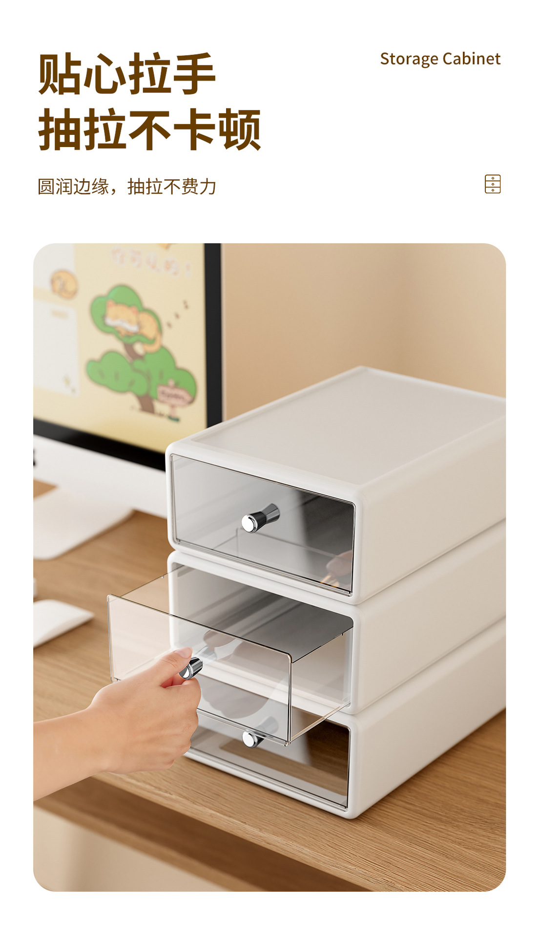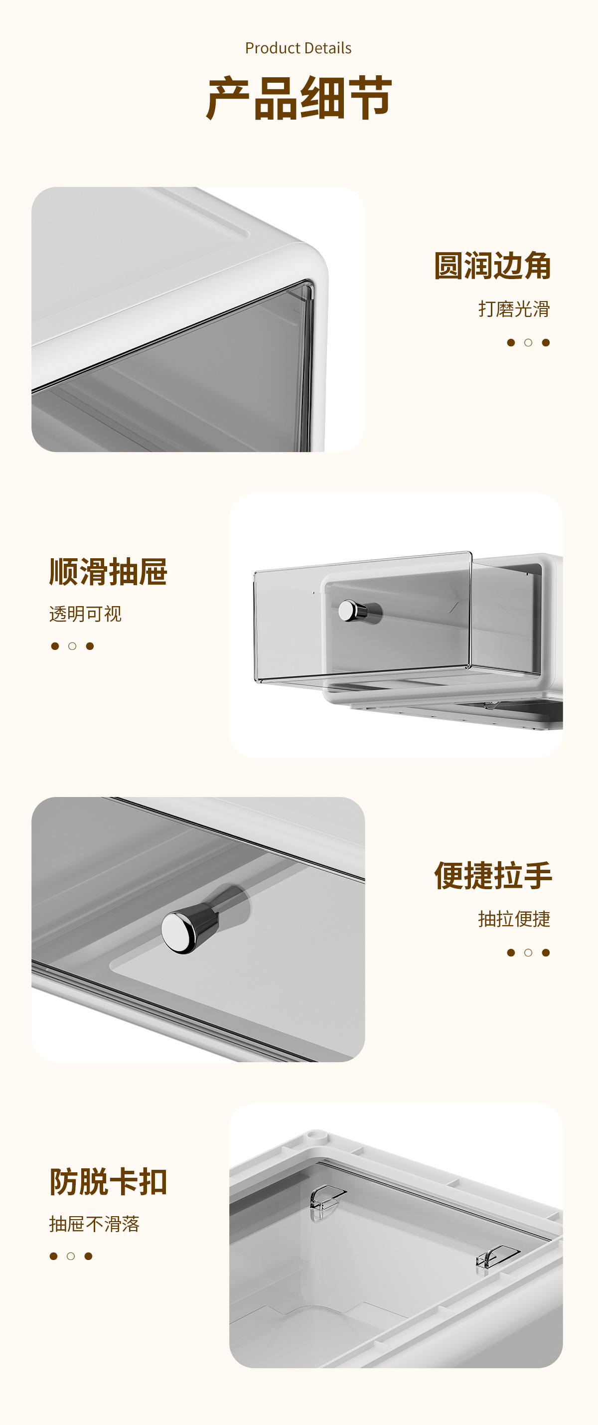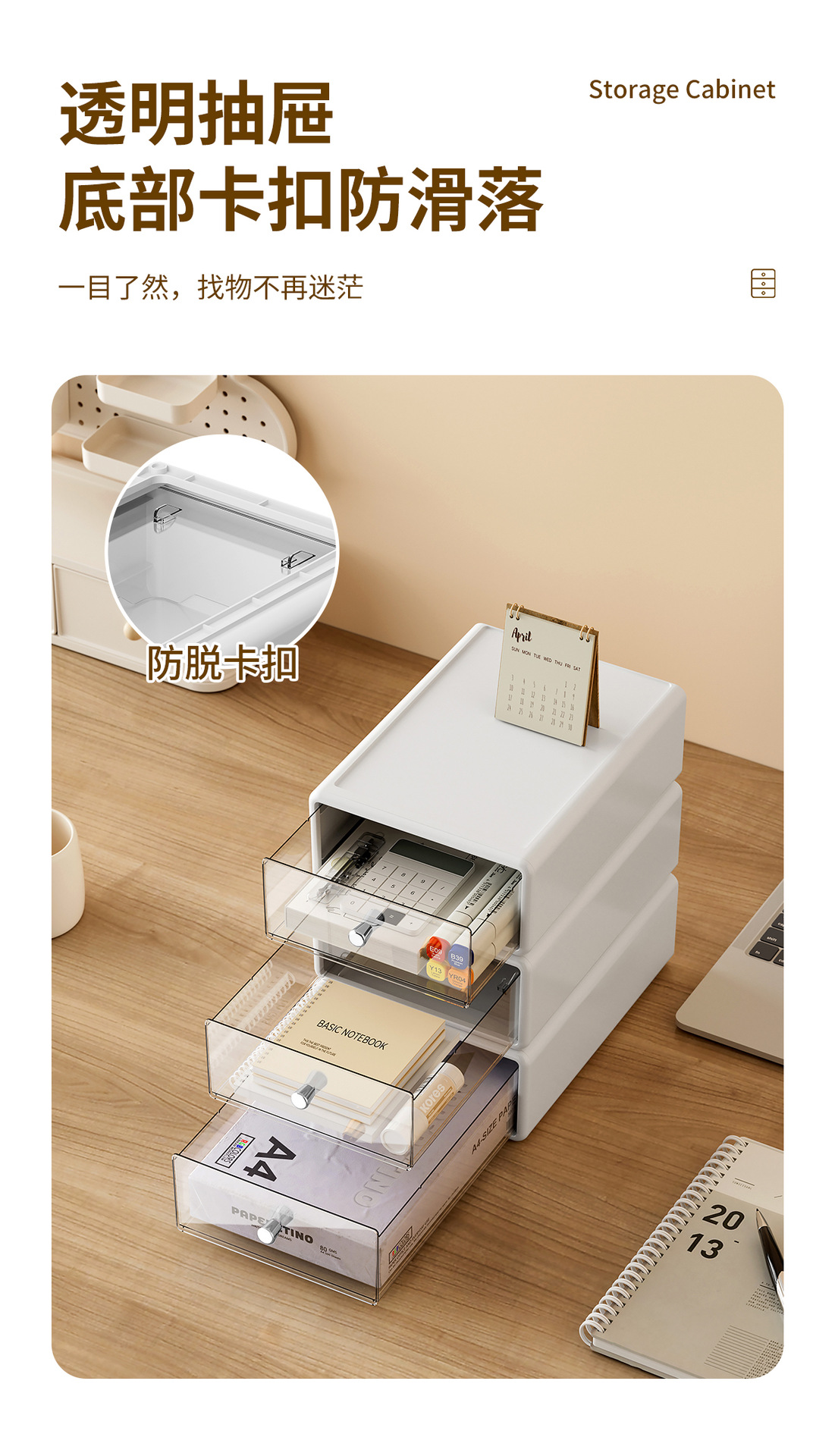 收纳盒办公桌面整理透明杂物盒塑料化妆品多格抽屉式白色收纳箱