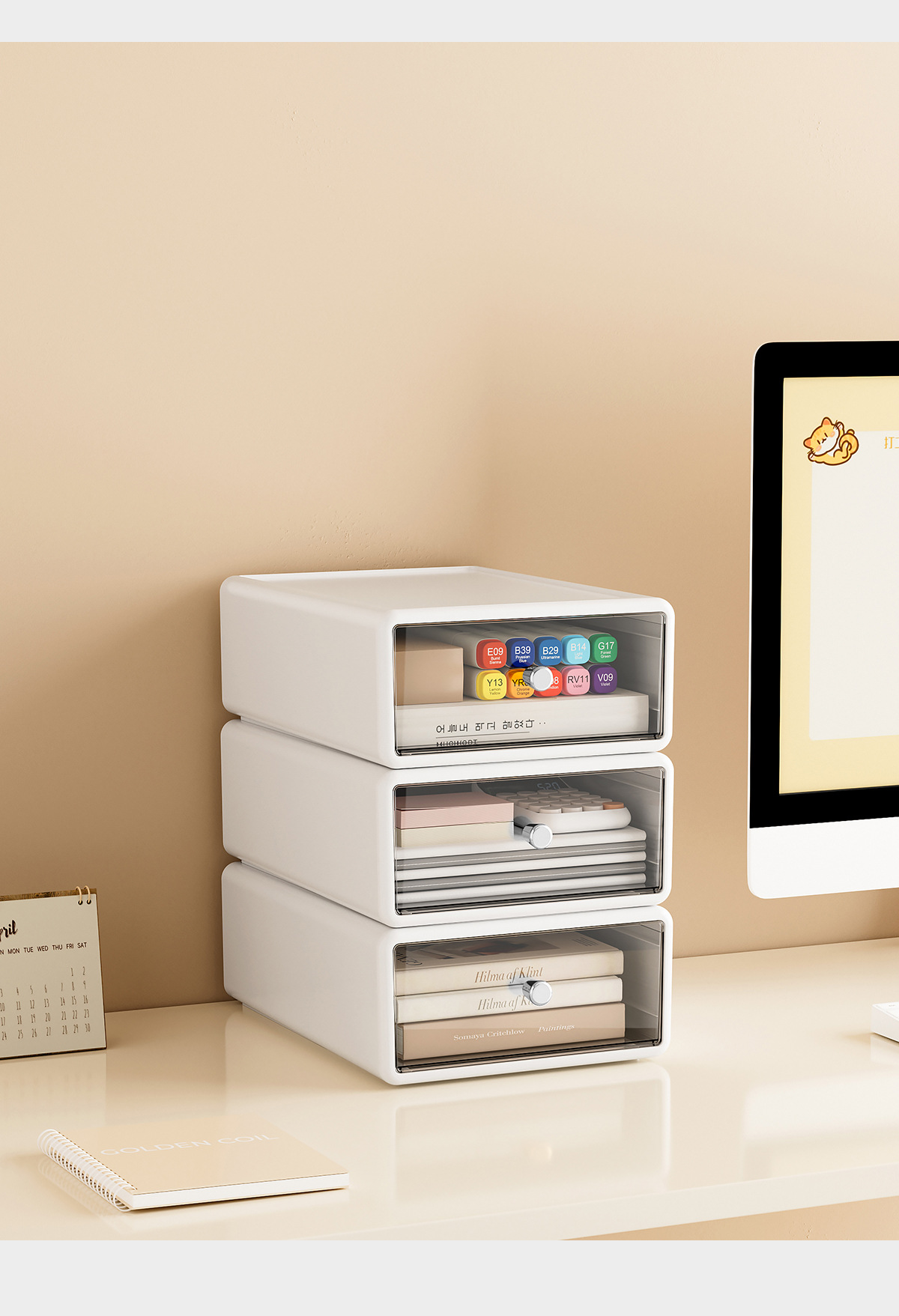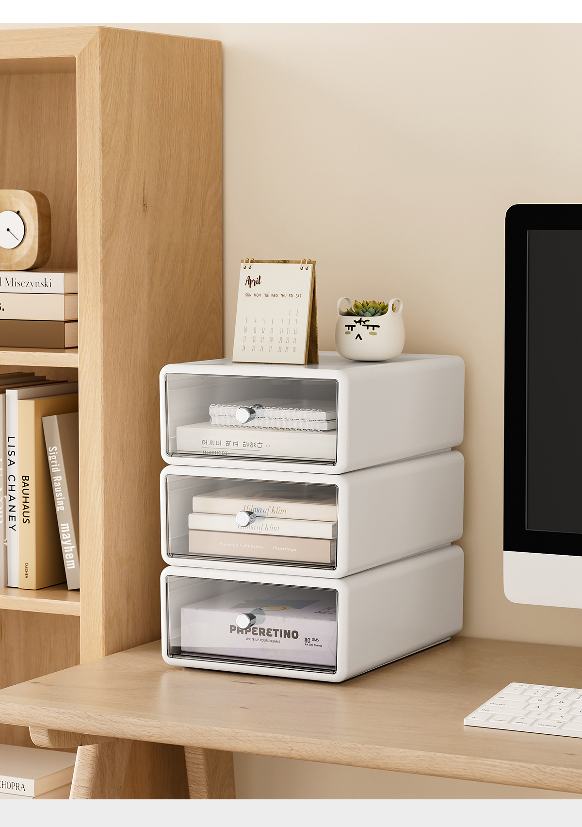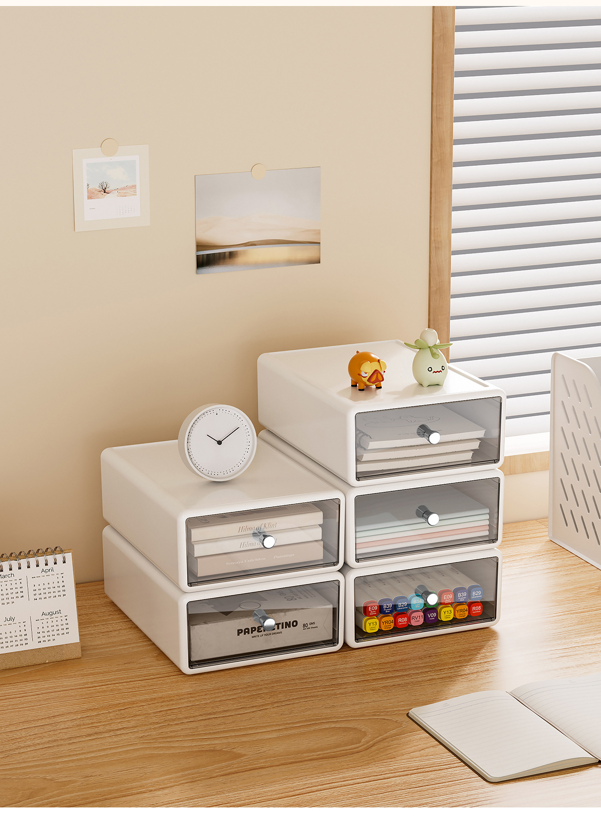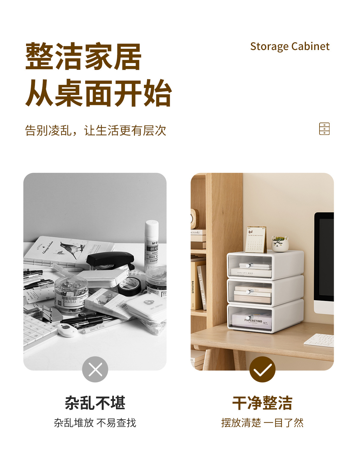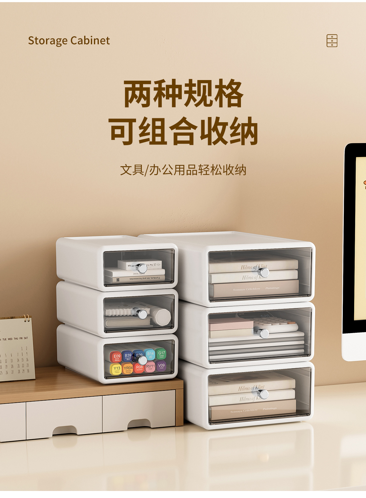 收纳盒办公桌面整理透明杂物盒塑料化妆品多格抽屉式白色收纳箱