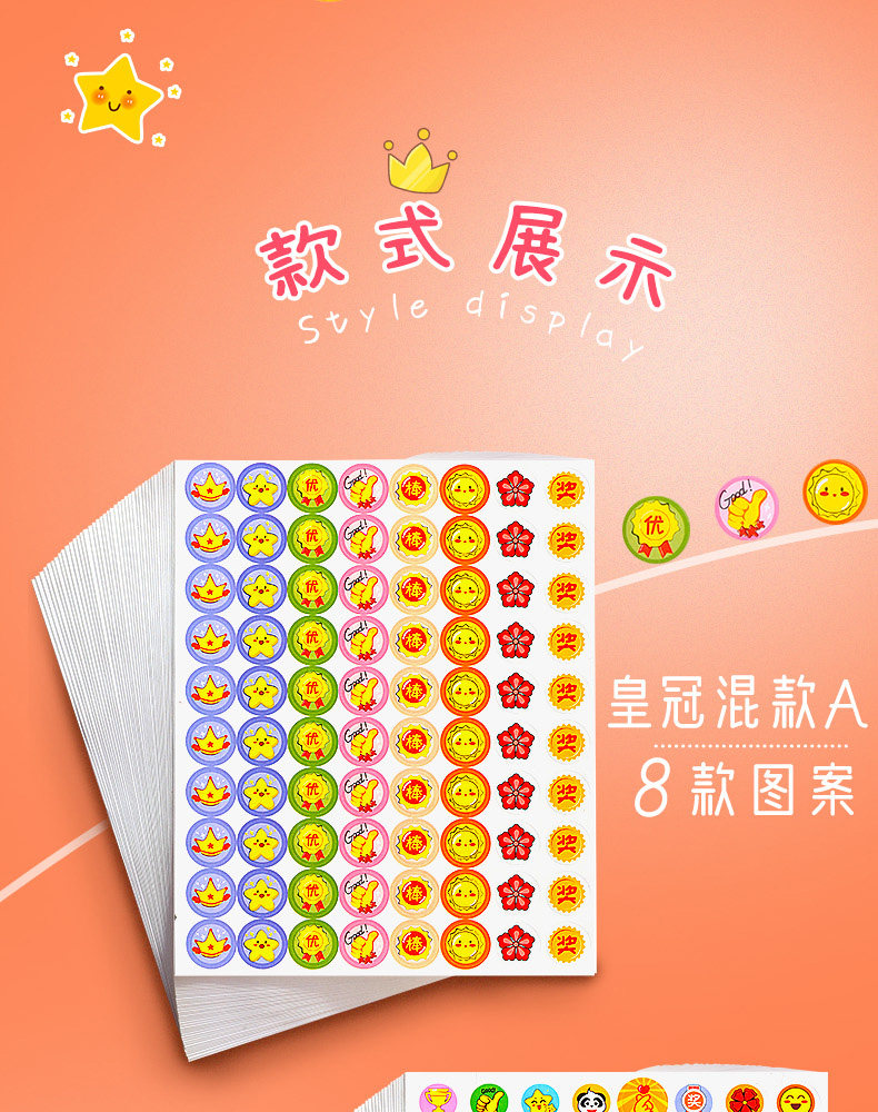 儿童小红花卡通奖励表扬贴小学生幼儿园积分贴画自律表五角星贴纸
