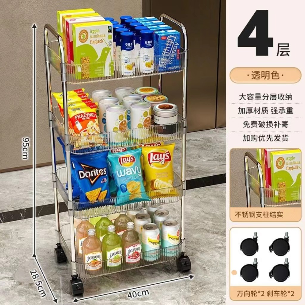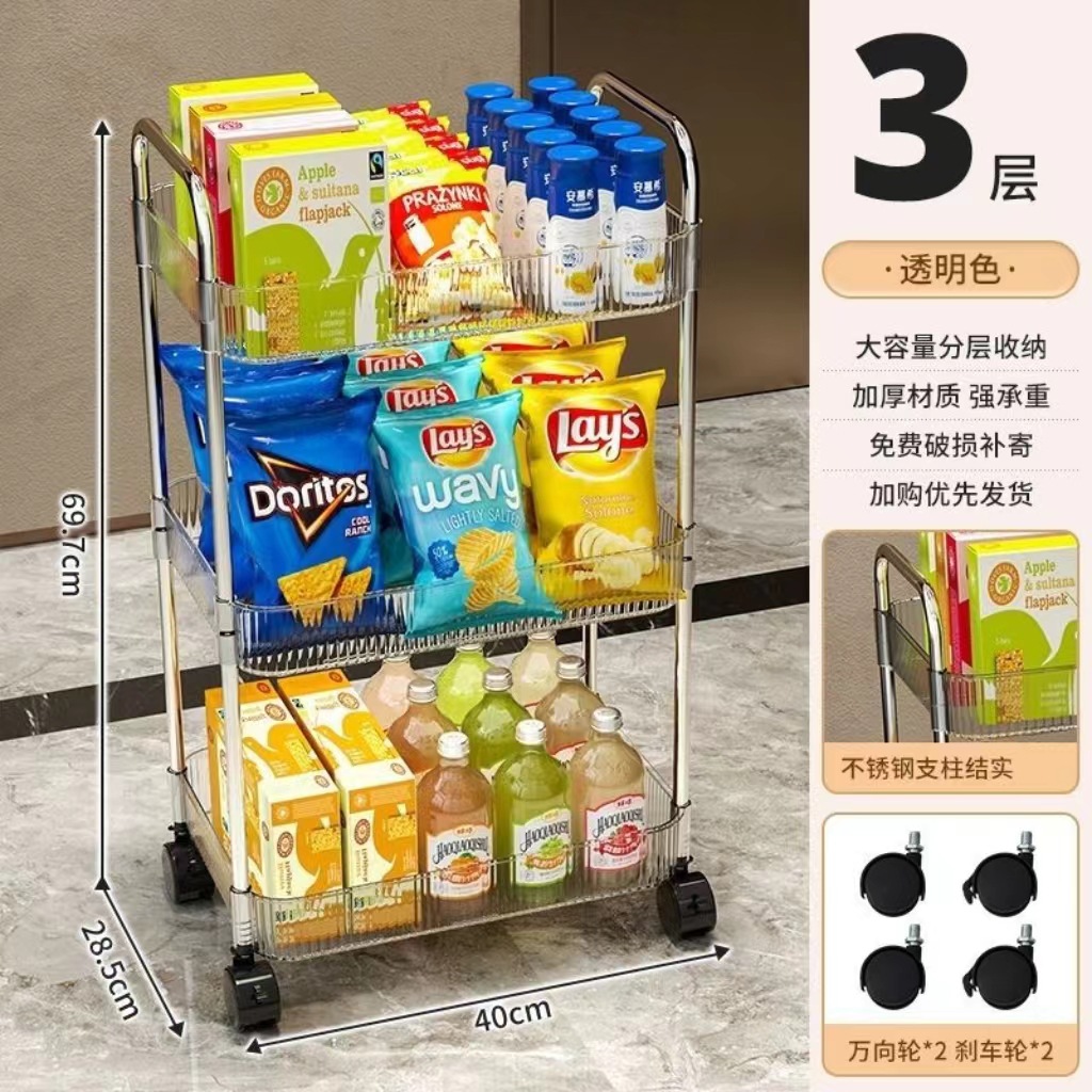 亚克力透明小推车置物架40cm浴室客厅美容院化妆品收纳架多功能