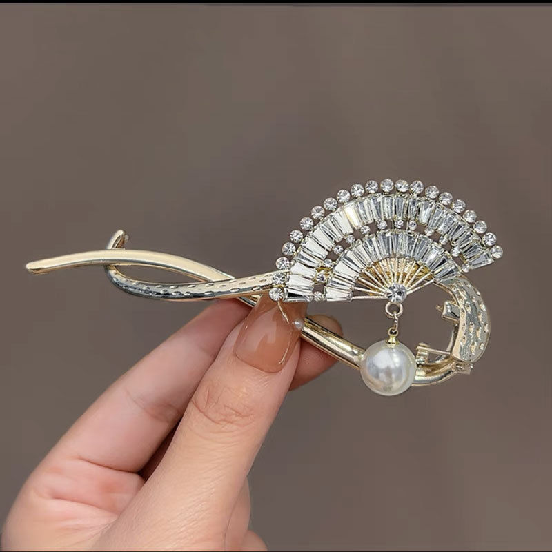 复古珍珠花朵扭扭夹高级感金属蝴蝶网红发夹古风盘头优雅发卡批发