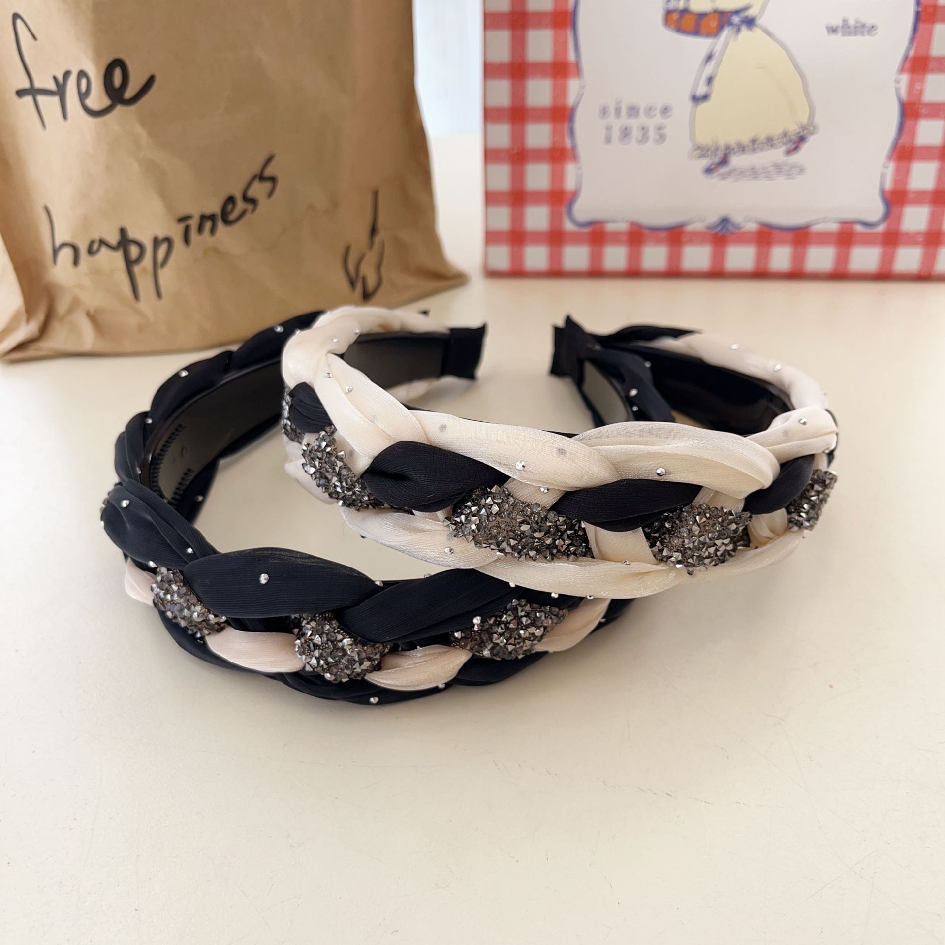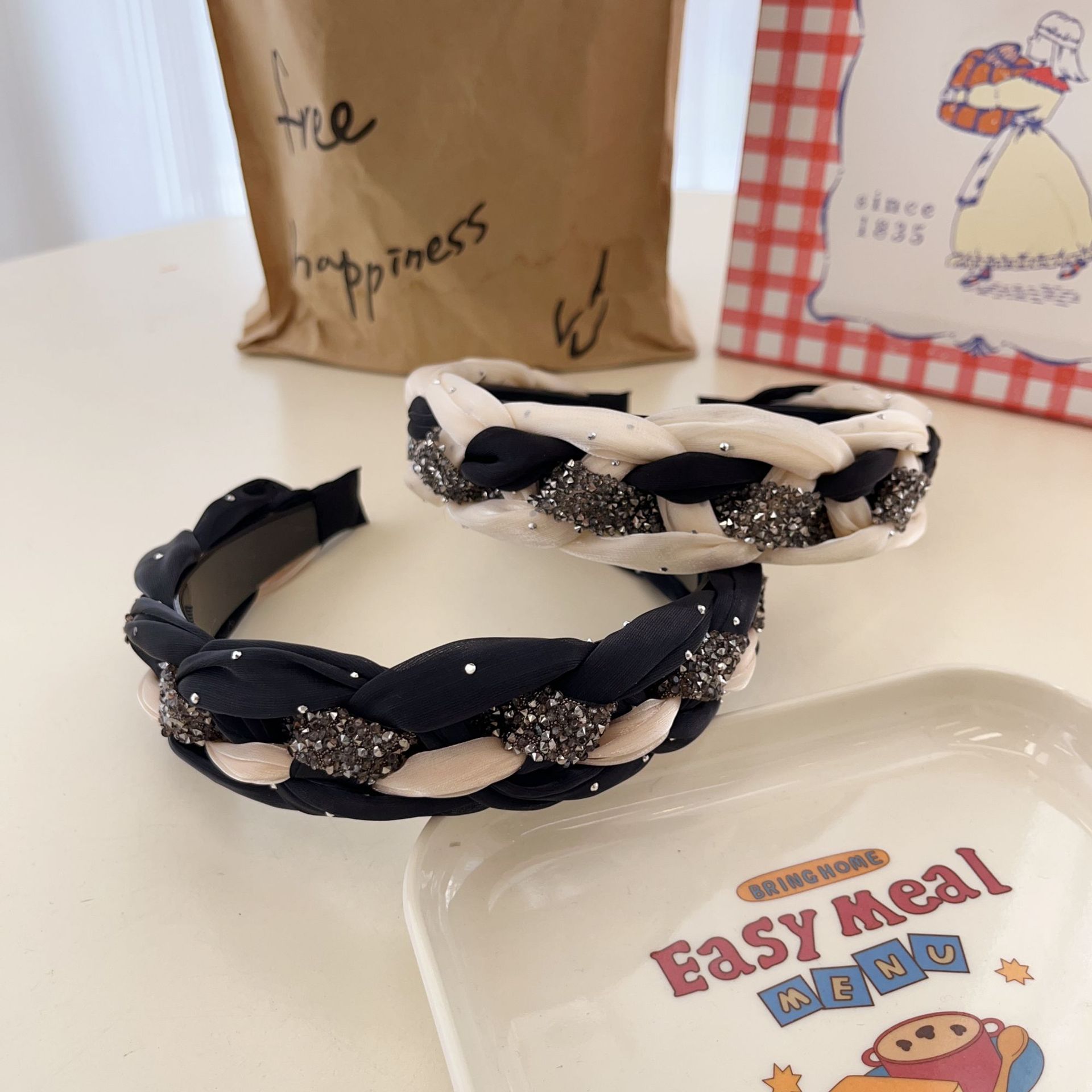 2024新款时尚水钻发箍女网红高颅顶头饰宽边洗脸发卡麻花头箍批发