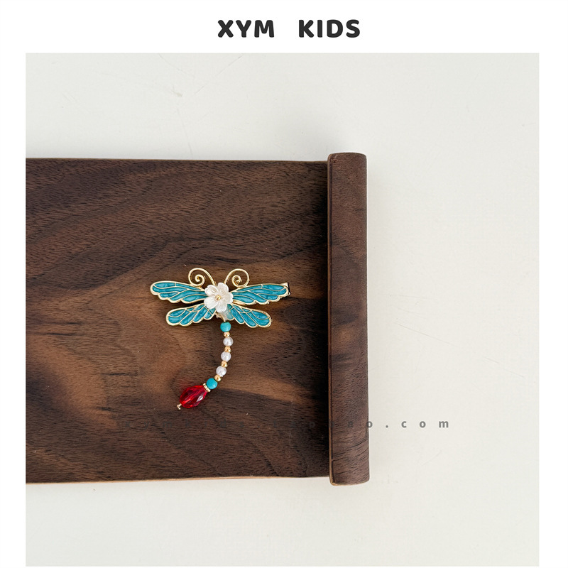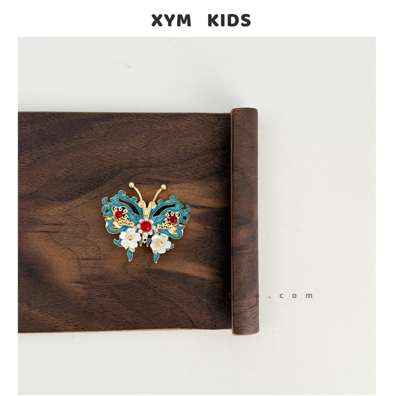 新中式蝴蝶烧蓝精致小边夹气质少女丸子头侧边发饰配旗袍头饰发夹