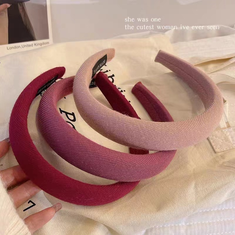 复古粉红色系海绵发箍高颅顶压发头箍显脸小新款网红纯色日韩发饰