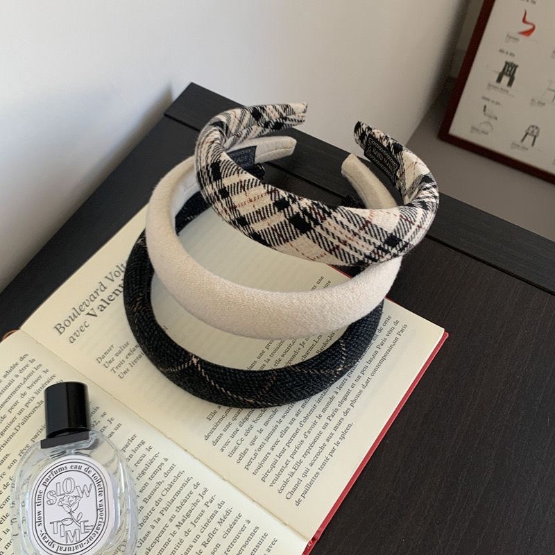 秋冬黑白简约呢格海绵发箍高颅顶压发头饰外出头箍发卡百搭发饰女