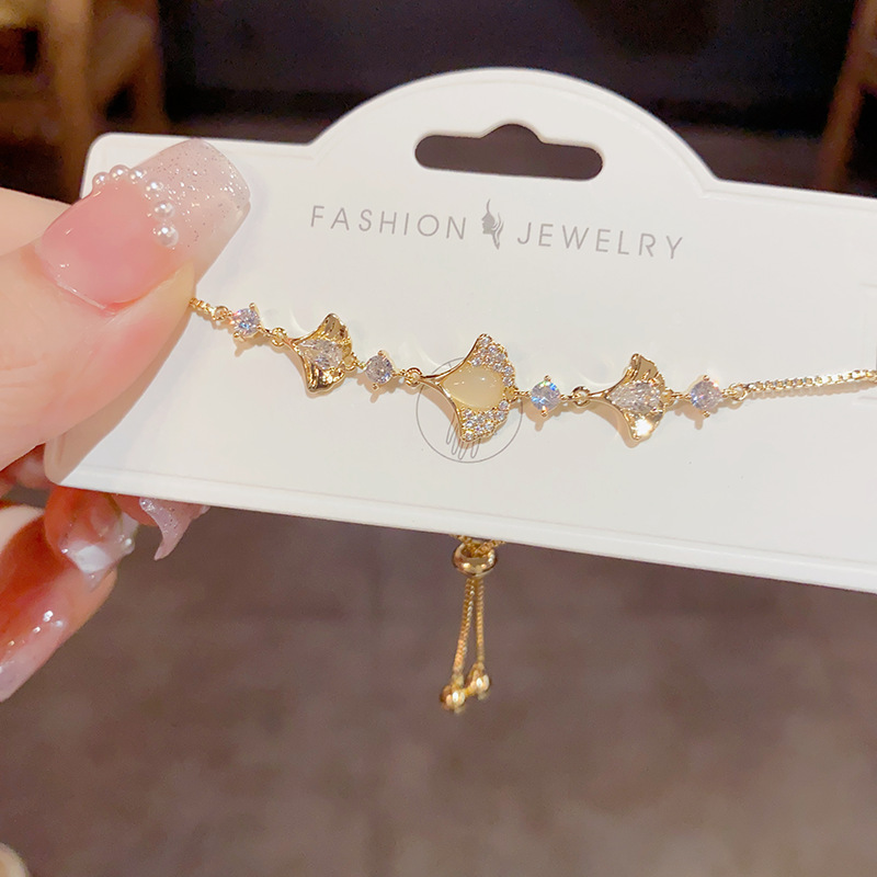抖音热门款 时尚高级感轻奢猫眼石银杏叶手链 小众设计感气质手环