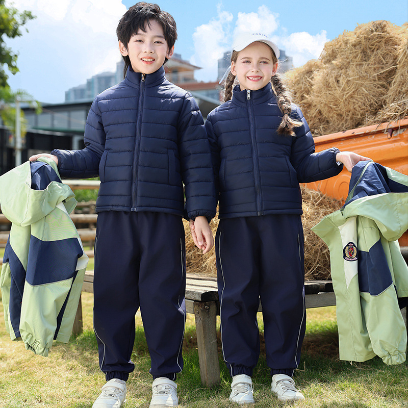 小学生校服套装秋冬班服加厚羽绒棉冲锋衣拆卸三件套幼儿园冲锋衣