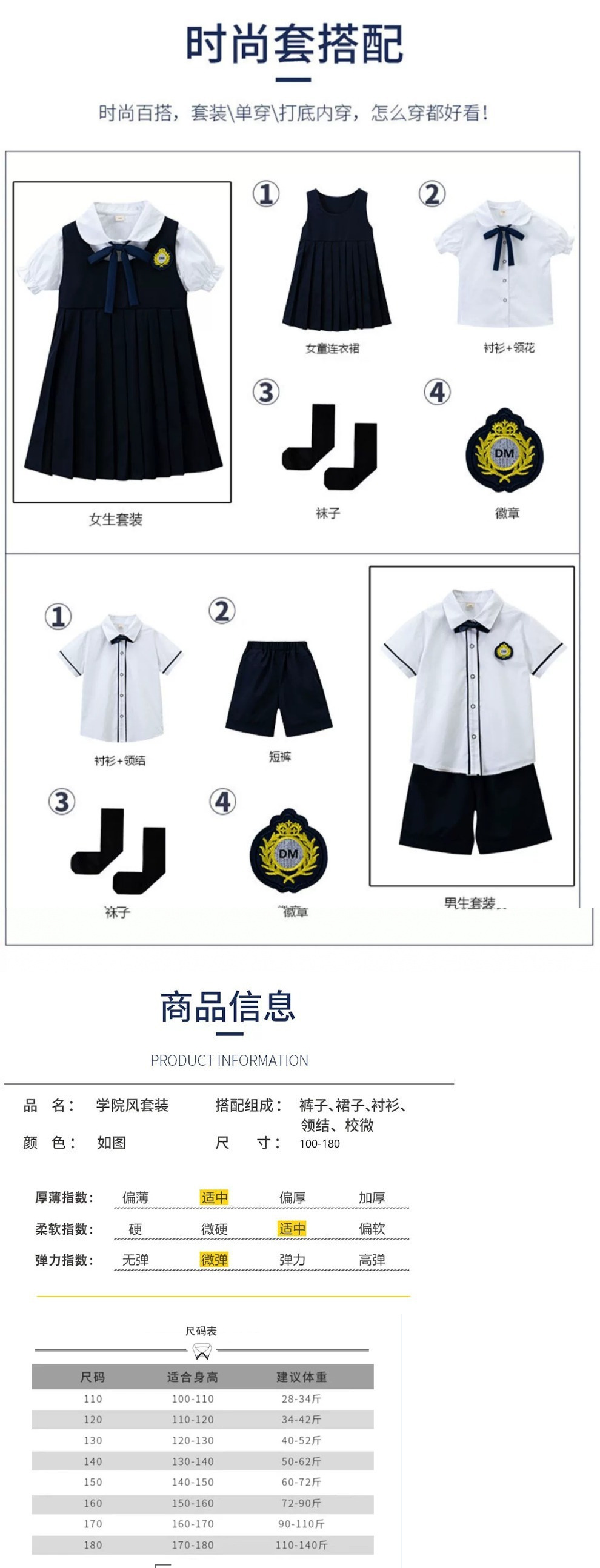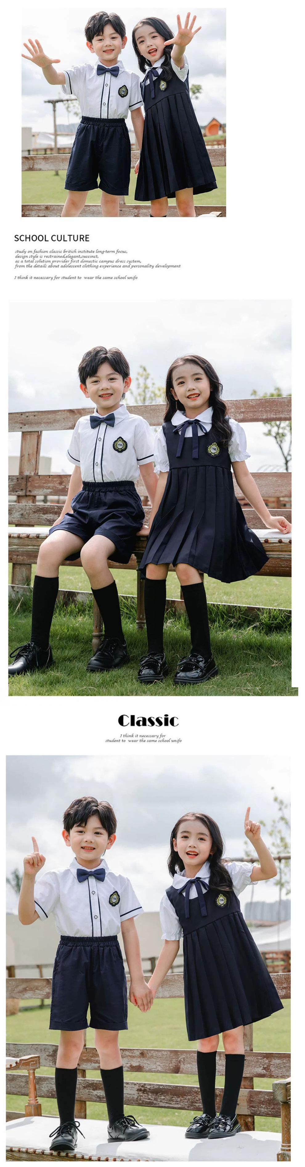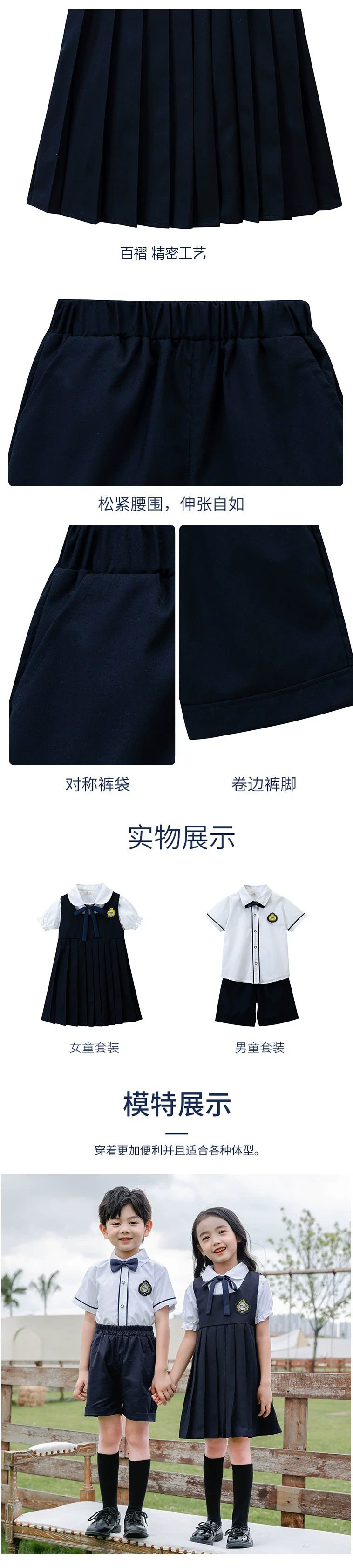 简约幼儿园园服儿童班服毕业拍照海军风短袖学院风校服合唱演出服