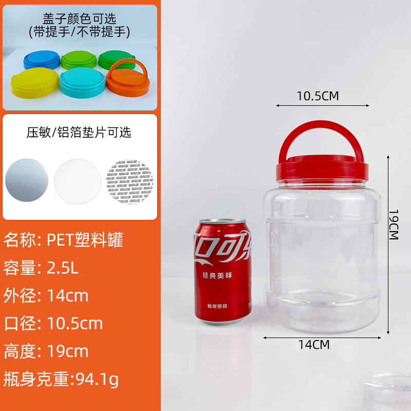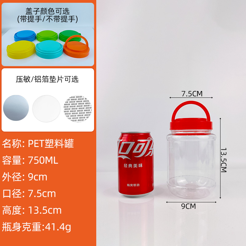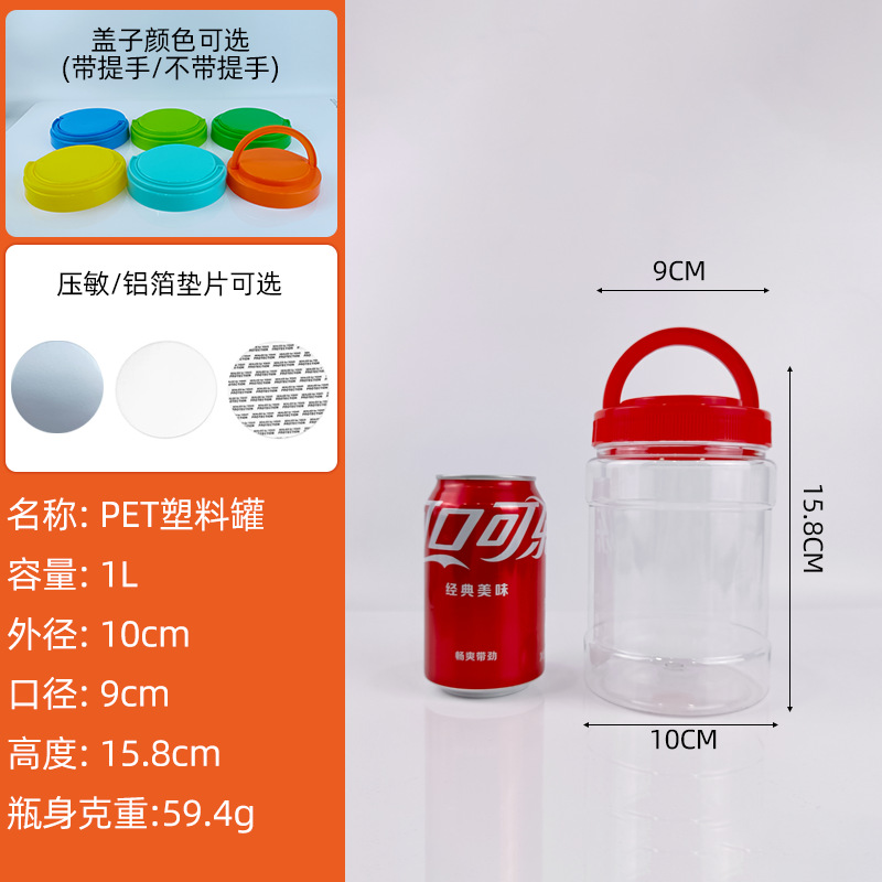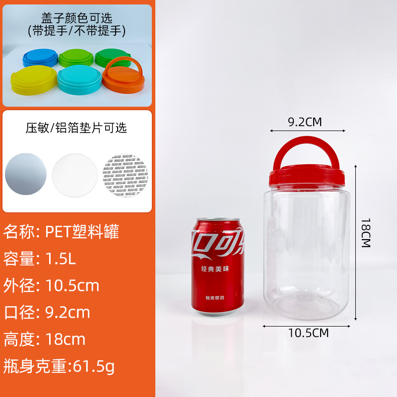 500ml4kg1斤带盖塑料罐空瓶冻干食品pet塑料瓶手提透明密封塑料罐