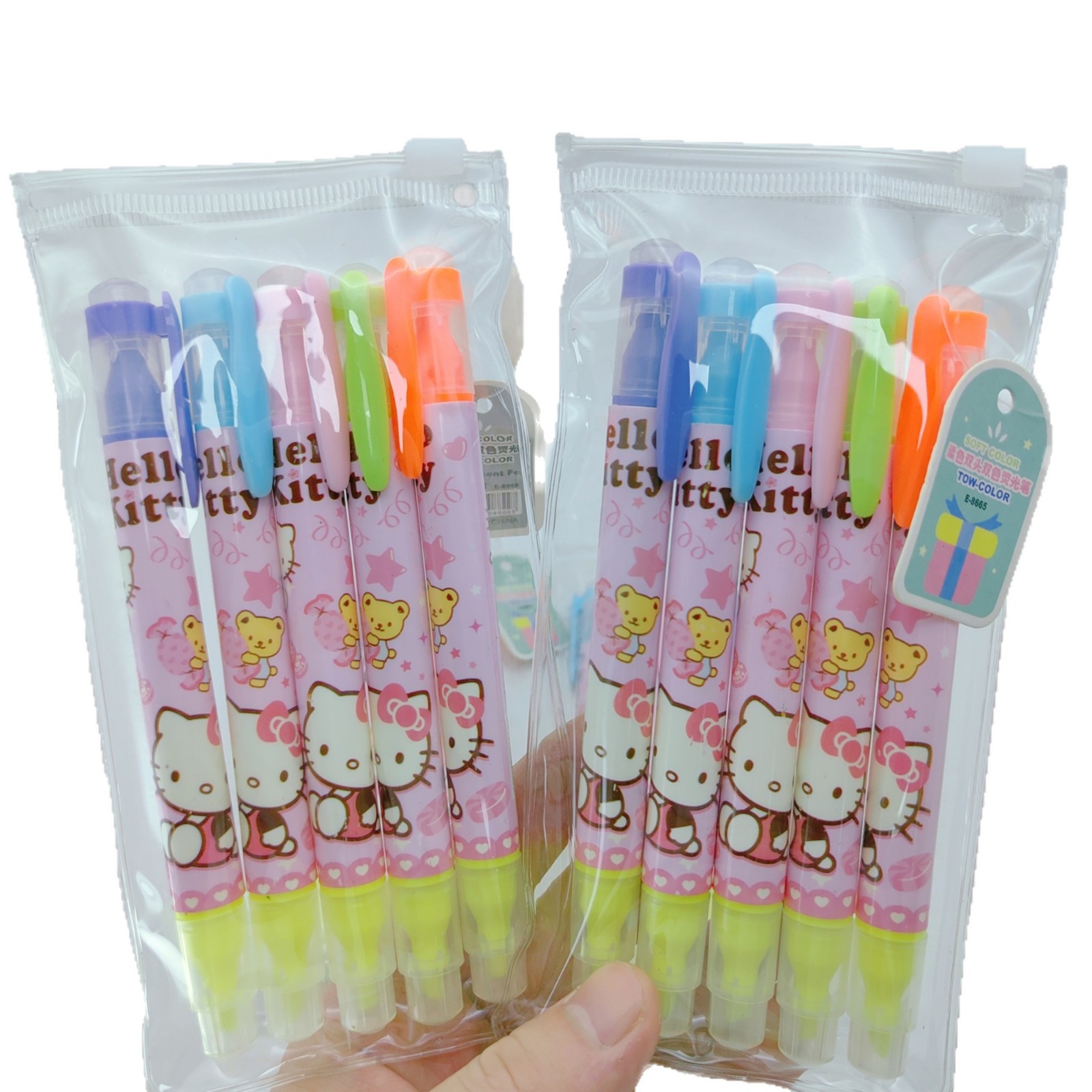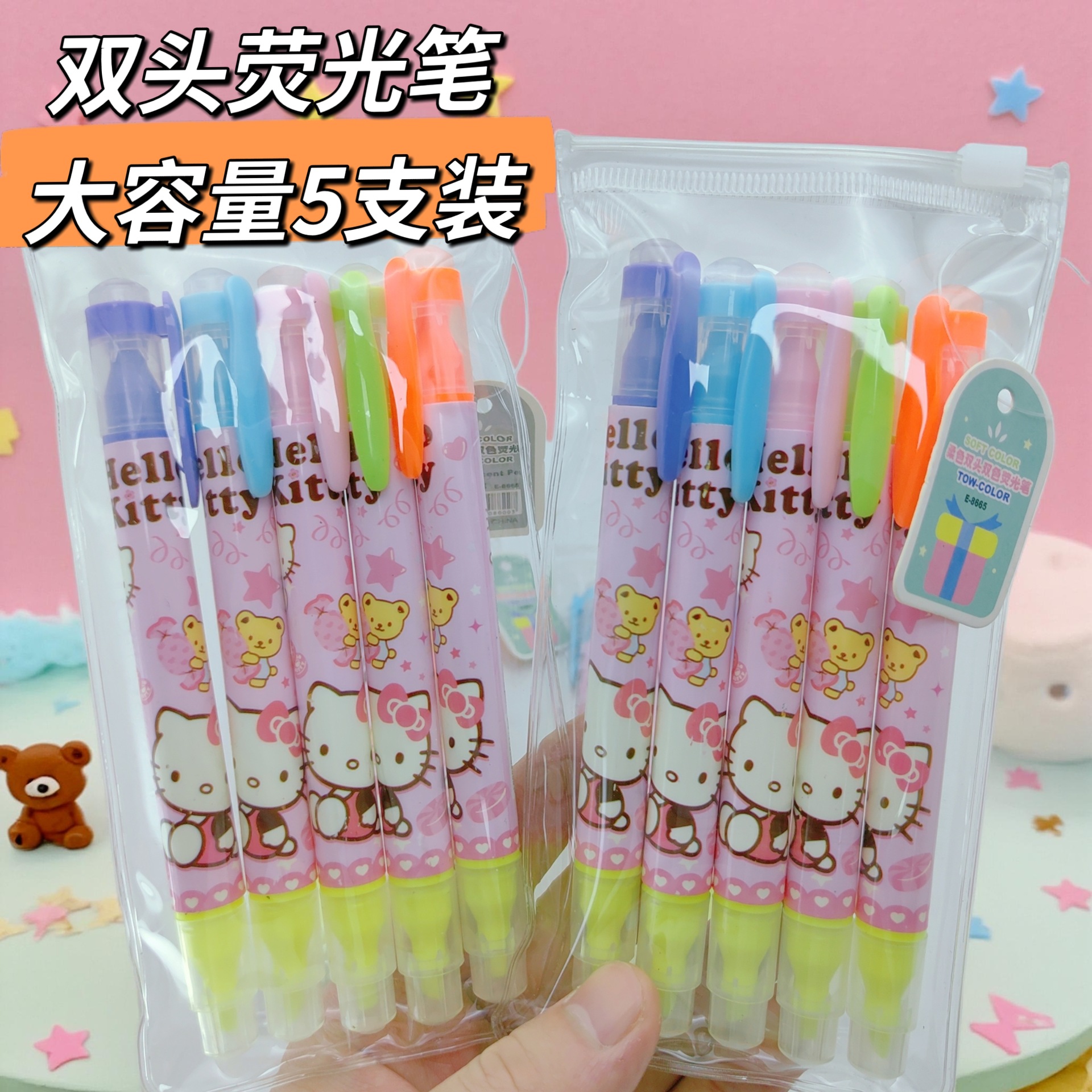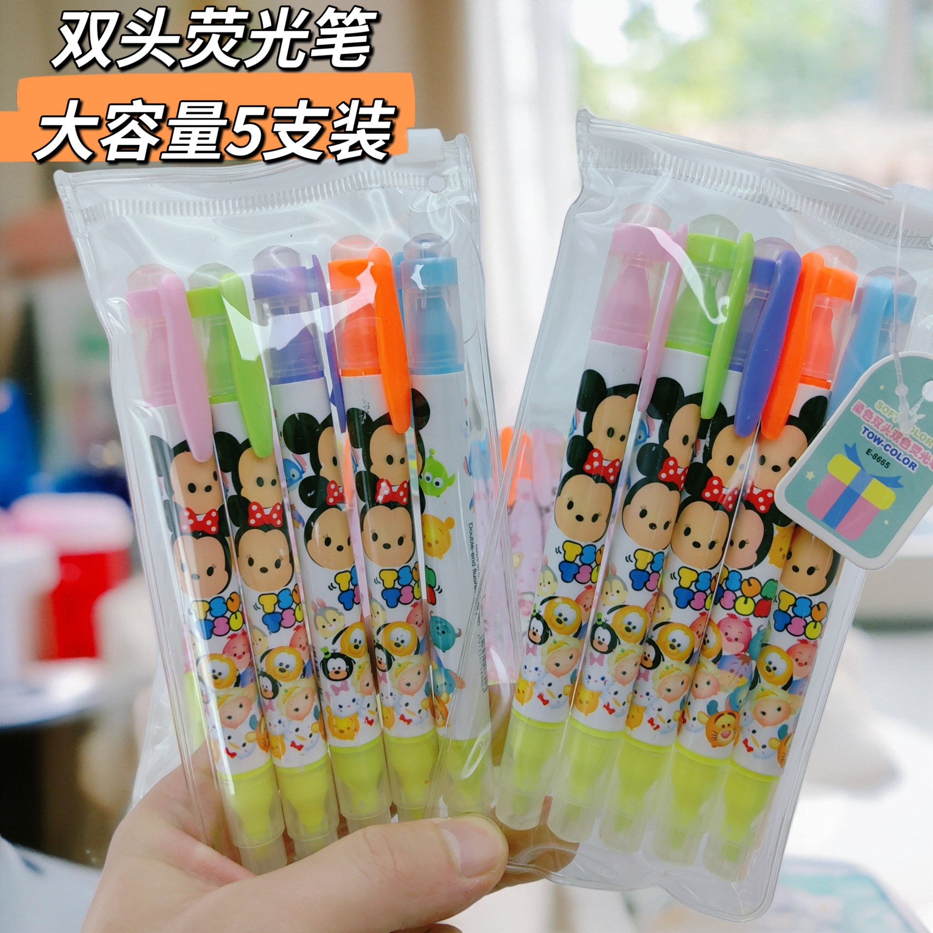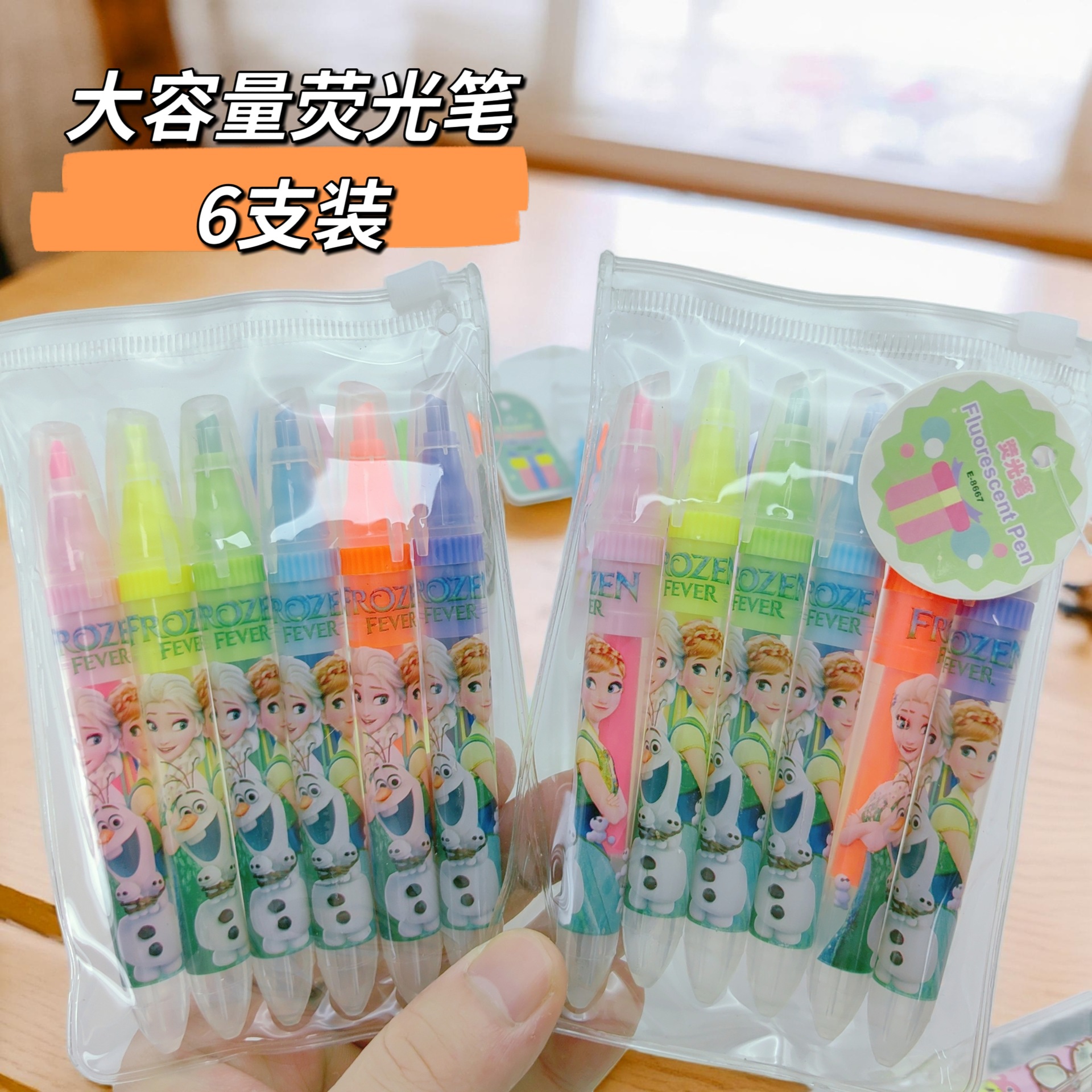 新卡通双头荧光笔袋装6支装彩色儿童绘画学生记号笔标记笔斜头6色