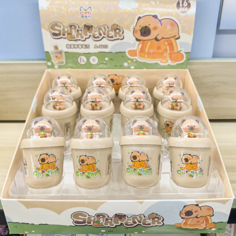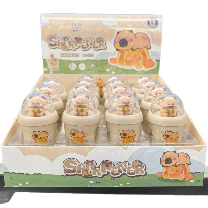 外贸卡皮巴拉奶茶杯单孔卷笔刀学生可爱萌宠水豚饮料杯笔刨铅笔刀
