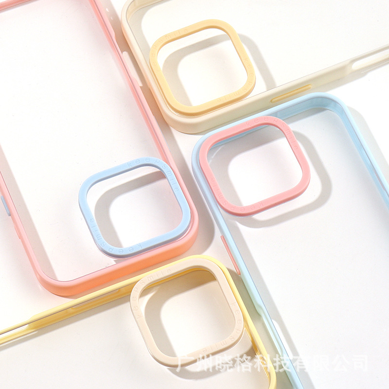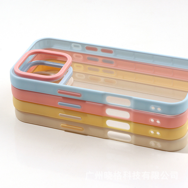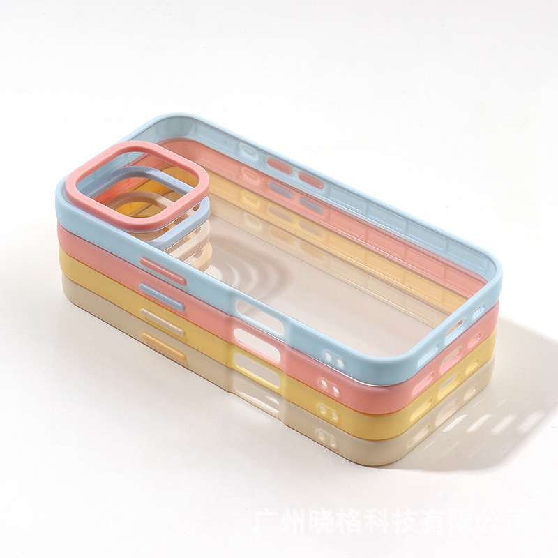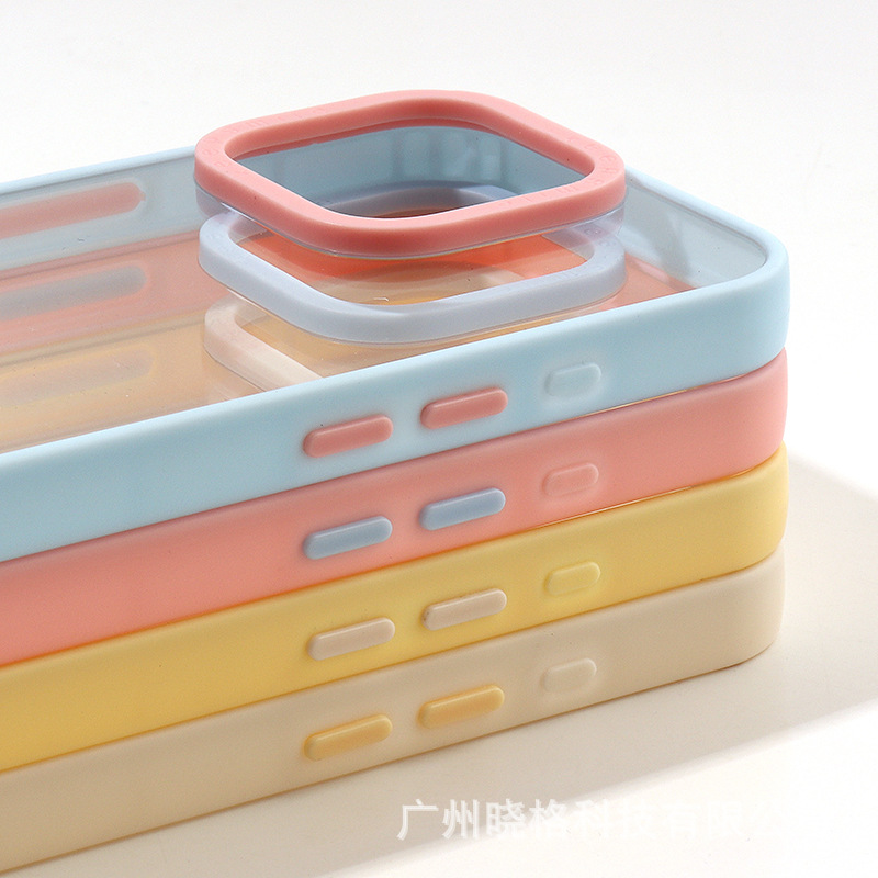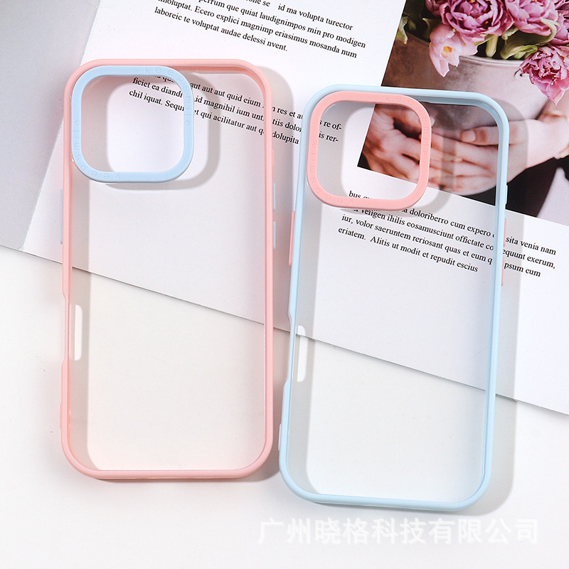 适用iphone17Pro亚克力马卡龙撞色手机壳苹果16/15滴胶DIY凹槽