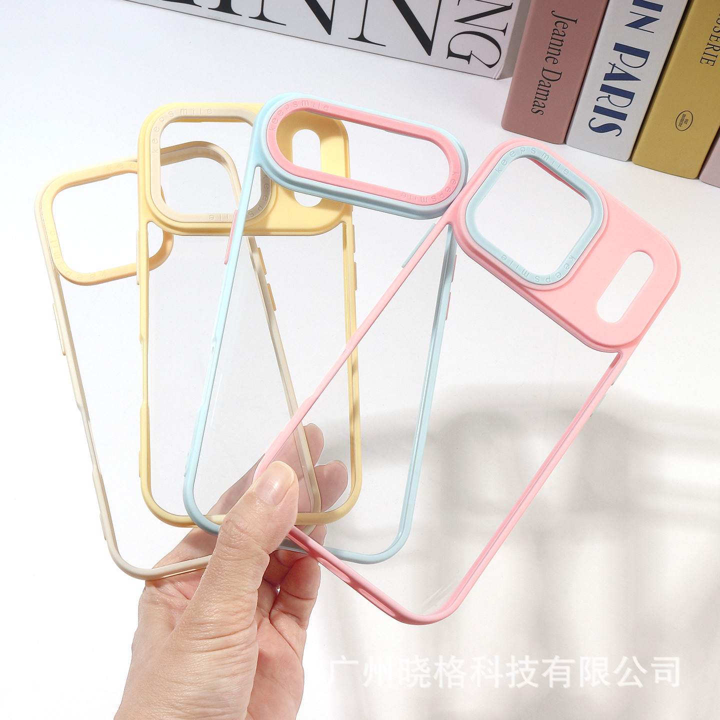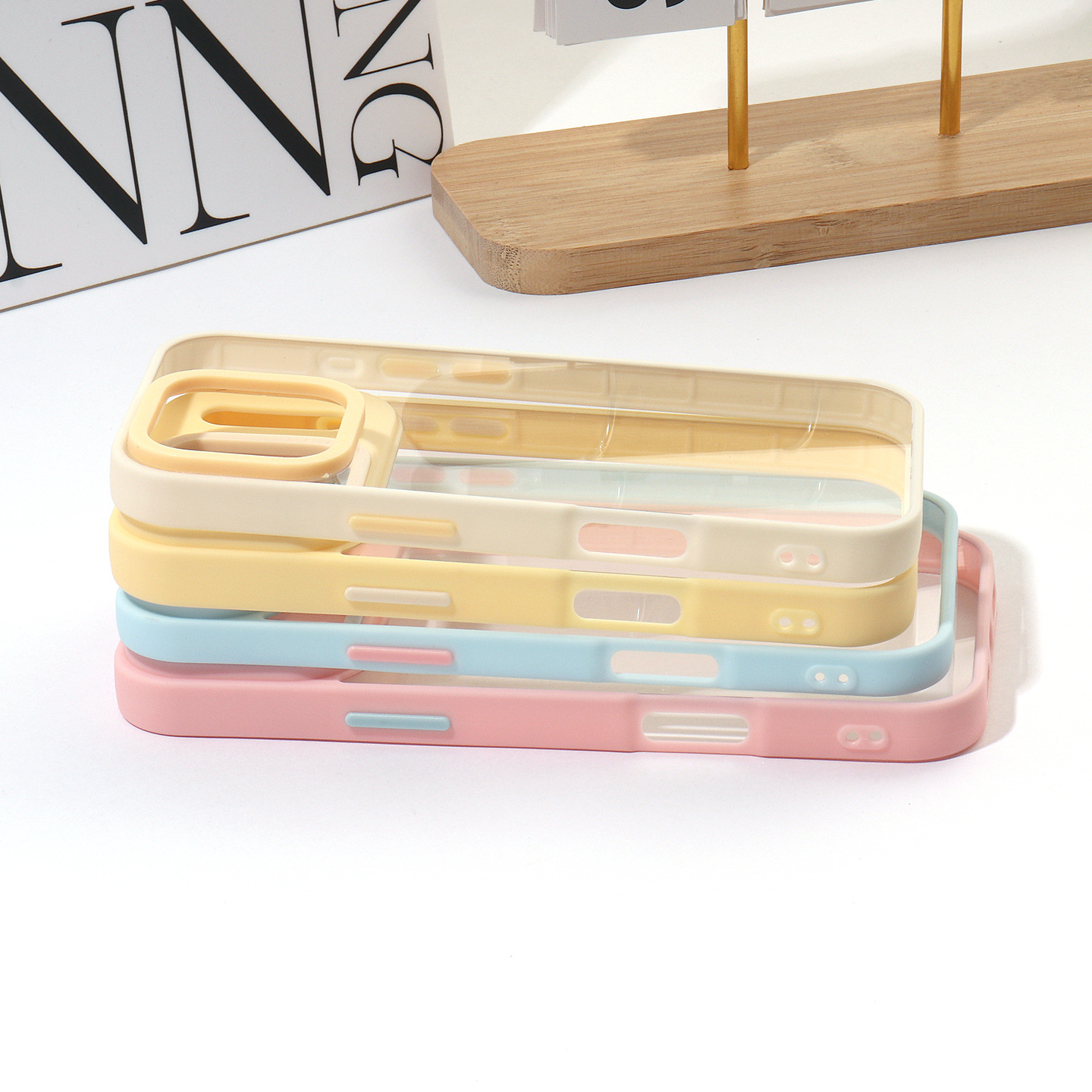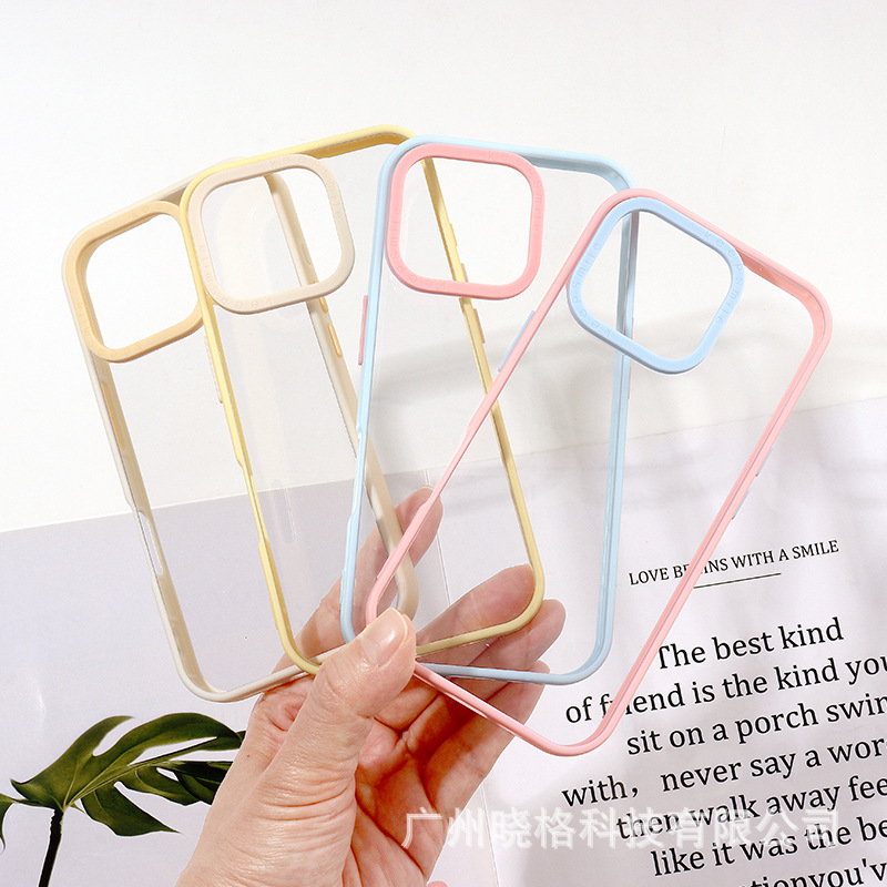 适用iphone17Pro亚克力马卡龙撞色手机壳苹果16/15滴胶DIY凹槽