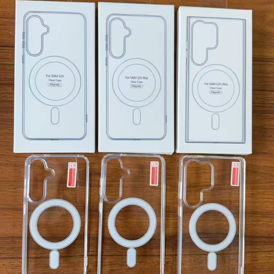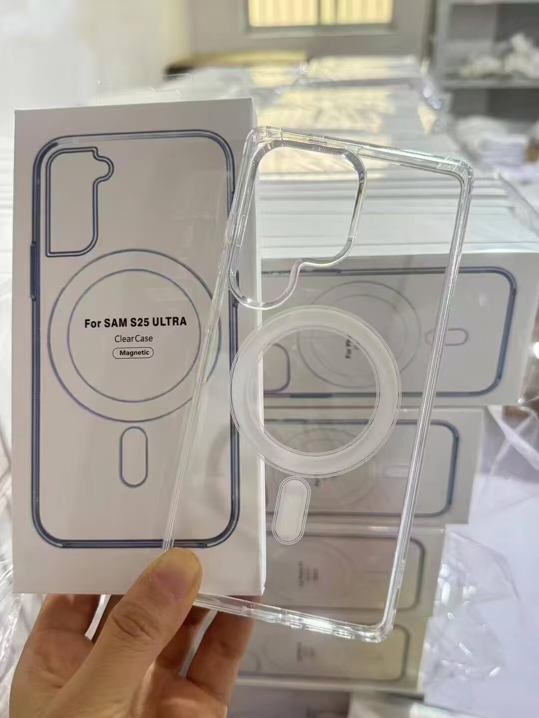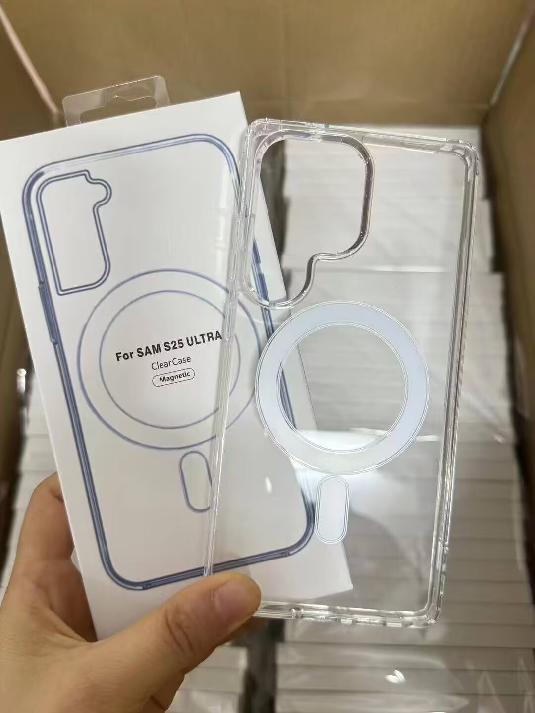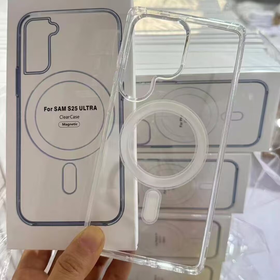 适用三星S23苹果磁吸手机壳S25ULTRA透明华为mate60pro全包亚克力