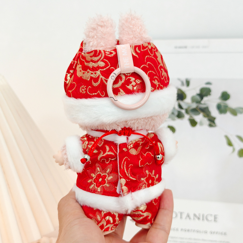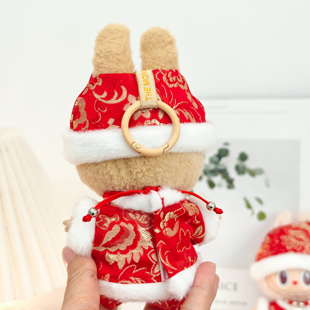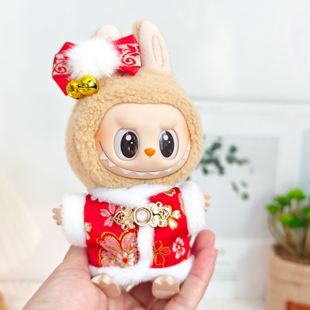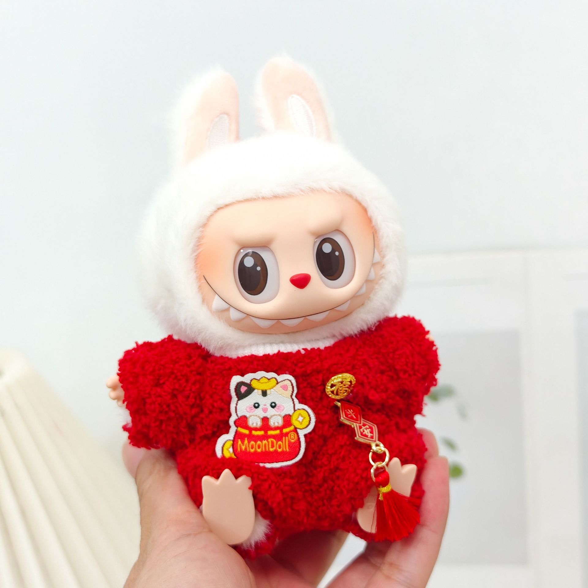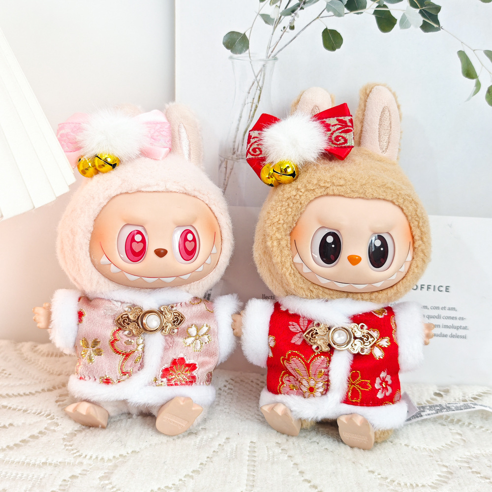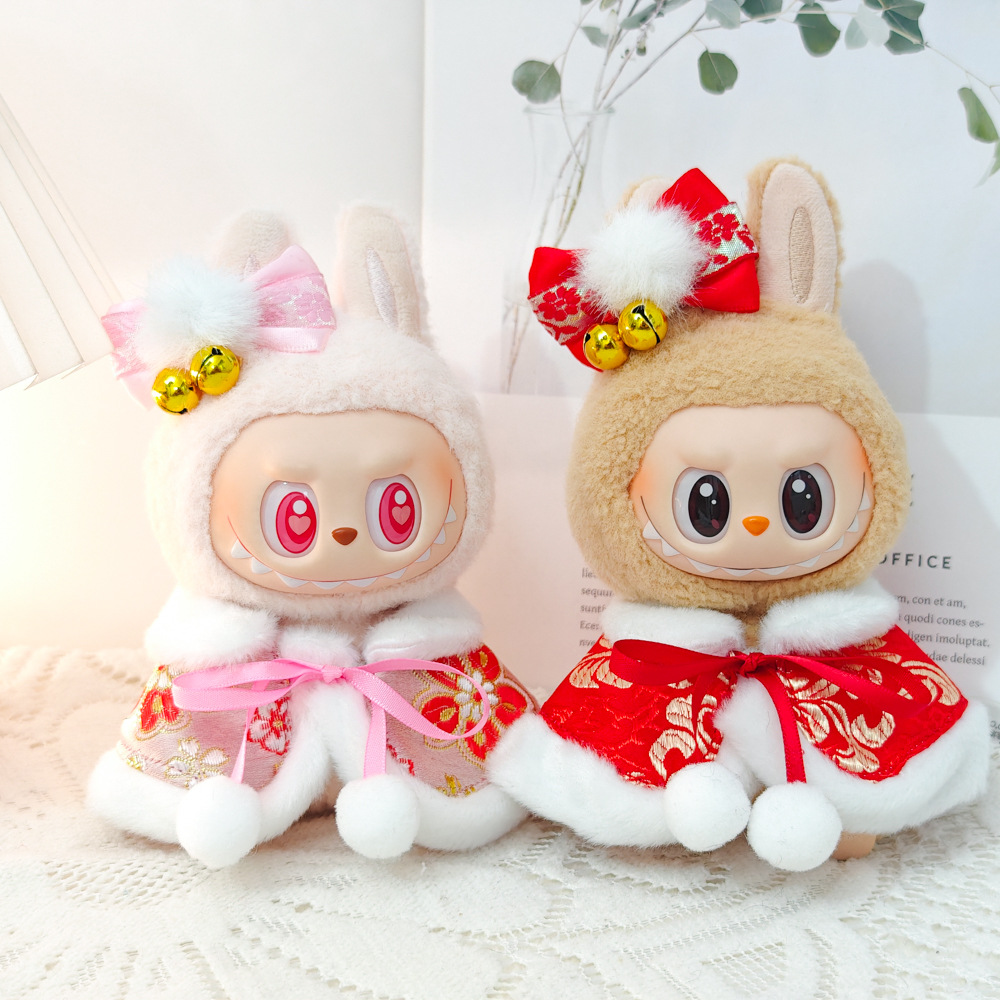 娃衣服一代二代盲盒Labubu挂件元旦节拉布布古风红色新年服装披风