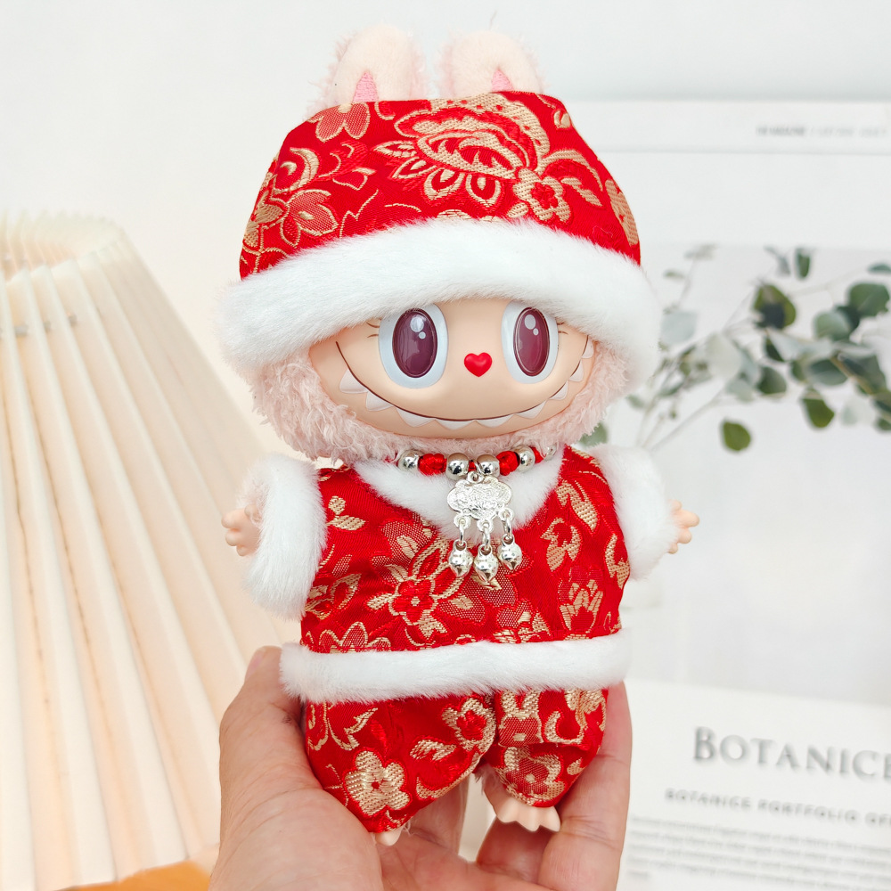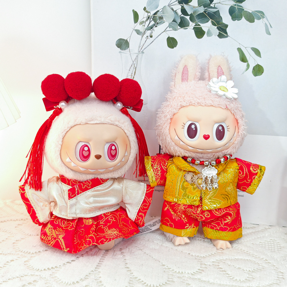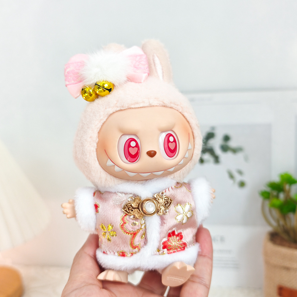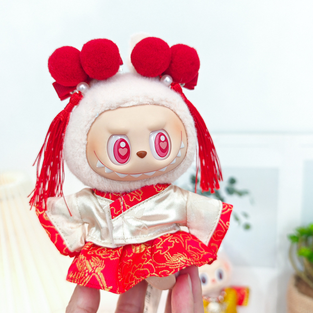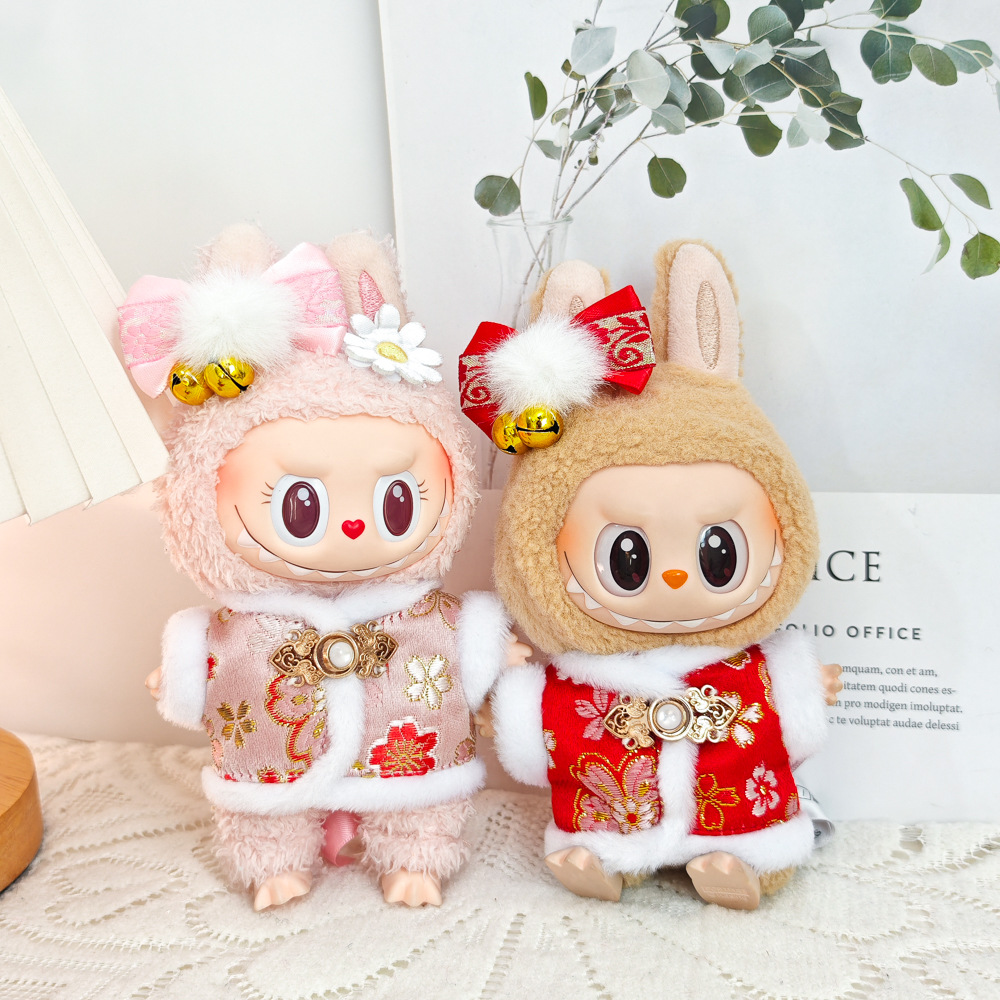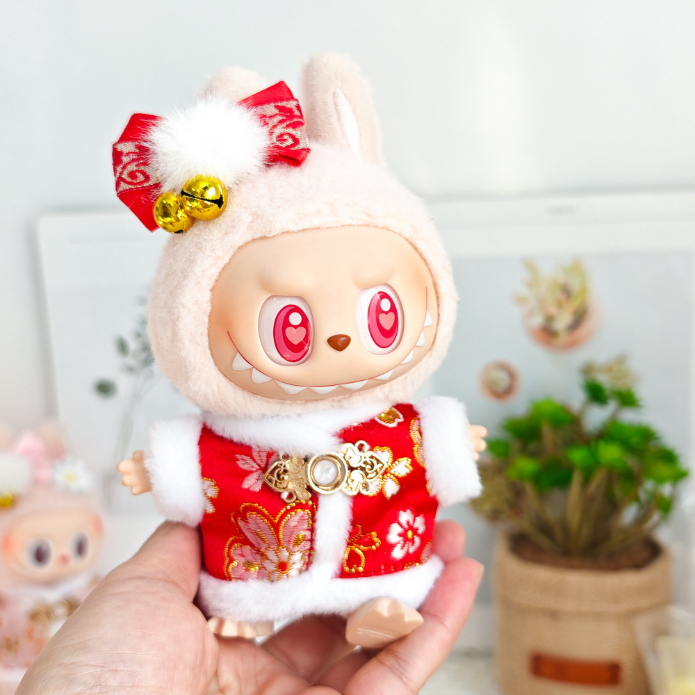 娃衣服一代二代盲盒Labubu挂件元旦节拉布布古风红色新年服装披风