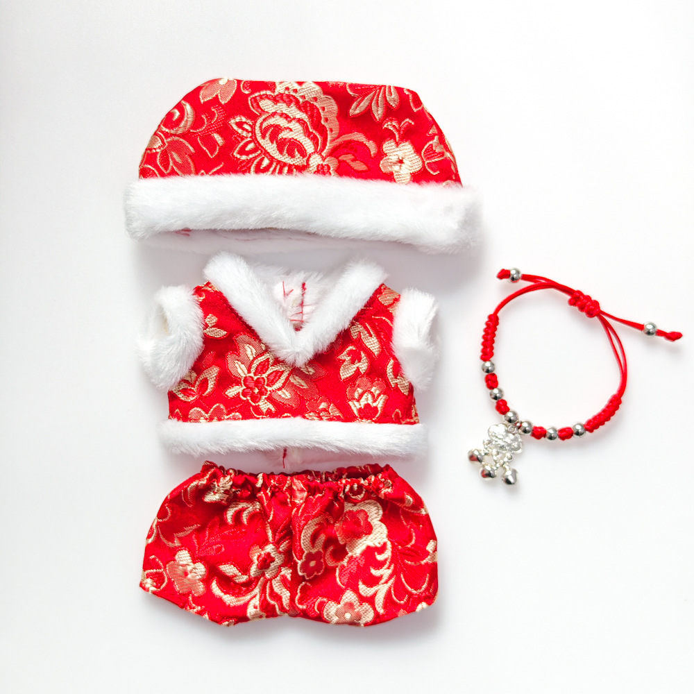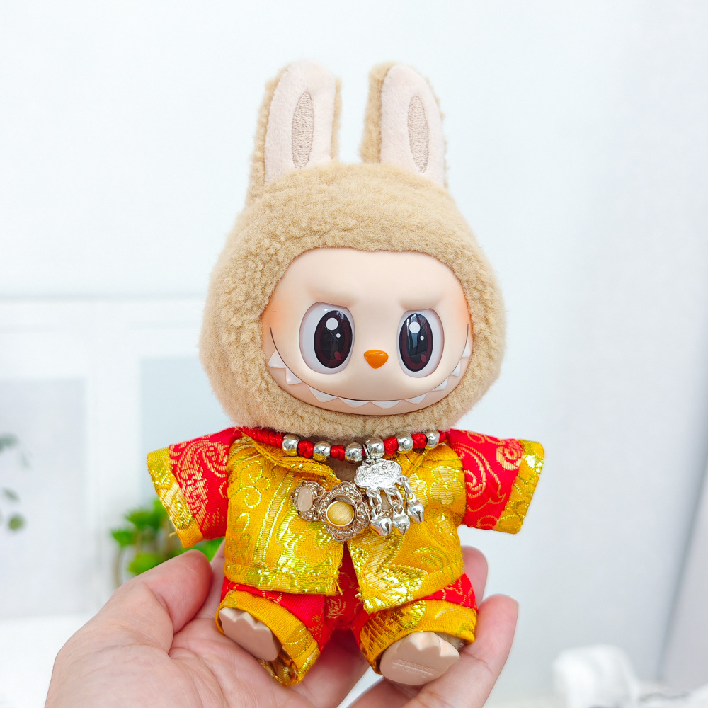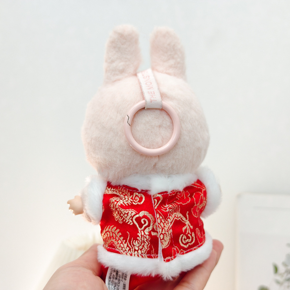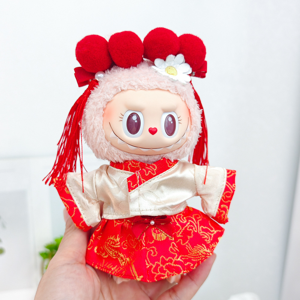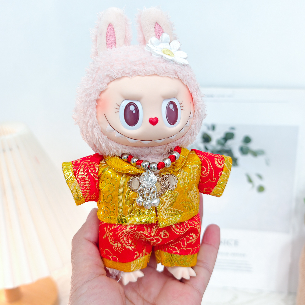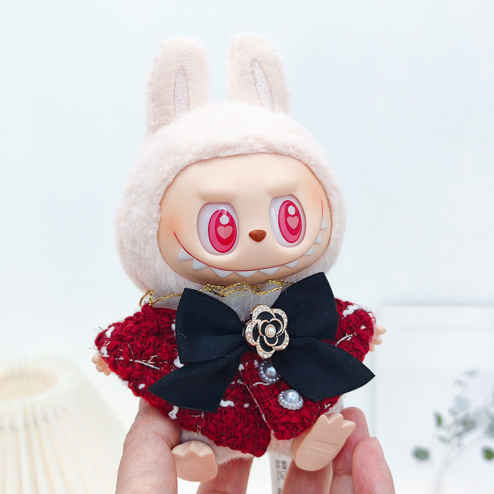 娃衣服一代二代盲盒Labubu挂件元旦节拉布布古风红色新年服装披风