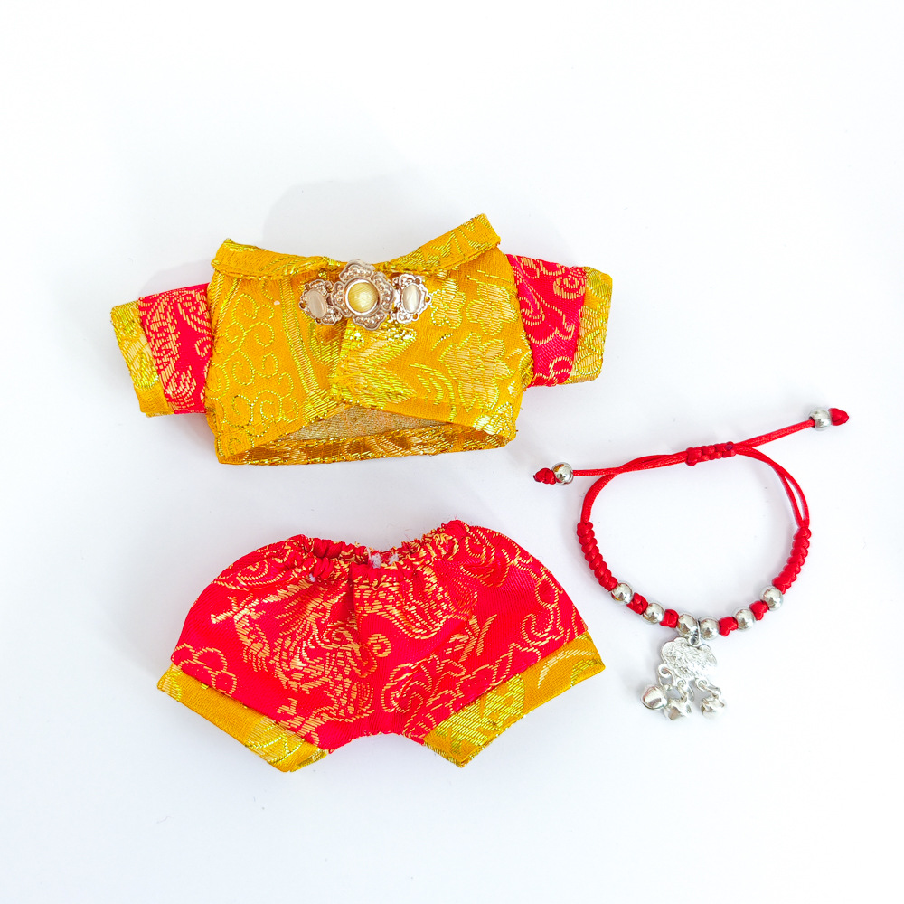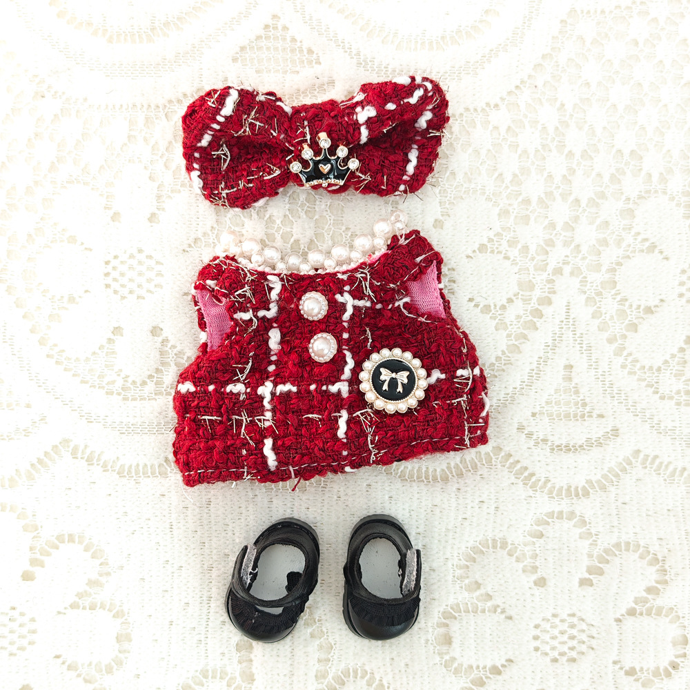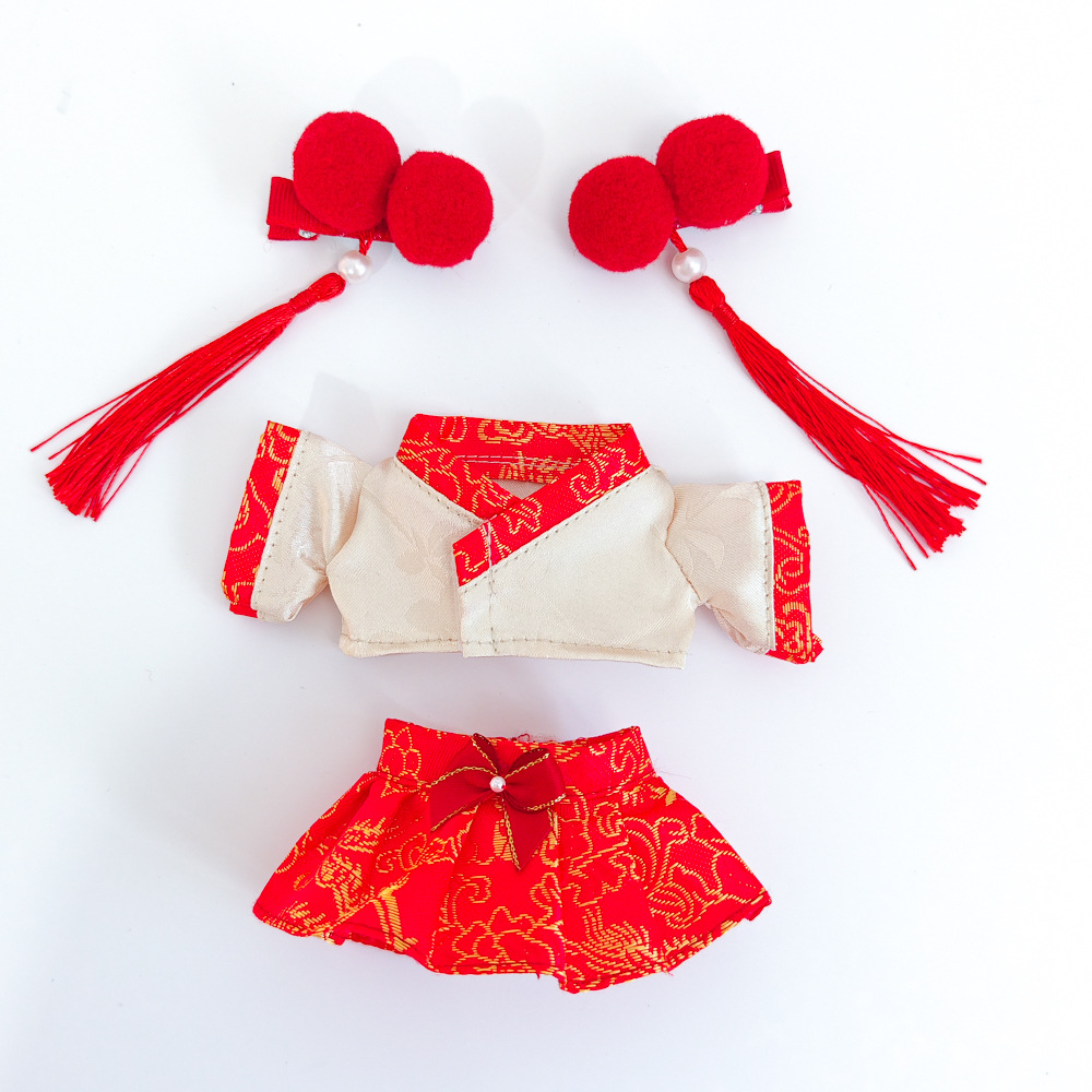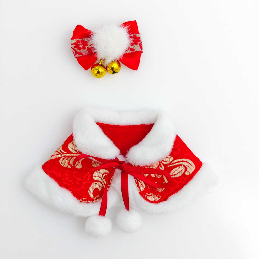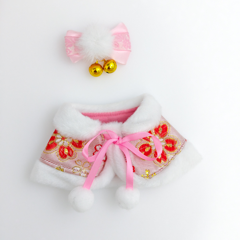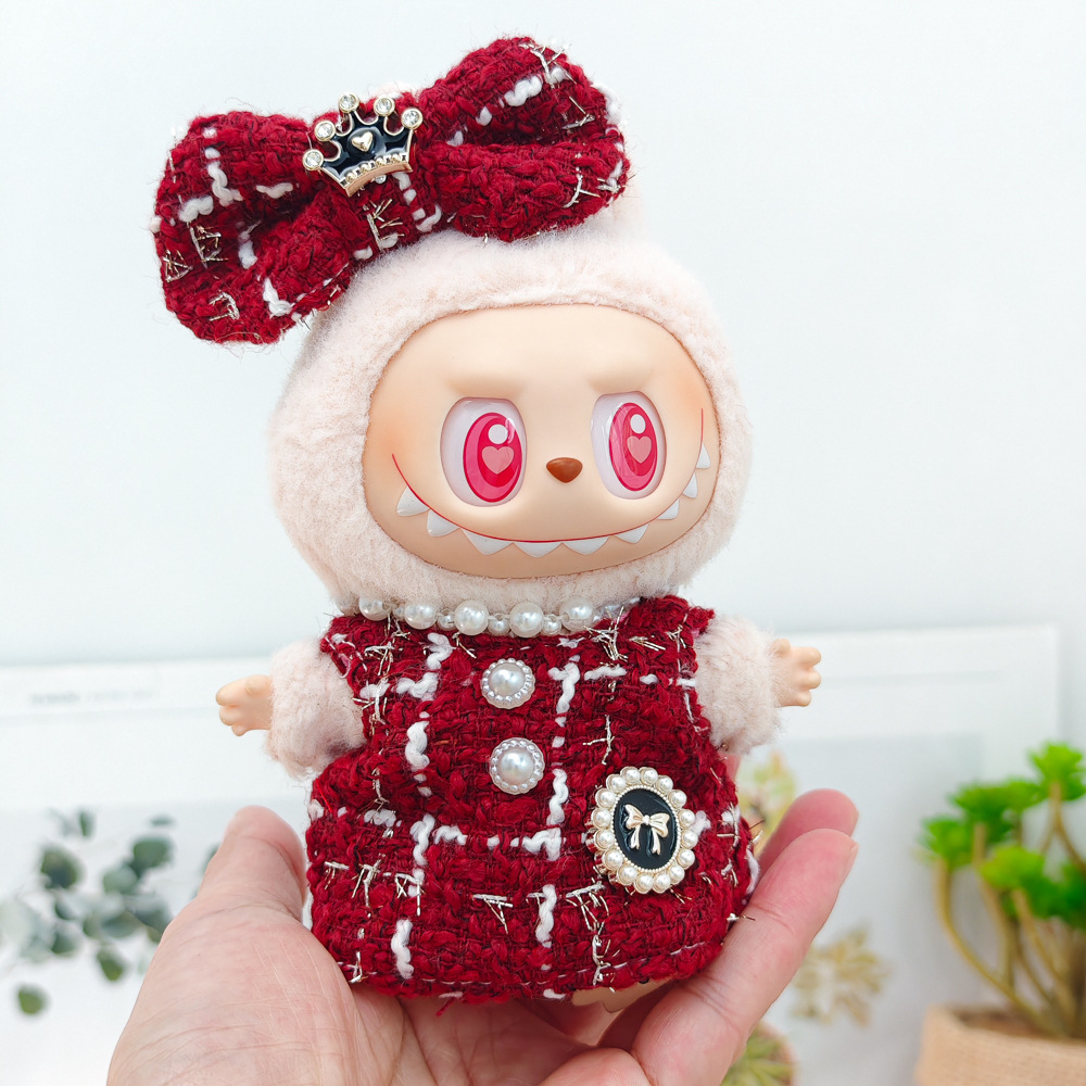 娃衣服一代二代盲盒Labubu挂件元旦节拉布布古风红色新年服装披风