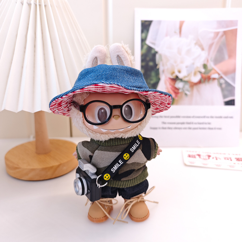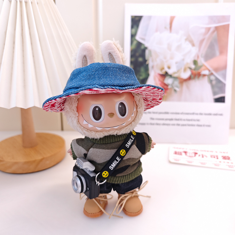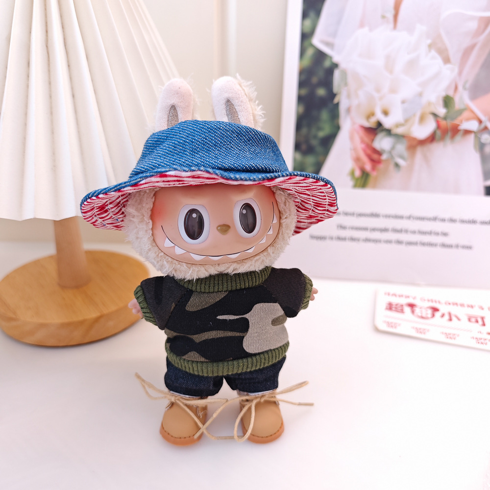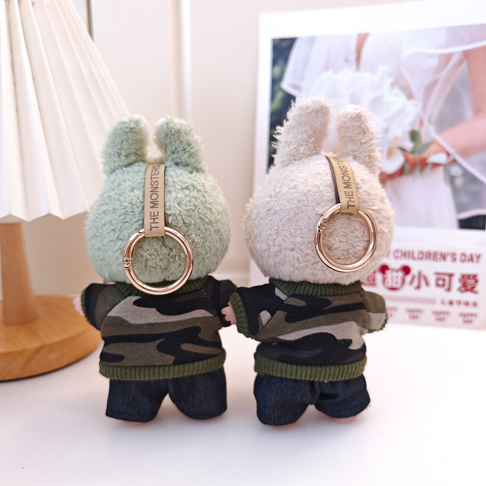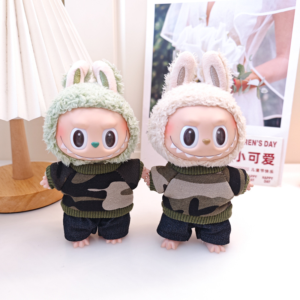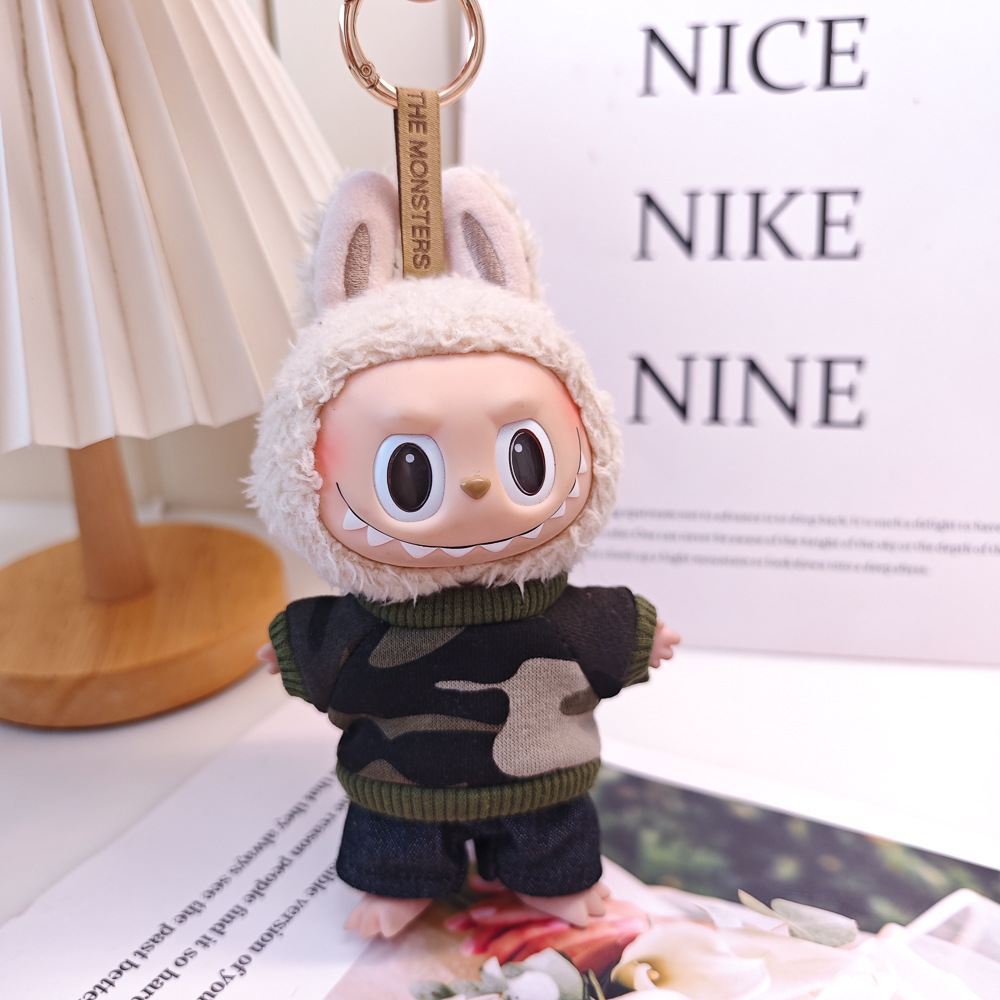labubu心动马卡龙17cm搪胶毛绒公仔挂件衣服迷彩卫衣着替娃衣配件