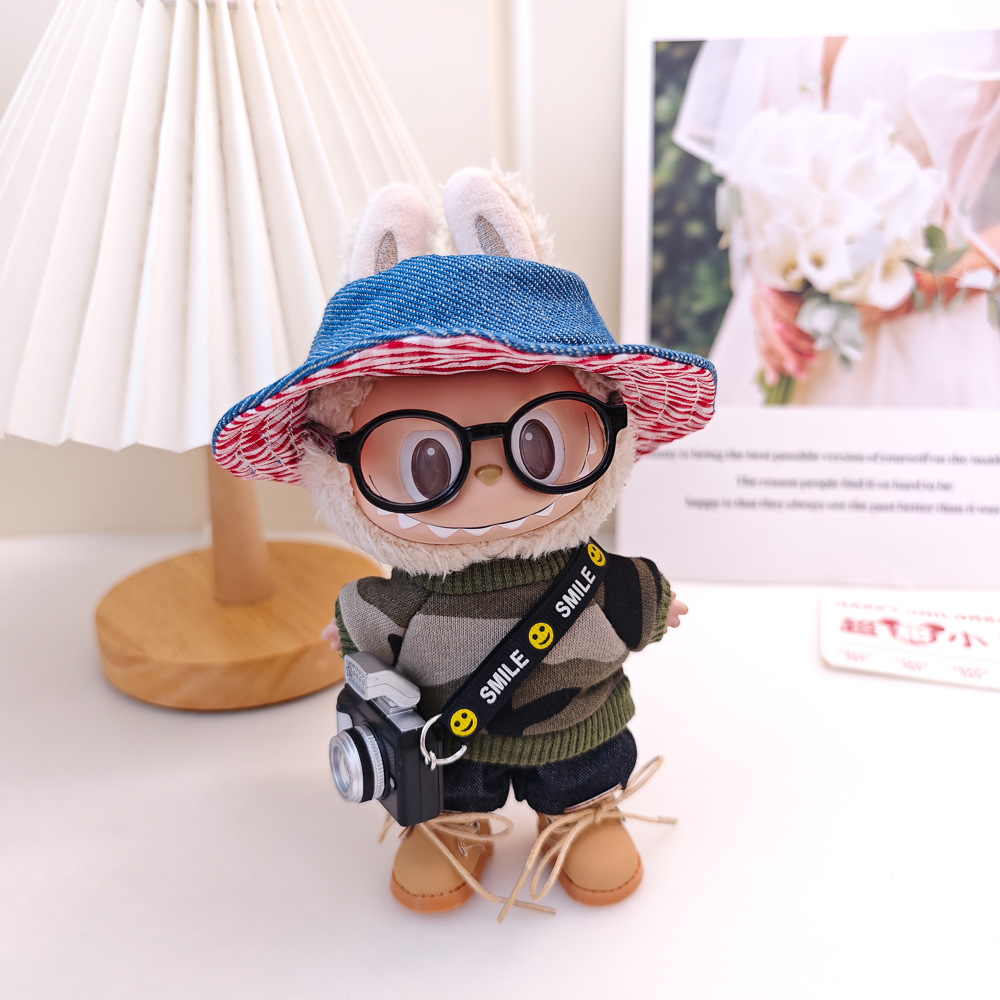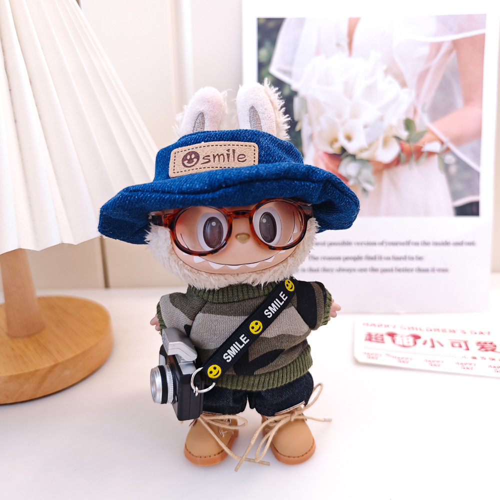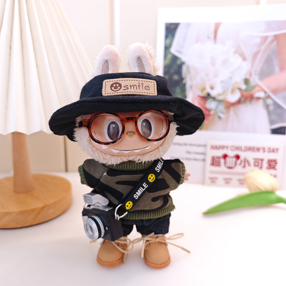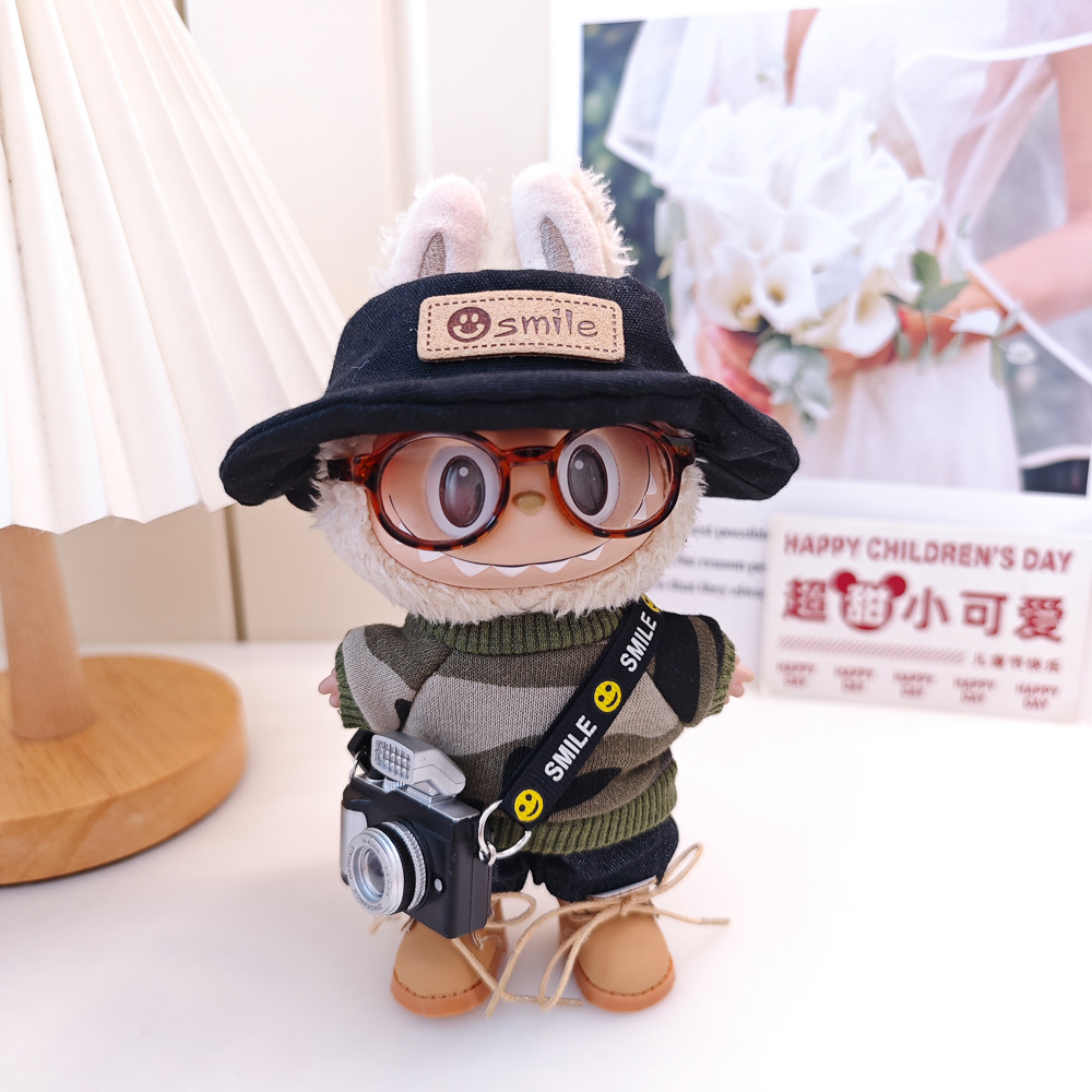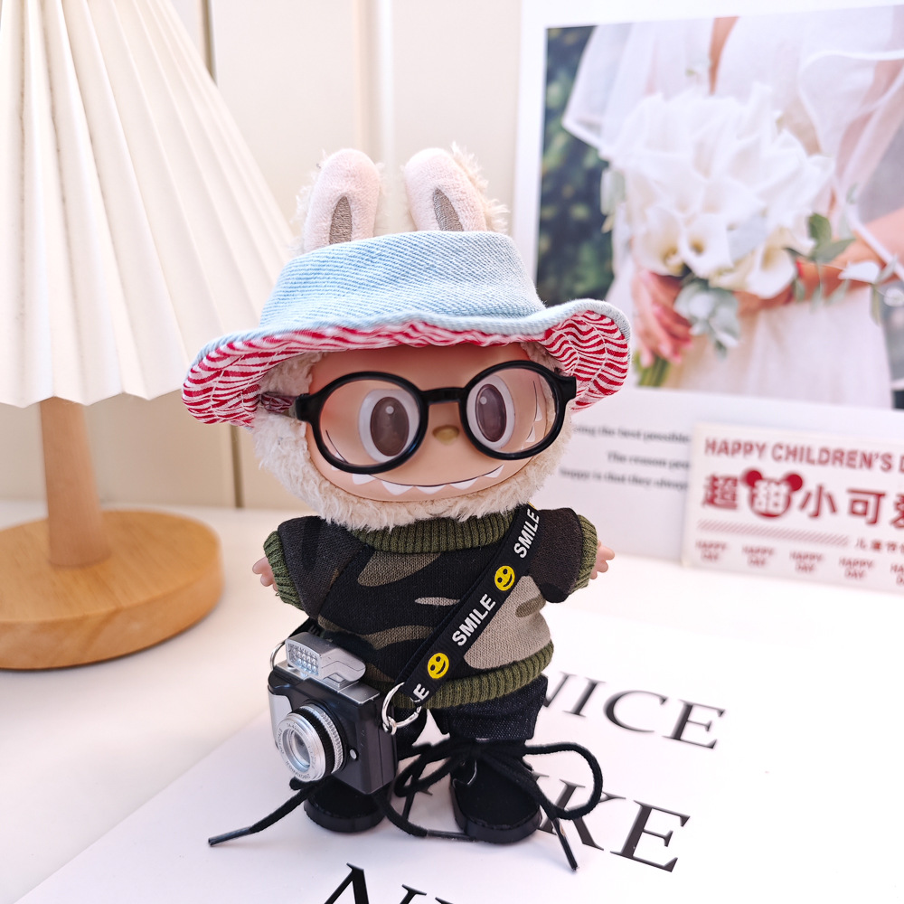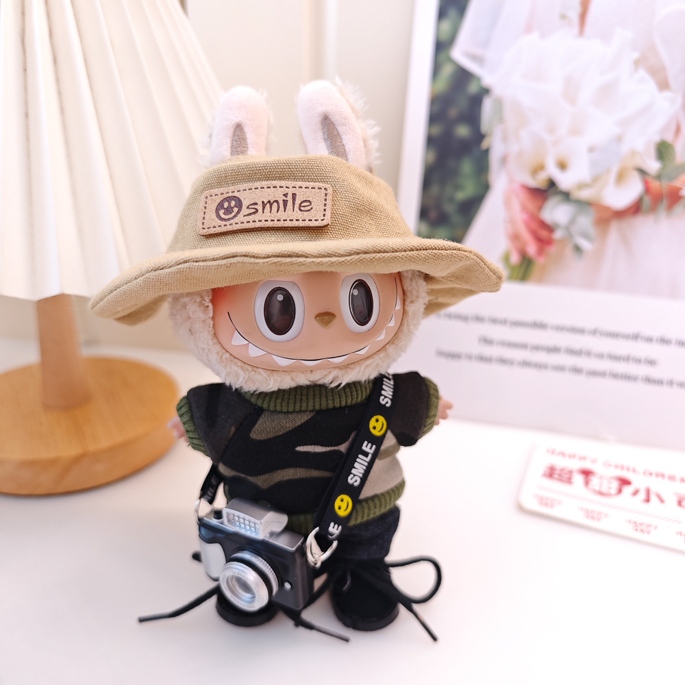 labubu心动马卡龙17cm搪胶毛绒公仔挂件衣服迷彩卫衣着替娃衣配件