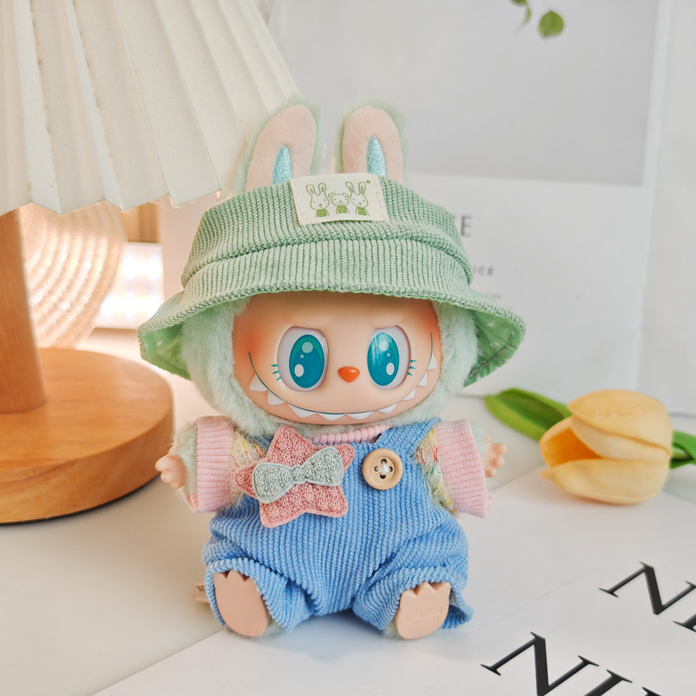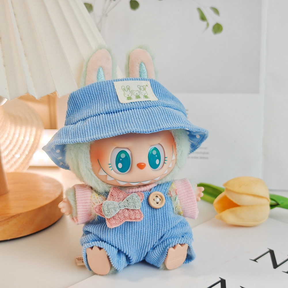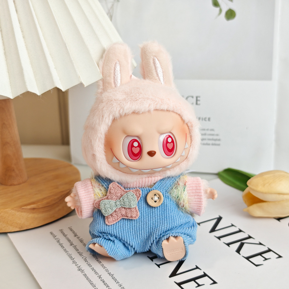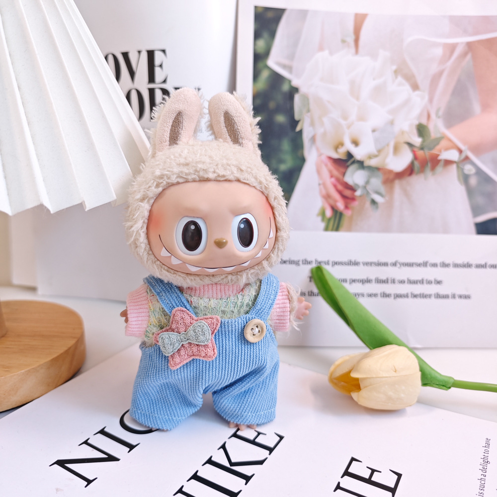 17cm拉布布心动labubu搪胶毛绒公仔挂件衣服背带裤套装着替娃衣鞋
