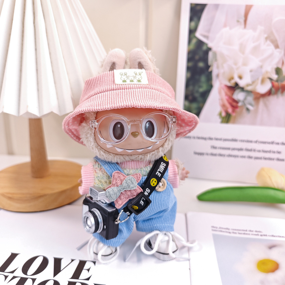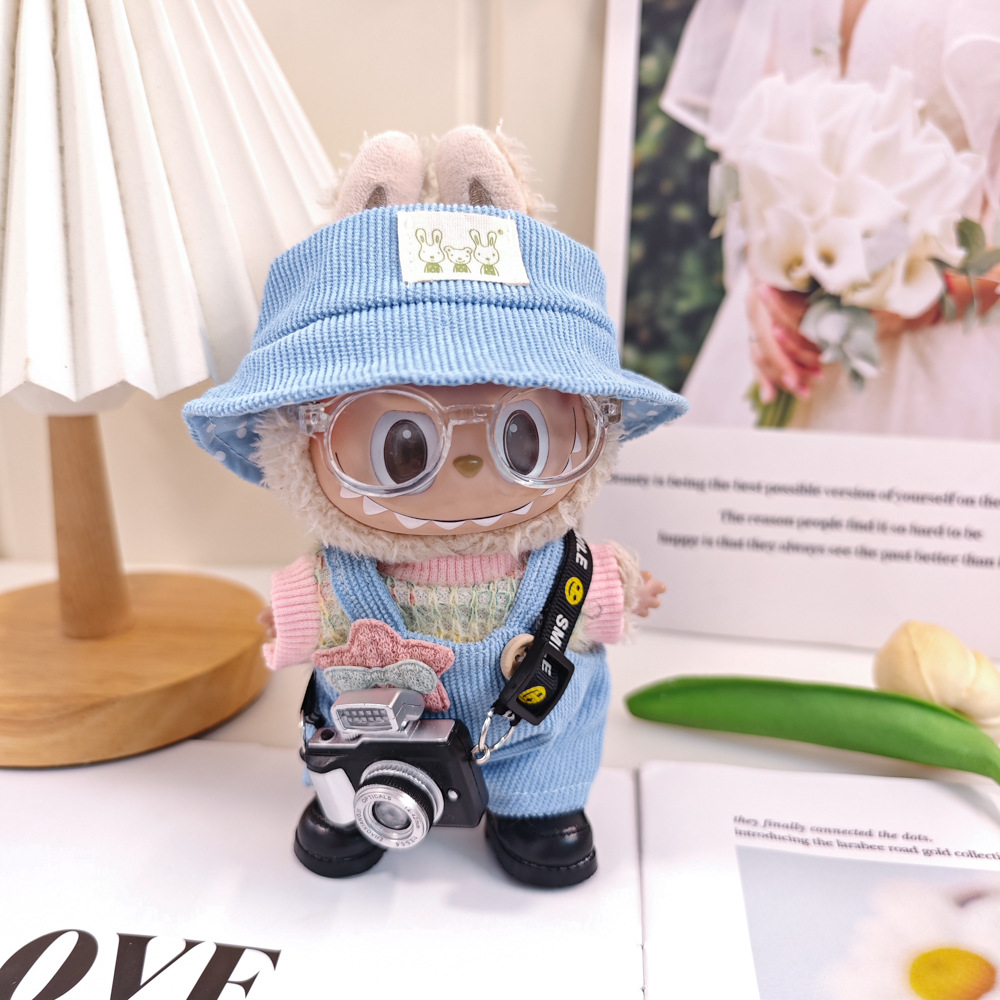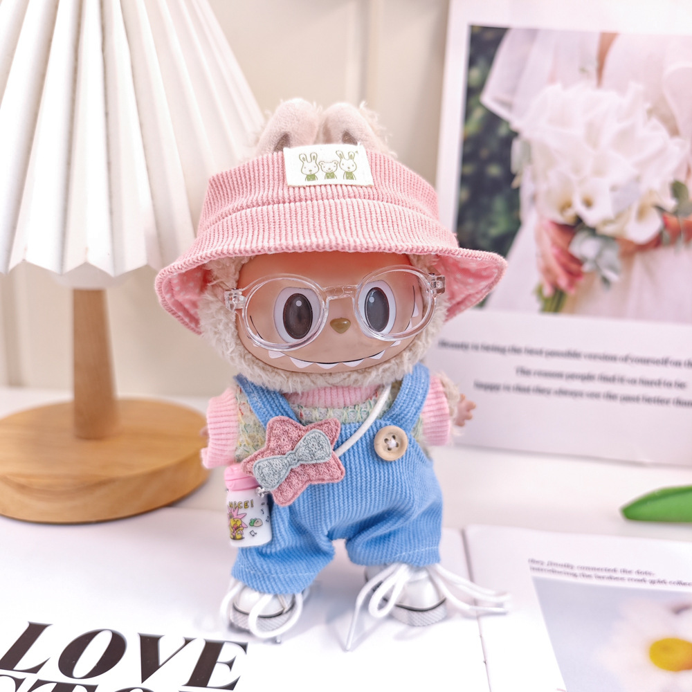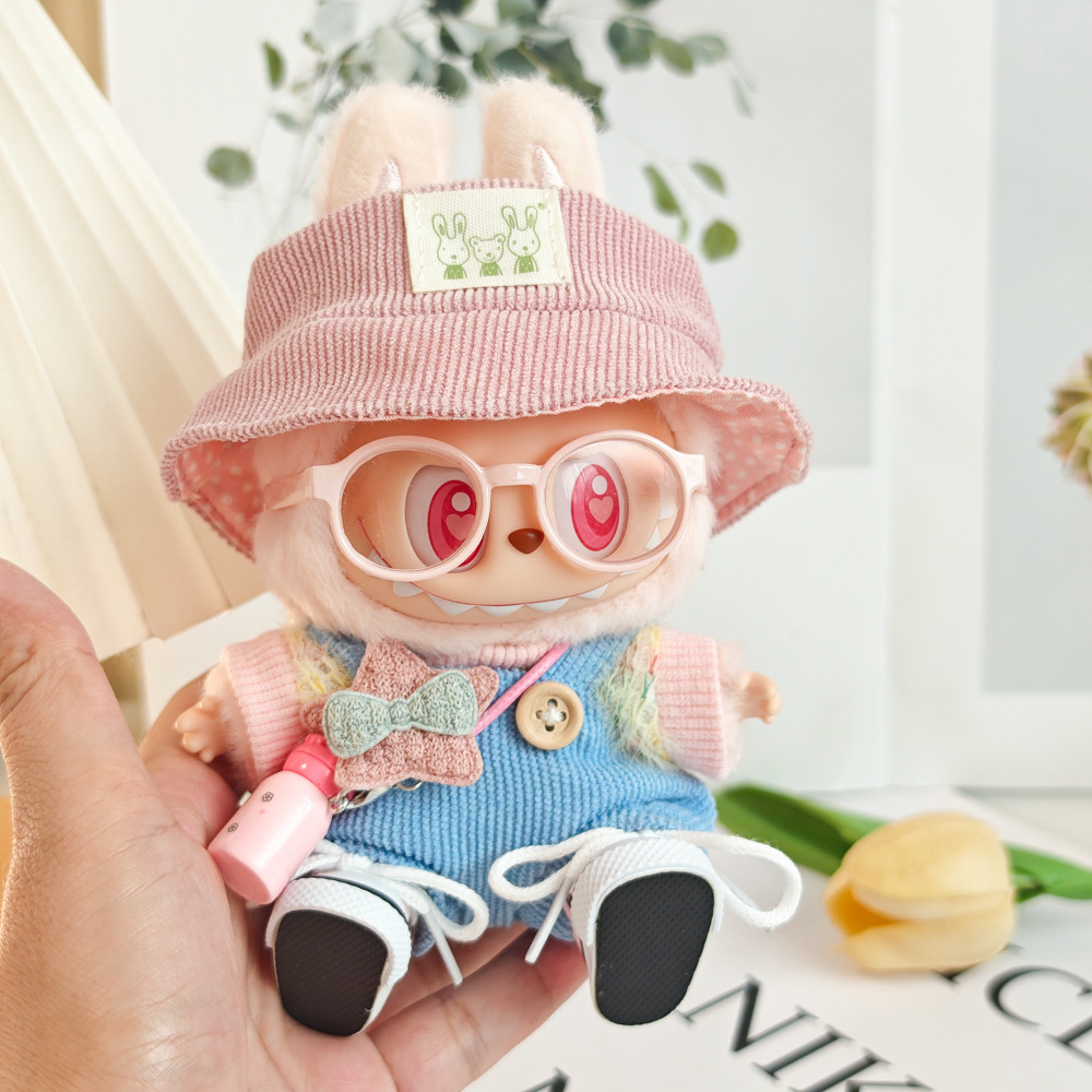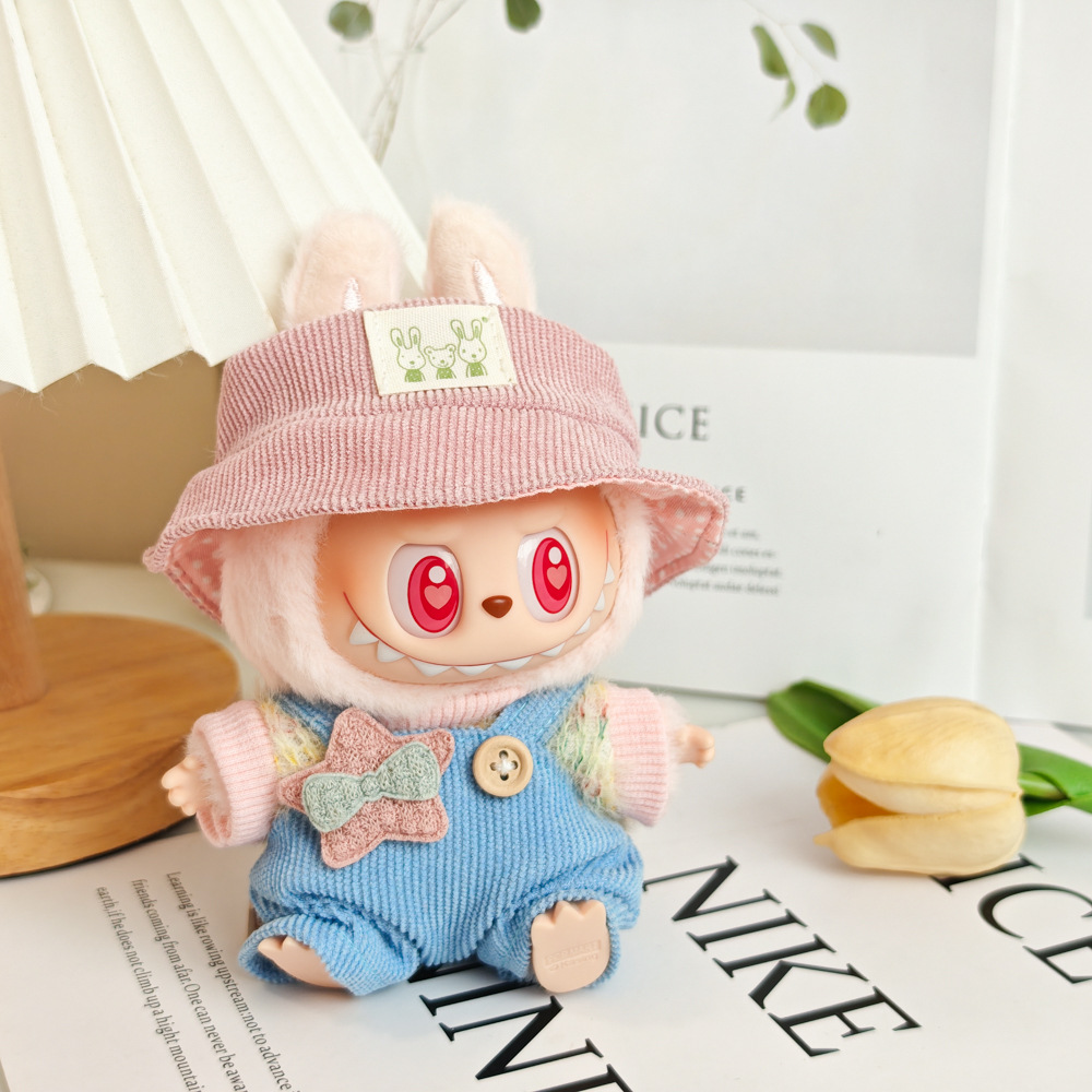 17cm拉布布心动labubu搪胶毛绒公仔挂件衣服背带裤套装着替娃衣鞋