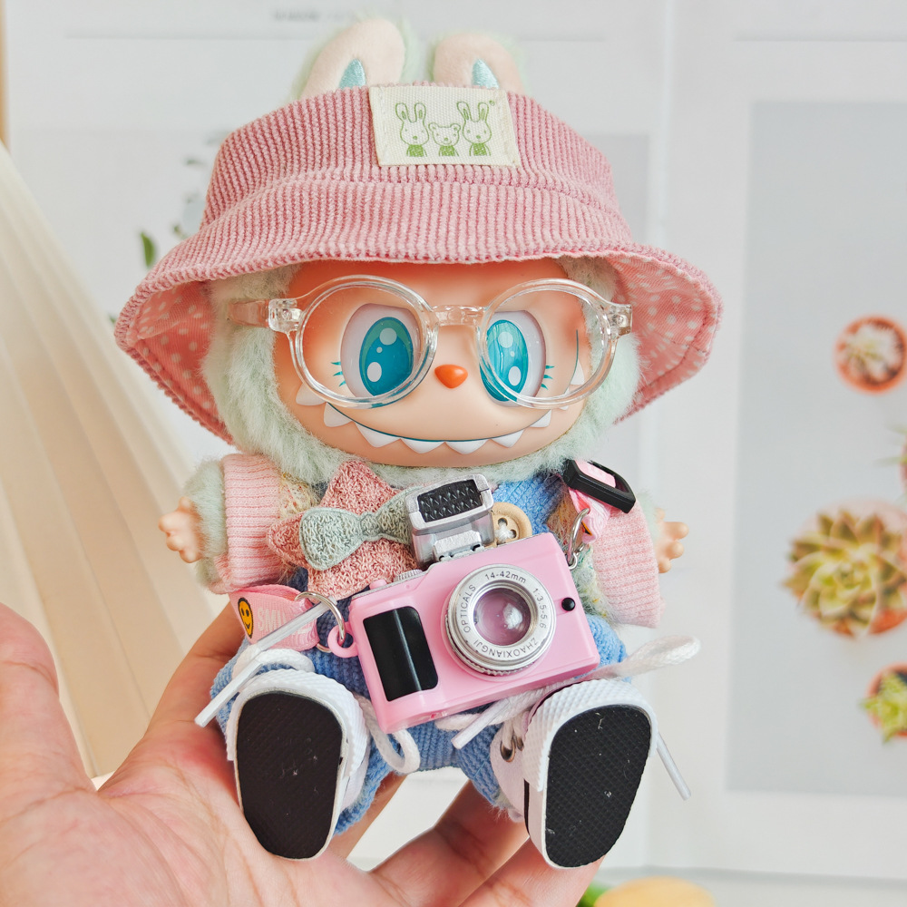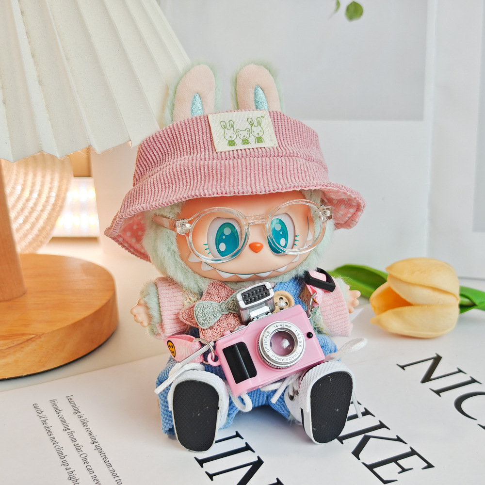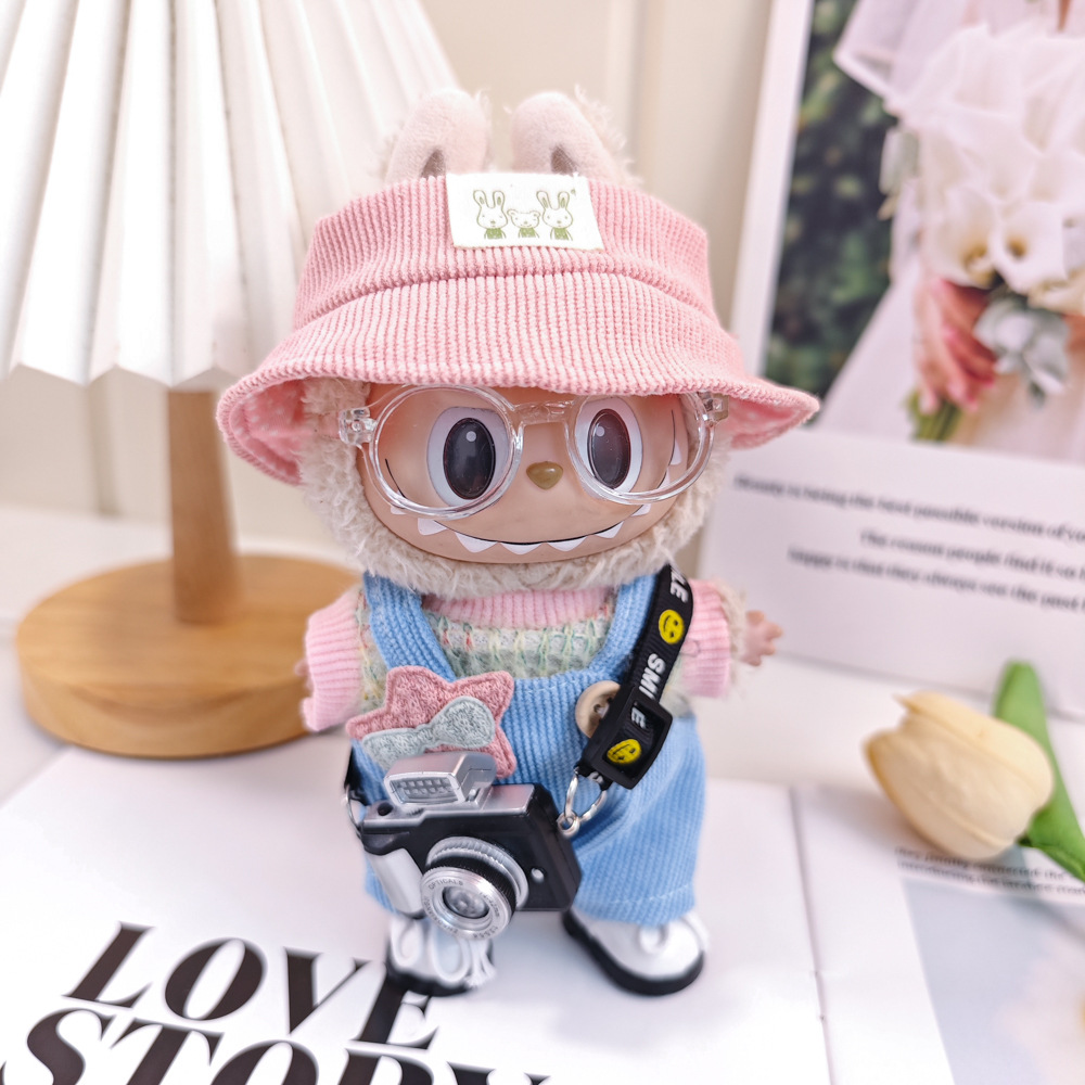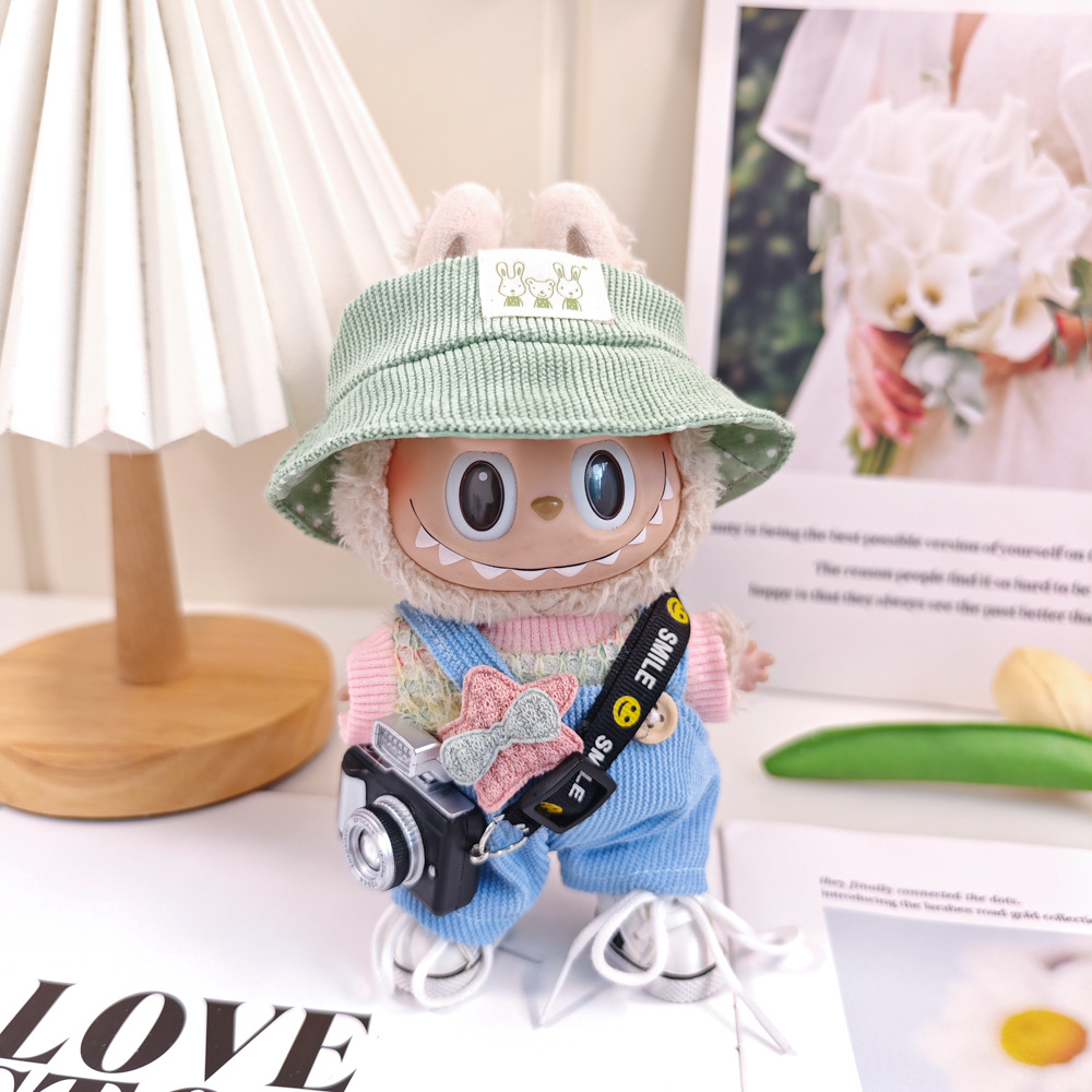 17cm拉布布心动labubu搪胶毛绒公仔挂件衣服背带裤套装着替娃衣鞋