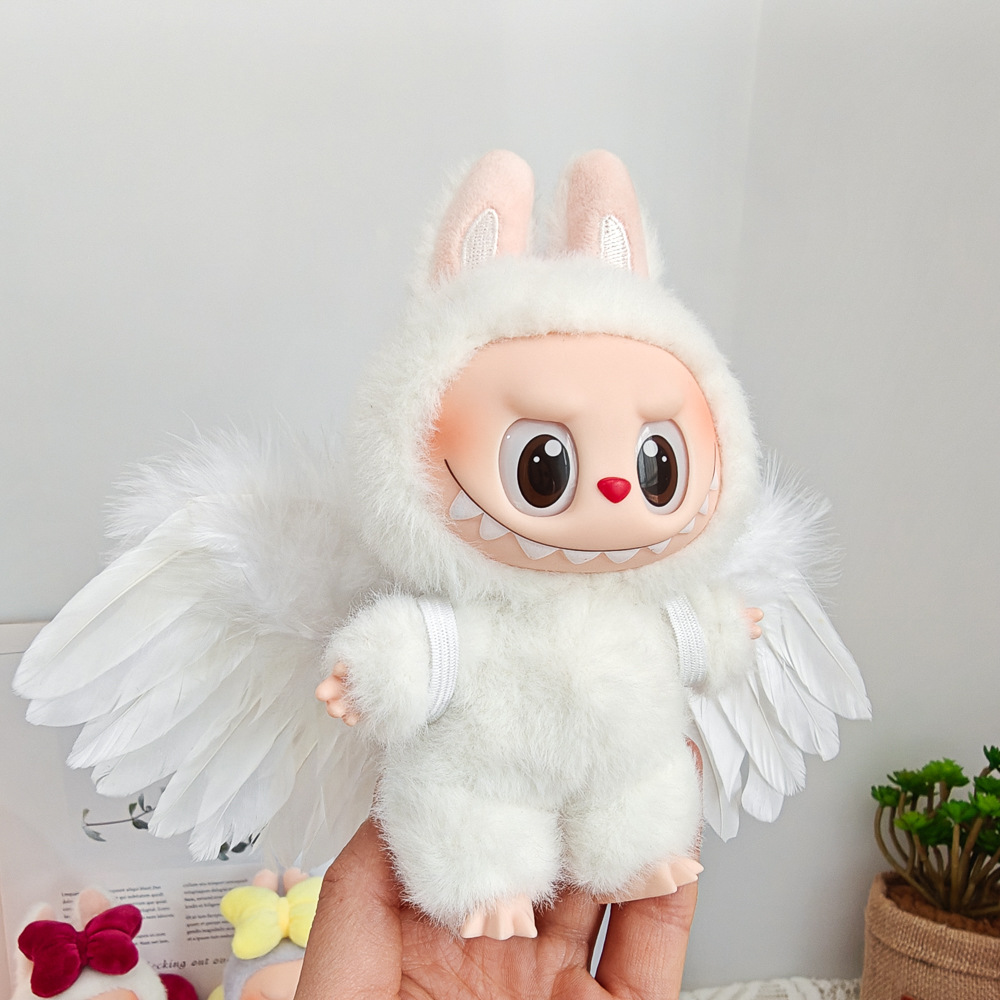 一二代三代拉布布心动马卡龙搪胶脸坐坐盲盒派对黑白天使羽毛翅膀