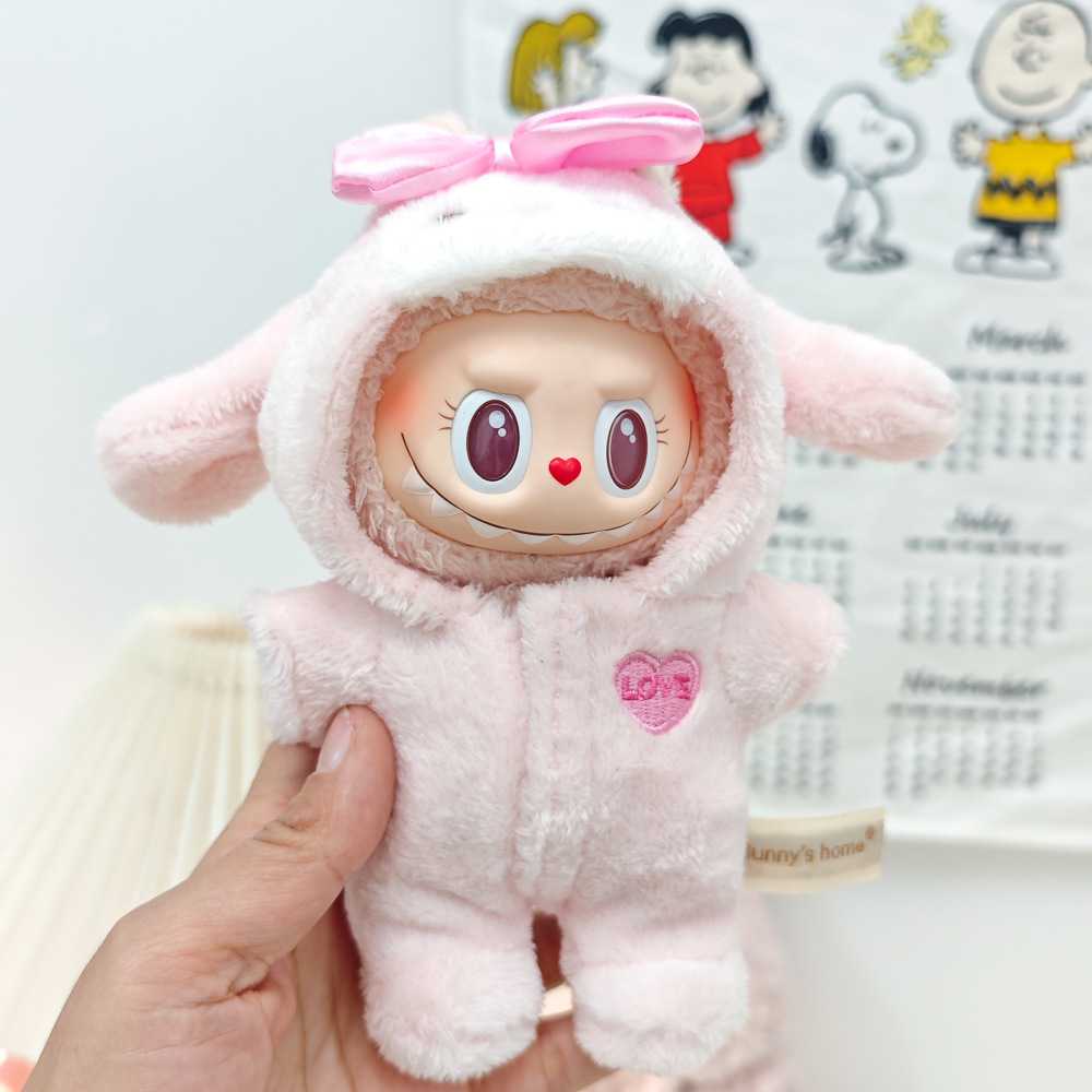 17cm拉布布娃衣服LABUBU盲盒坐坐 一二三代美乐蒂小兔子连体服
