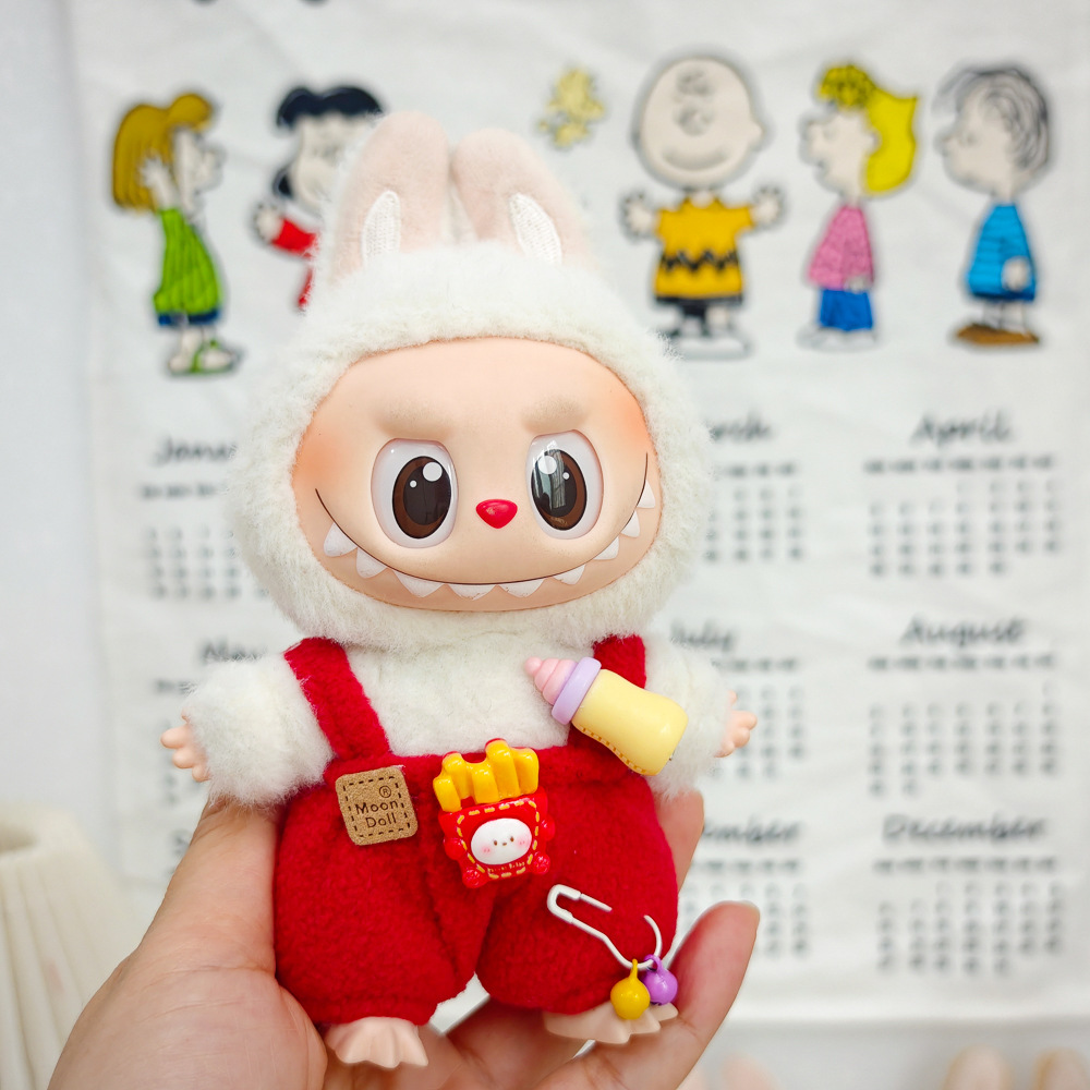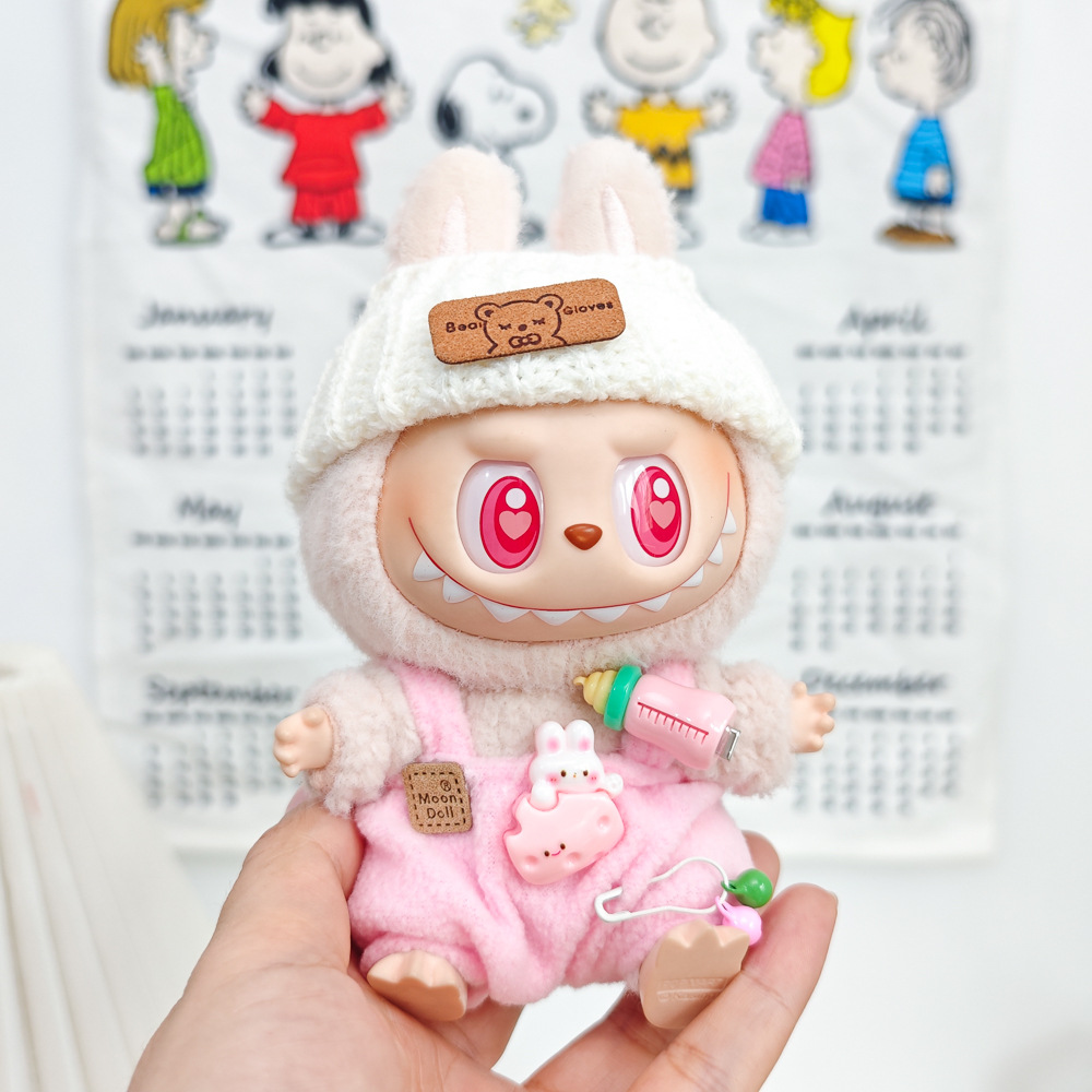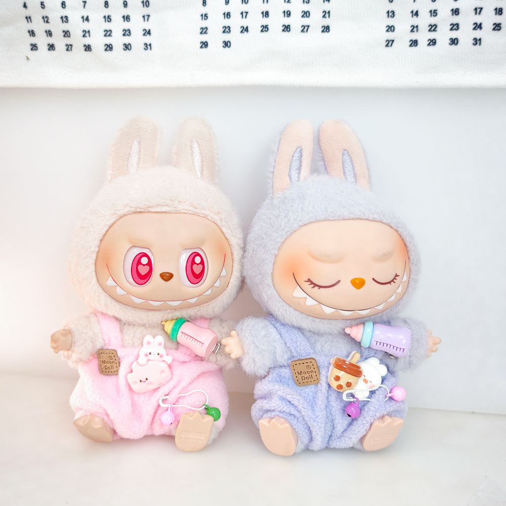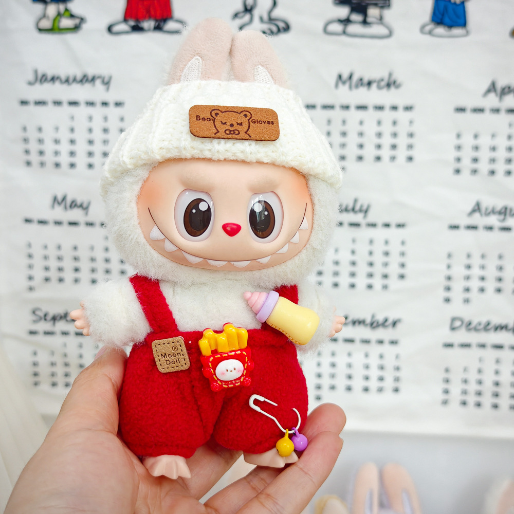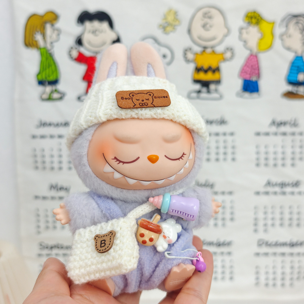 17厘米拉布布钥匙扣挂件娃衣服可爱labubu奶瓶背带裤毛线跨包套装