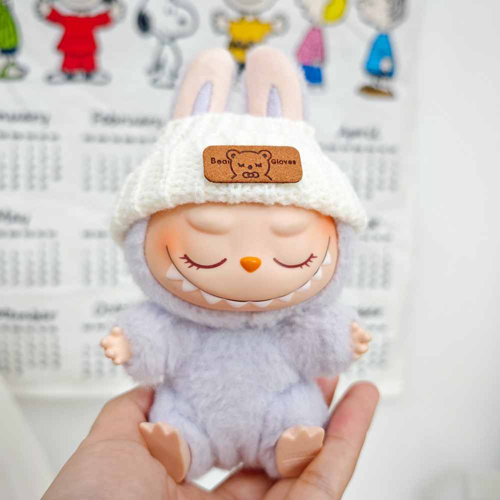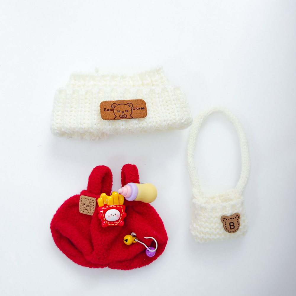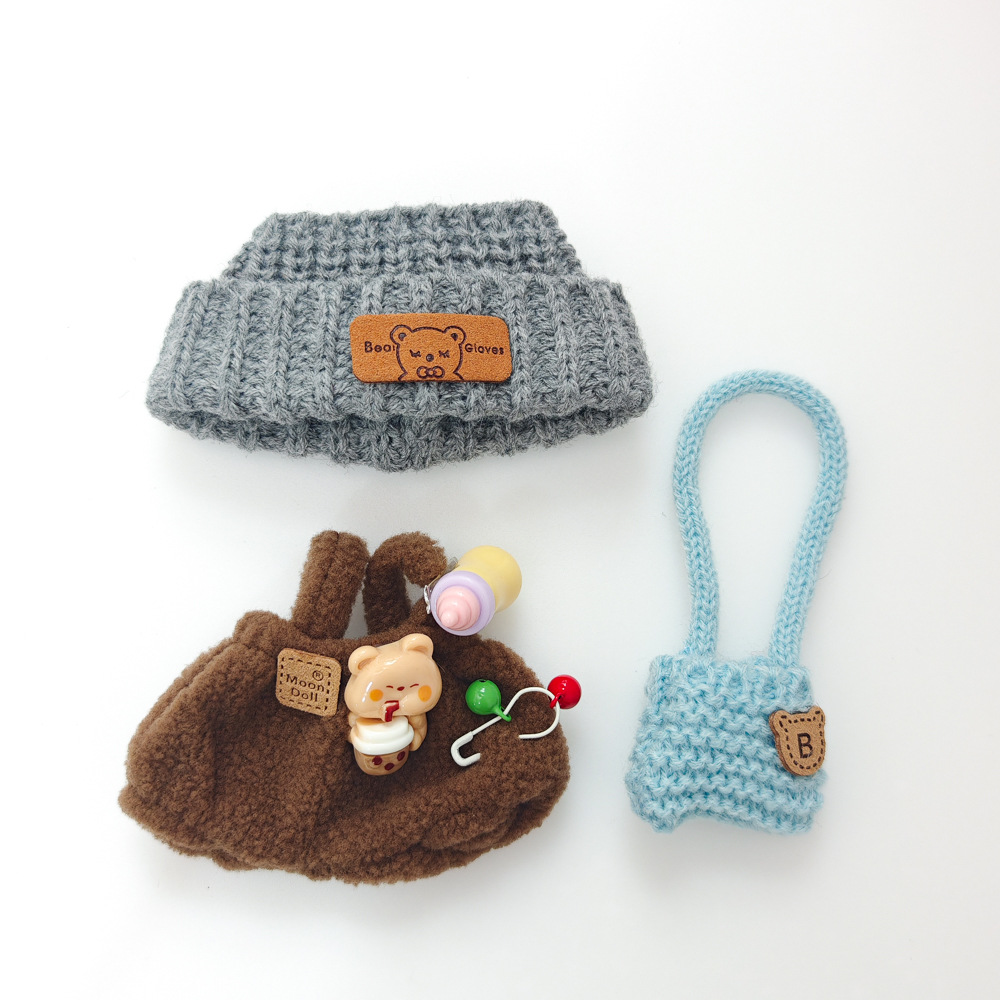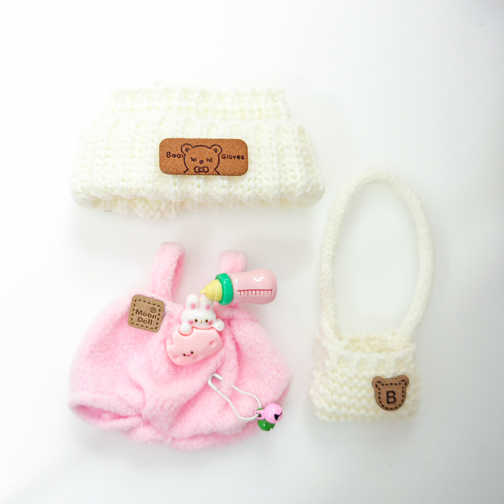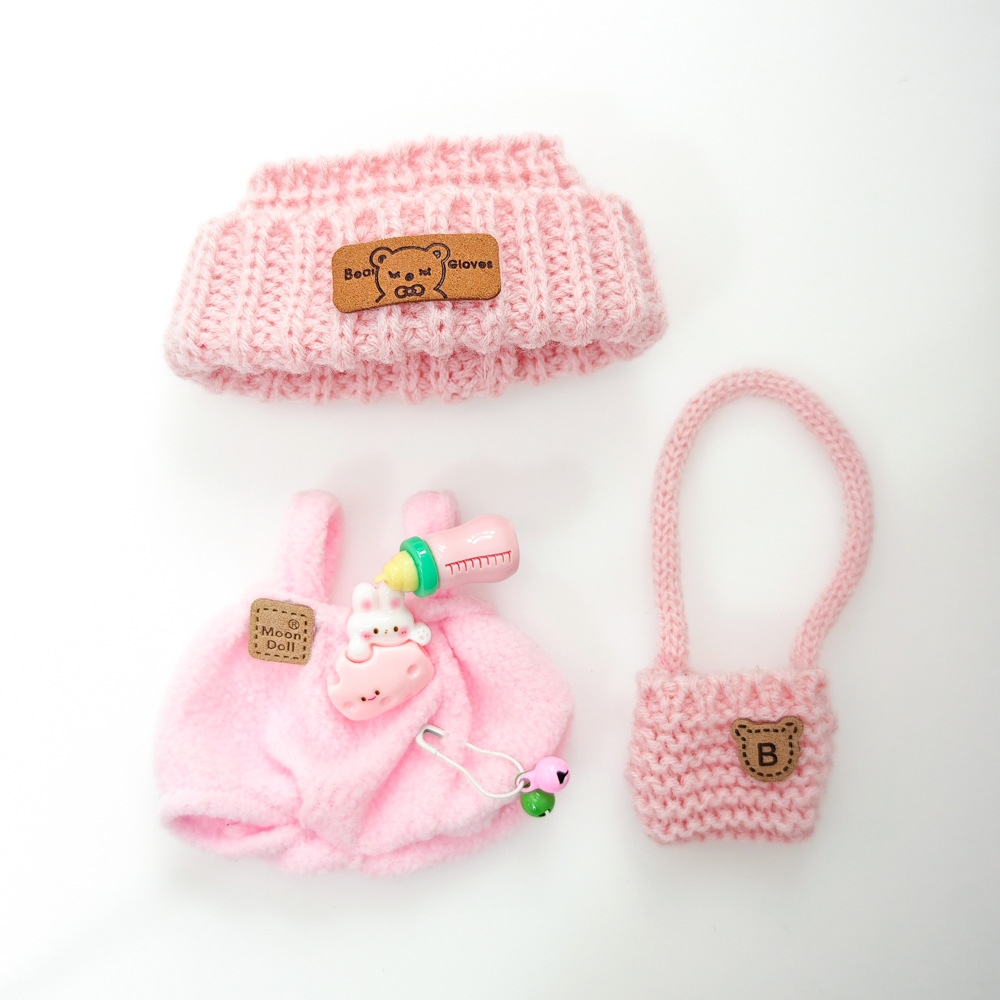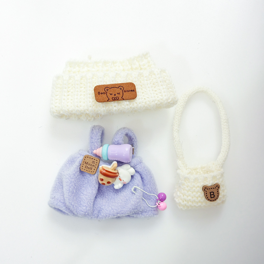 17厘米拉布布钥匙扣挂件娃衣服可爱labubu奶瓶背带裤毛线跨包套装
