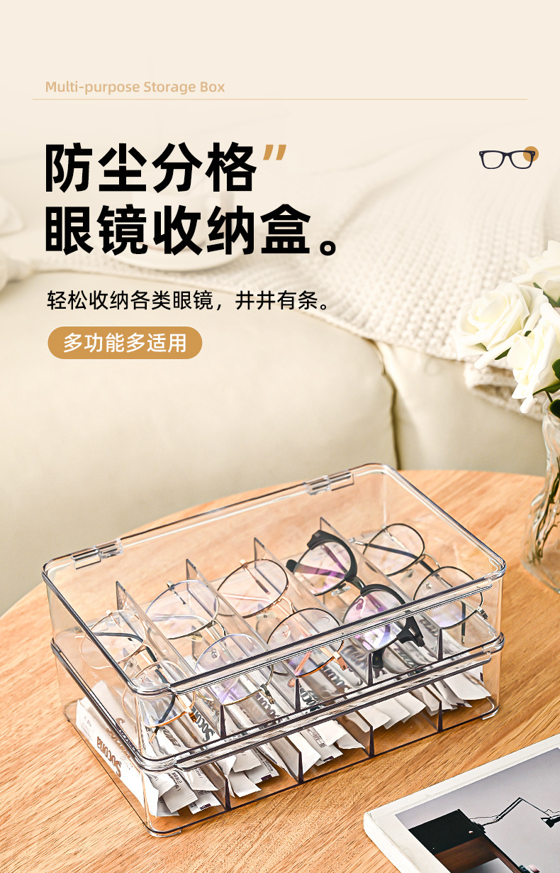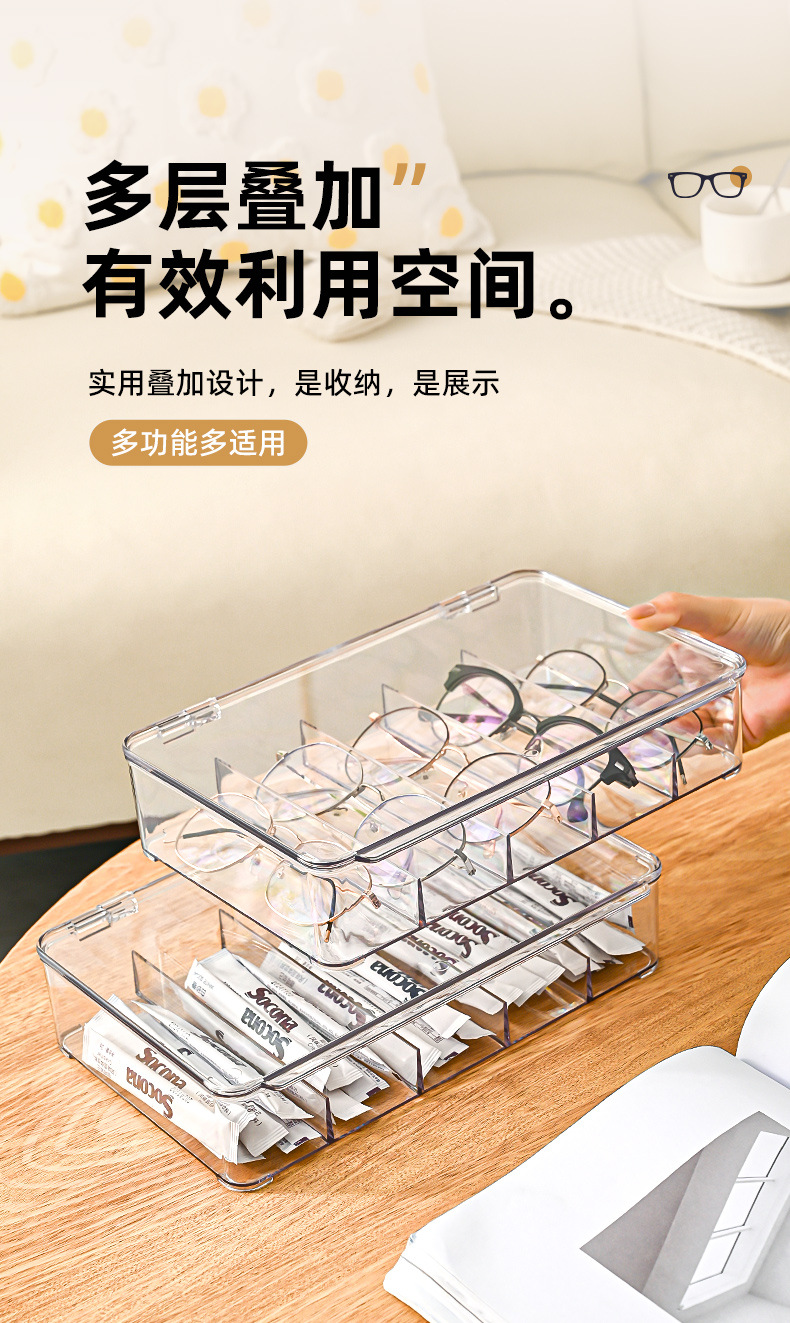 爆款透明桌面带盖杂物防尘眼镜收纳盒家居客厅咖啡茶包定制收纳
