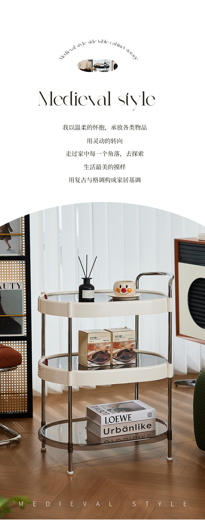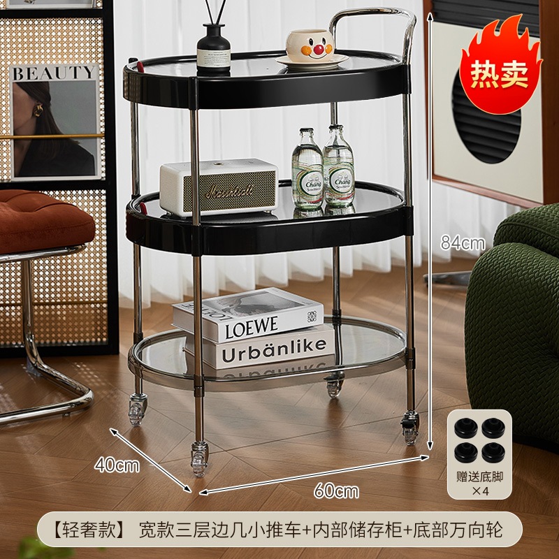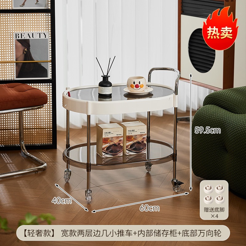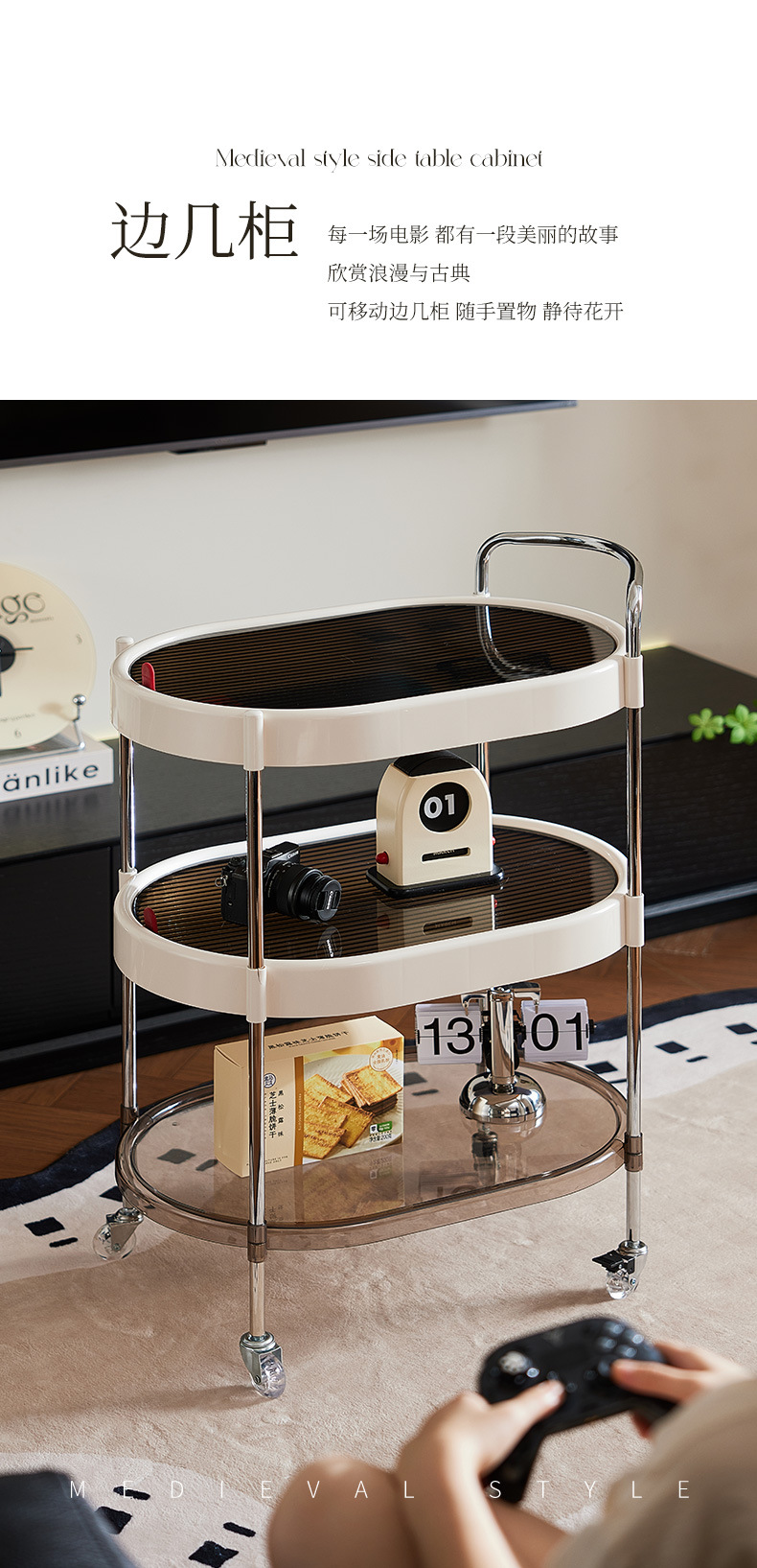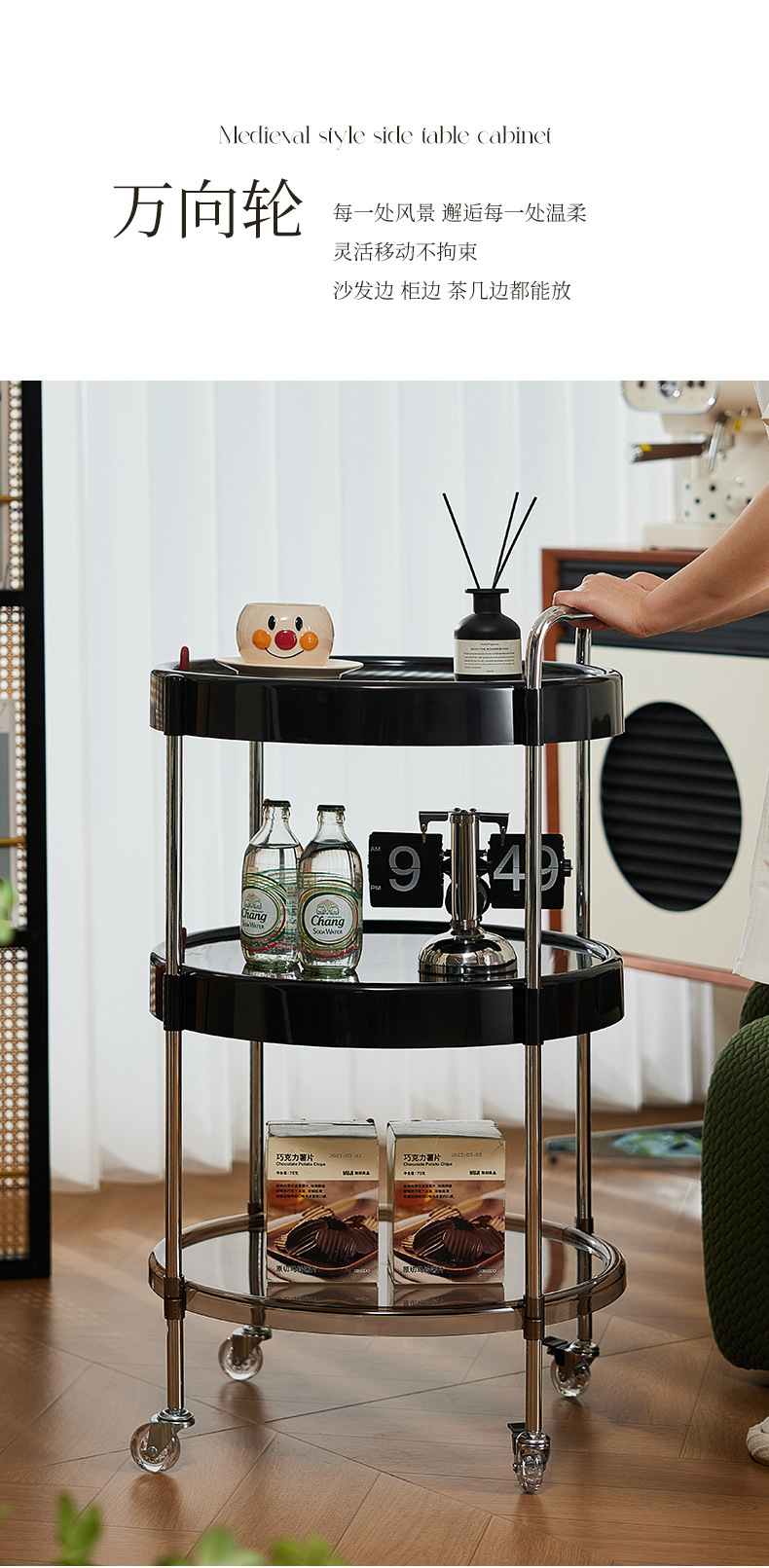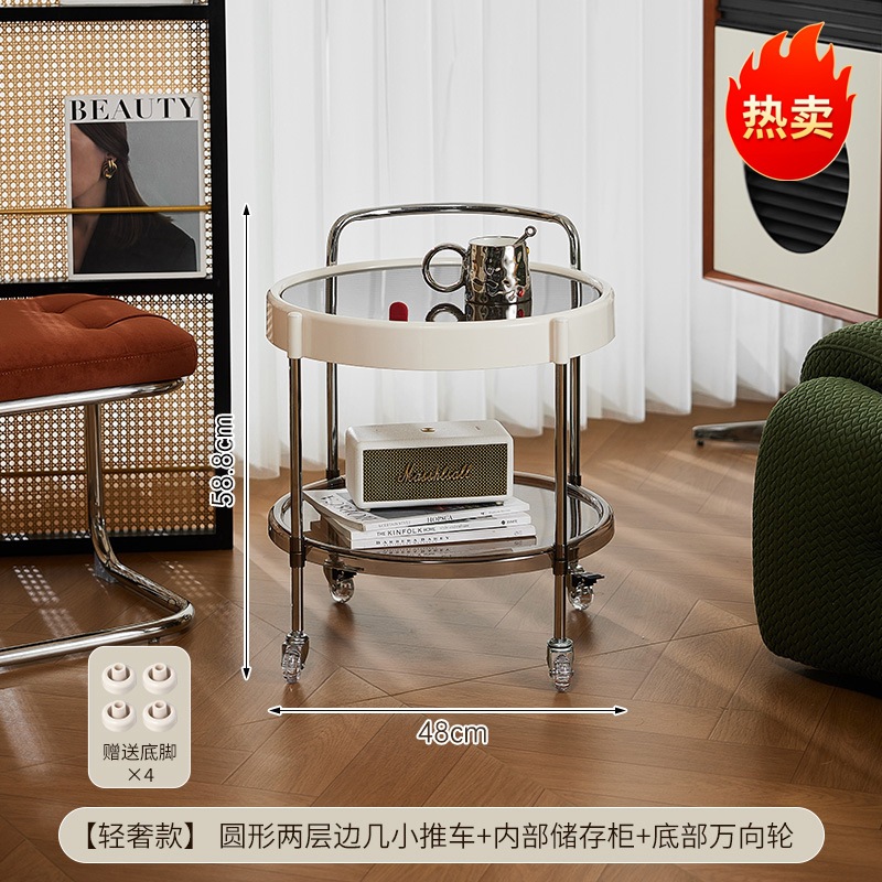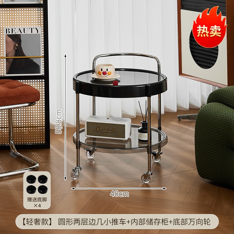 置物架家用轻奢可移动多层多功能客厅圆形茶几床头零食玩具小推车