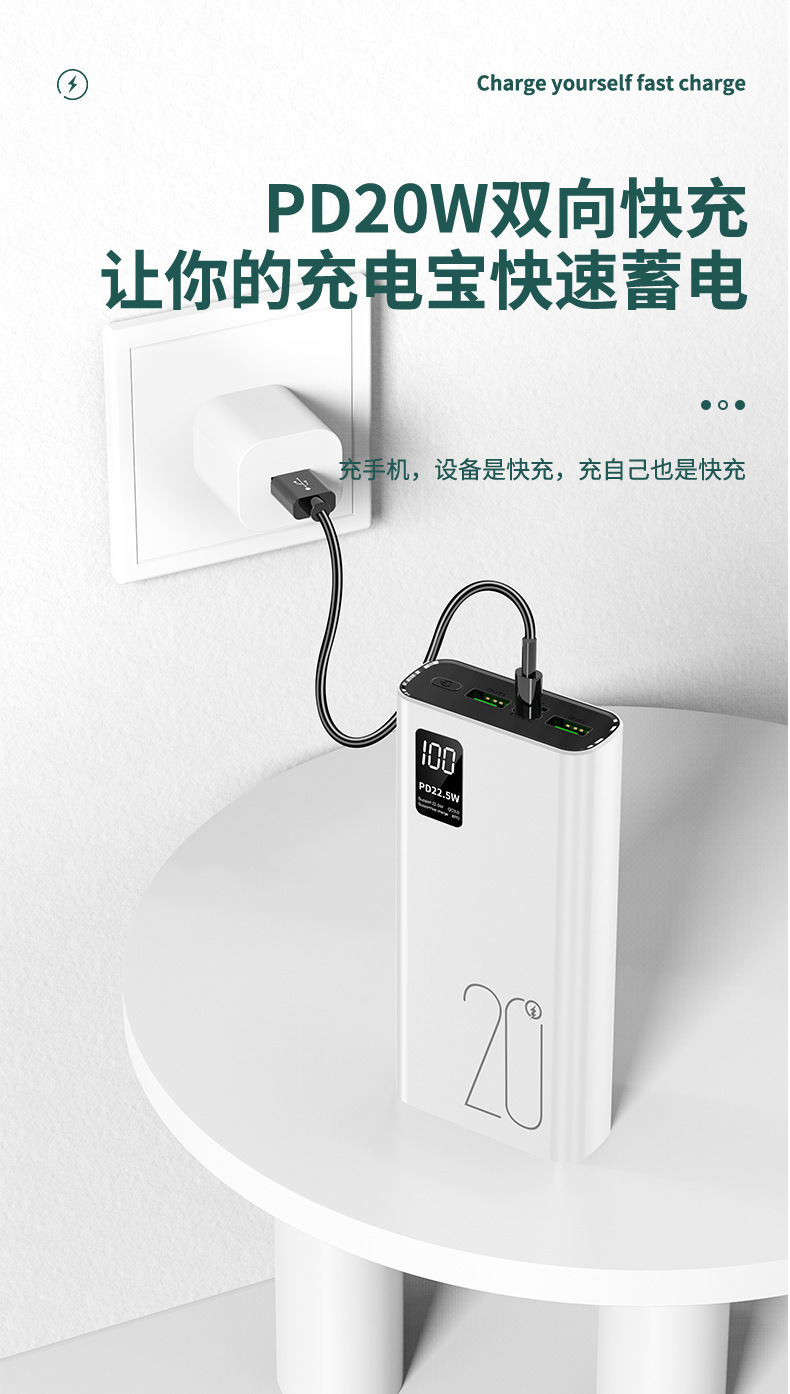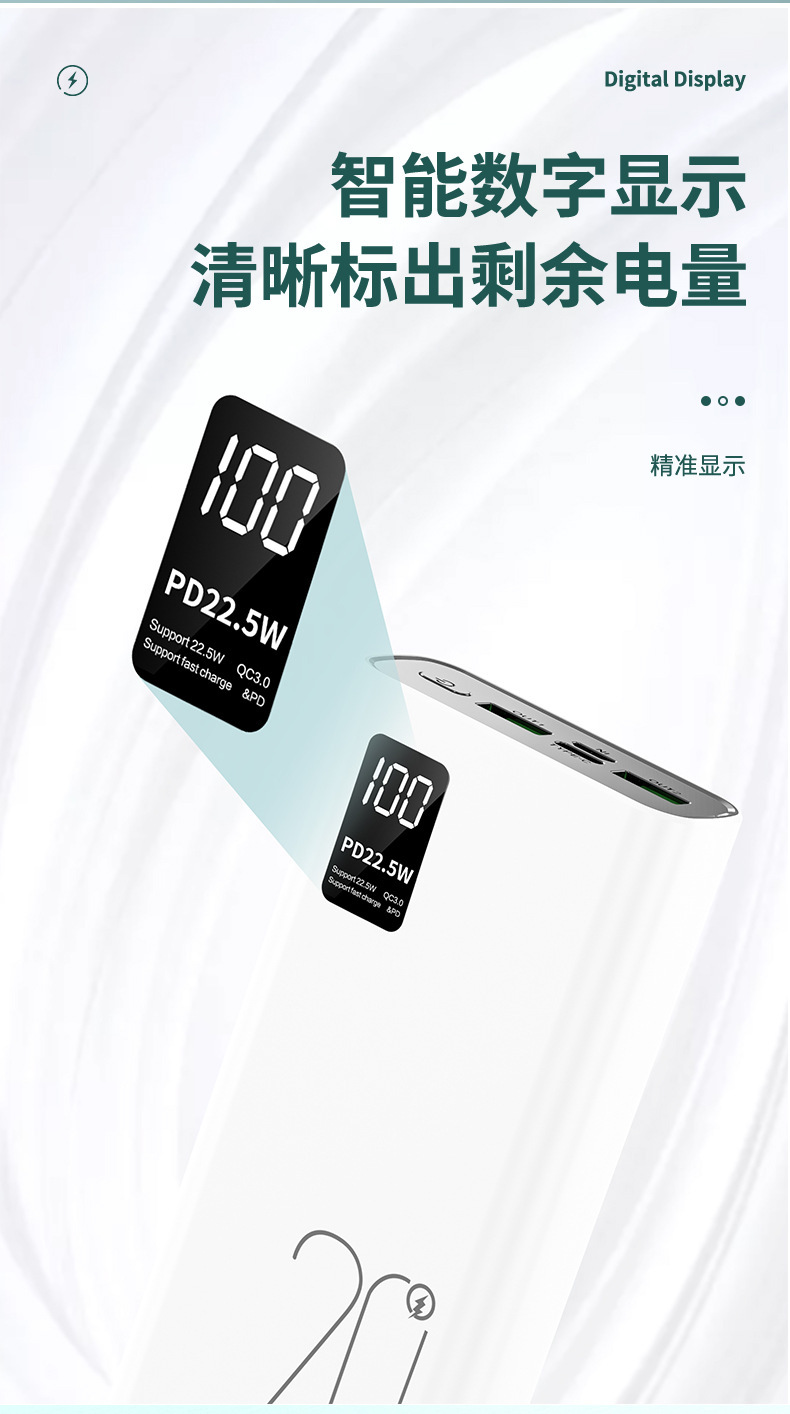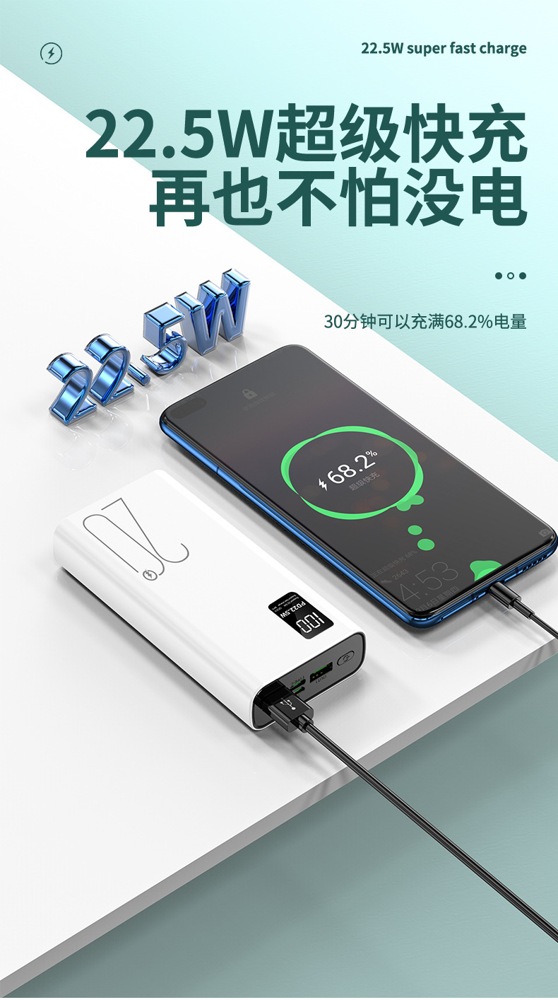 超薄22.5W超级快充充电宝20000毫安超大容量创意礼品印制LOGO图案