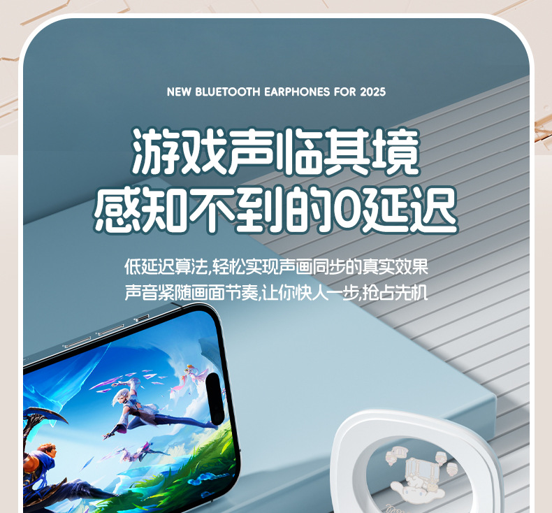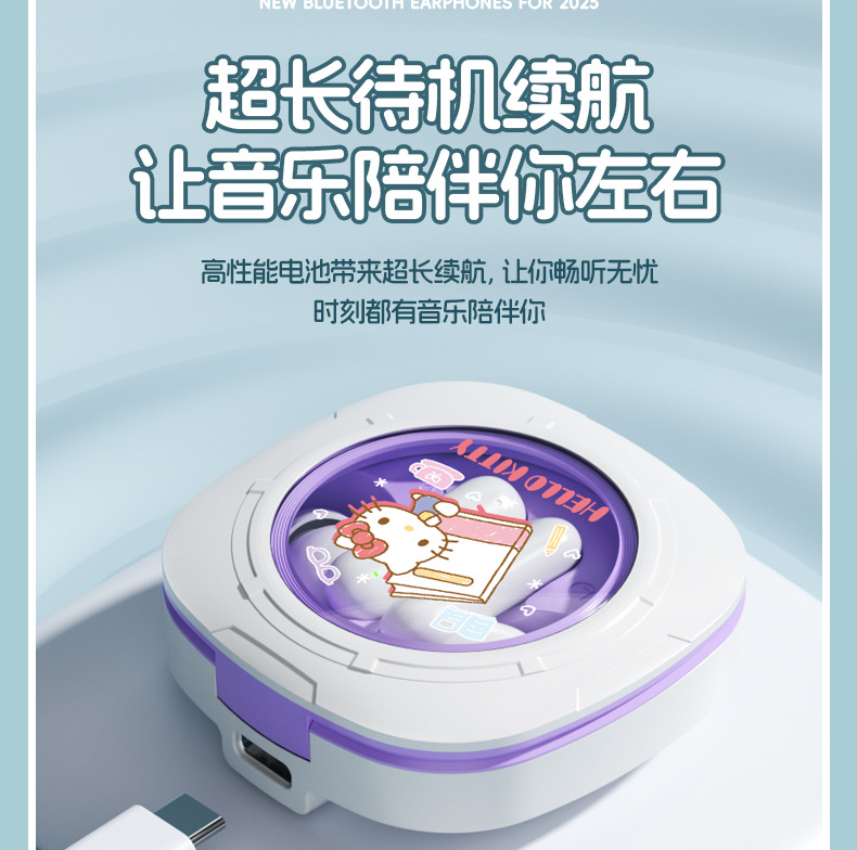 三丽鸥K7蓝牙耳机入耳式降噪通话长续航高音质颜值运动智能耳机