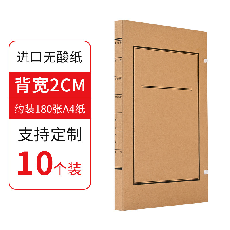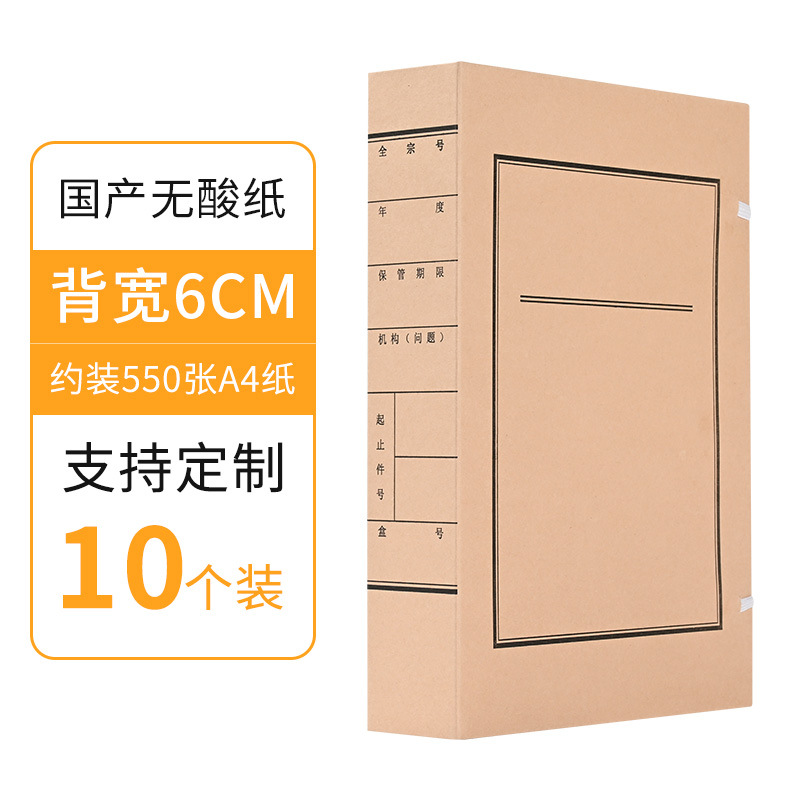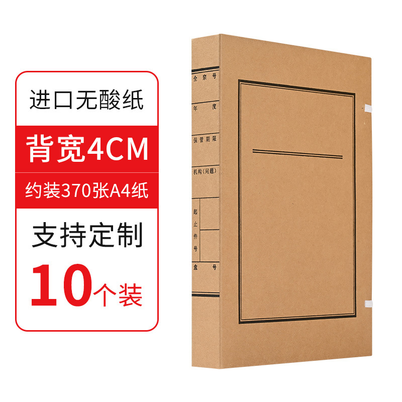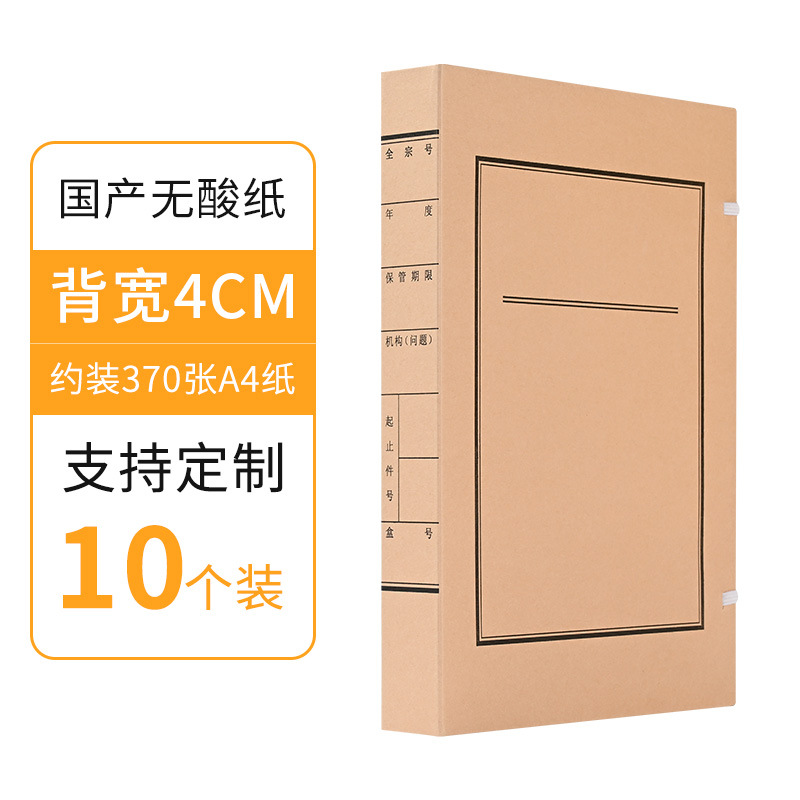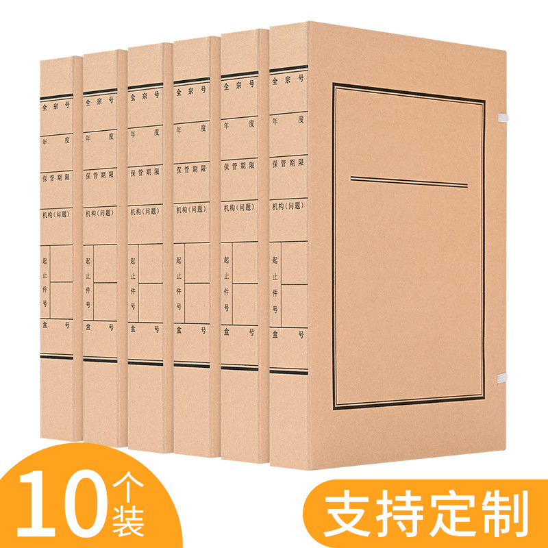 批发10个装牛皮纸档案盒A4资料文件盒无酸纸文书档案盒厂家制作