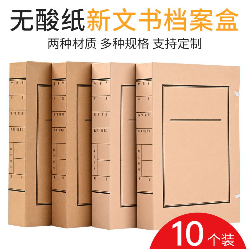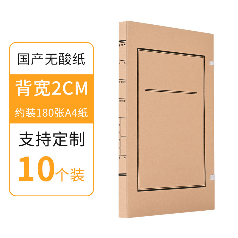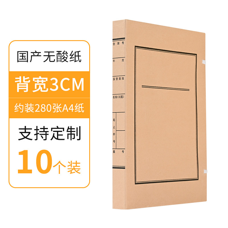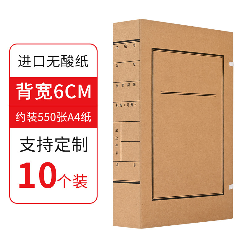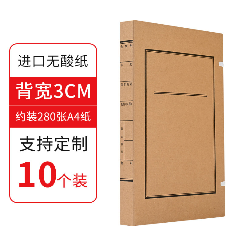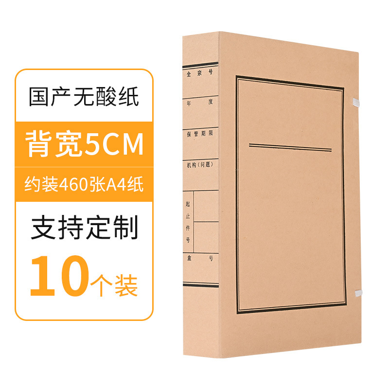 批发10个装牛皮纸档案盒A4资料文件盒无酸纸文书档案盒厂家制作