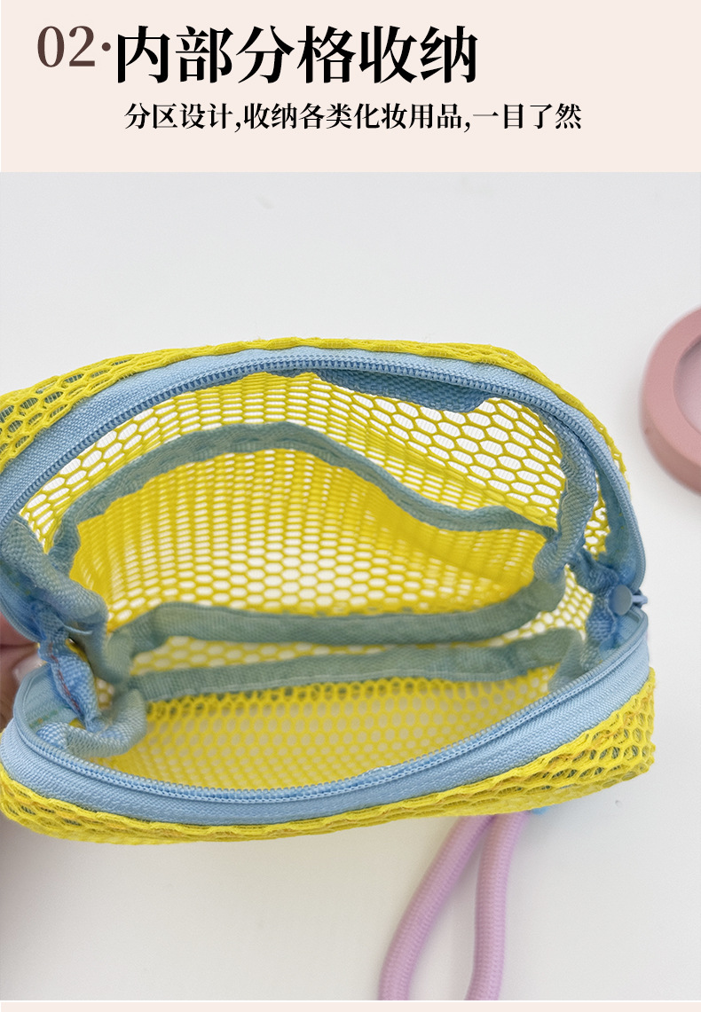 跨境多巴胺网格豆腐包收纳包便携式零钱包网纱小化妆包收纳袋小包
