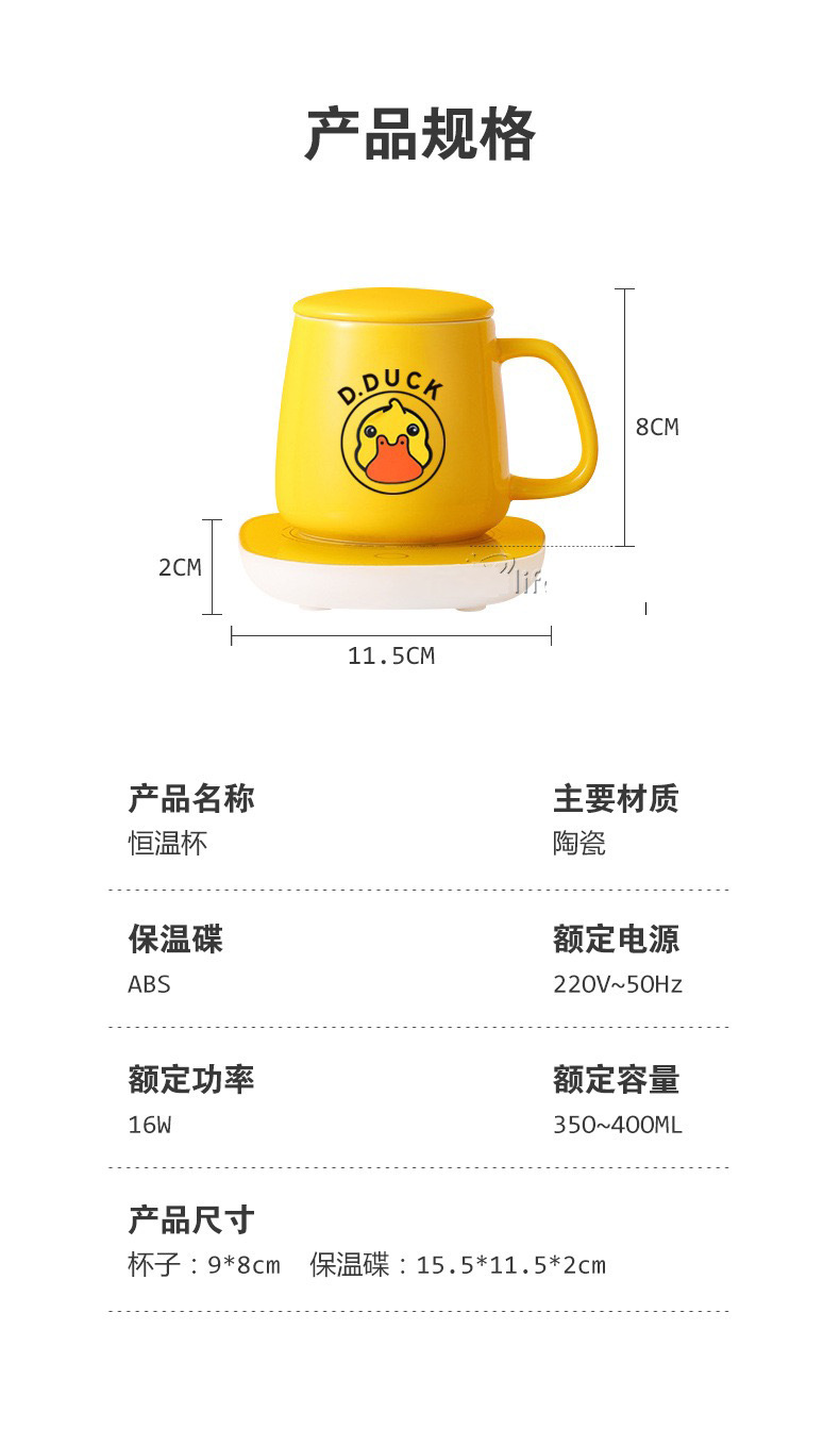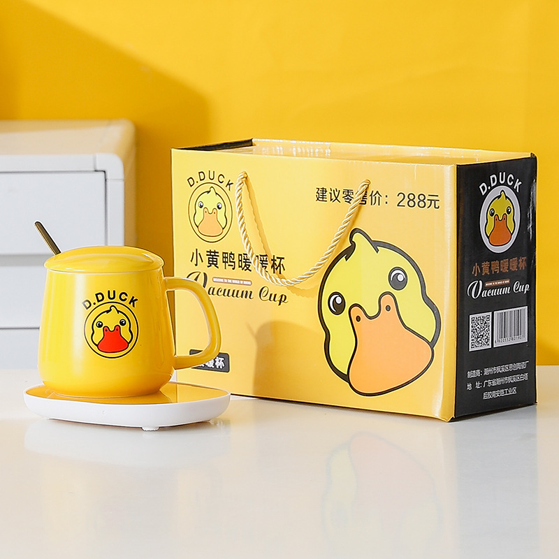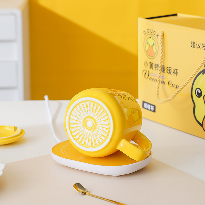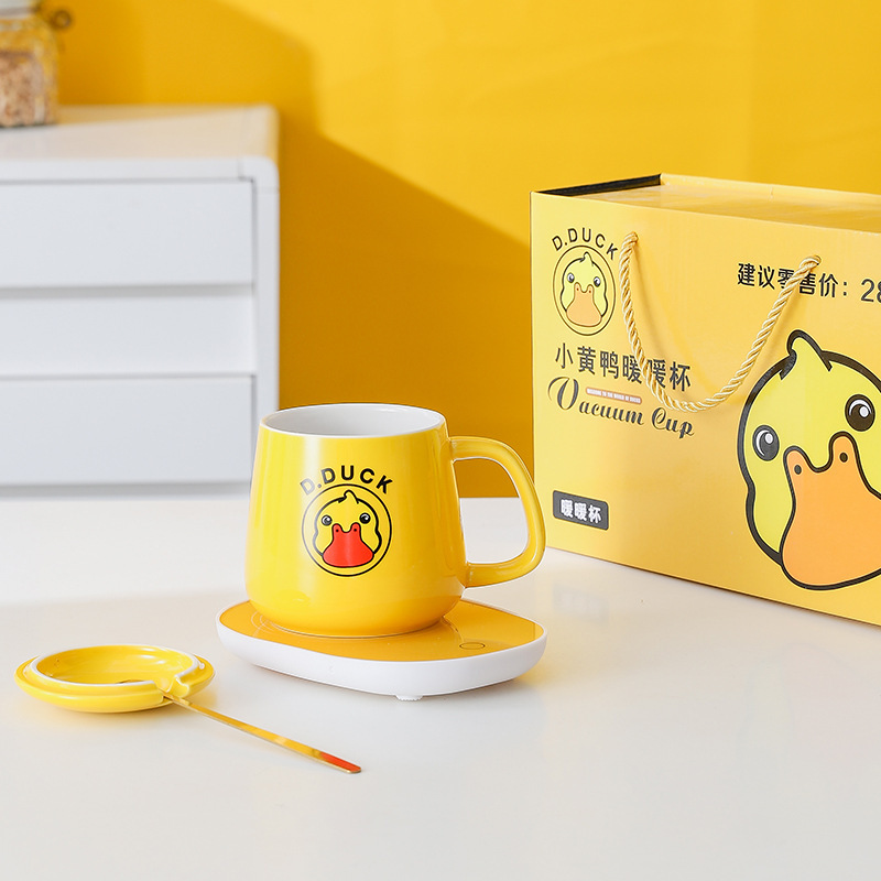 小黄鸭55度暖暖杯礼品套装智能加热伴手礼恒温杯礼盒 陶瓷马克杯